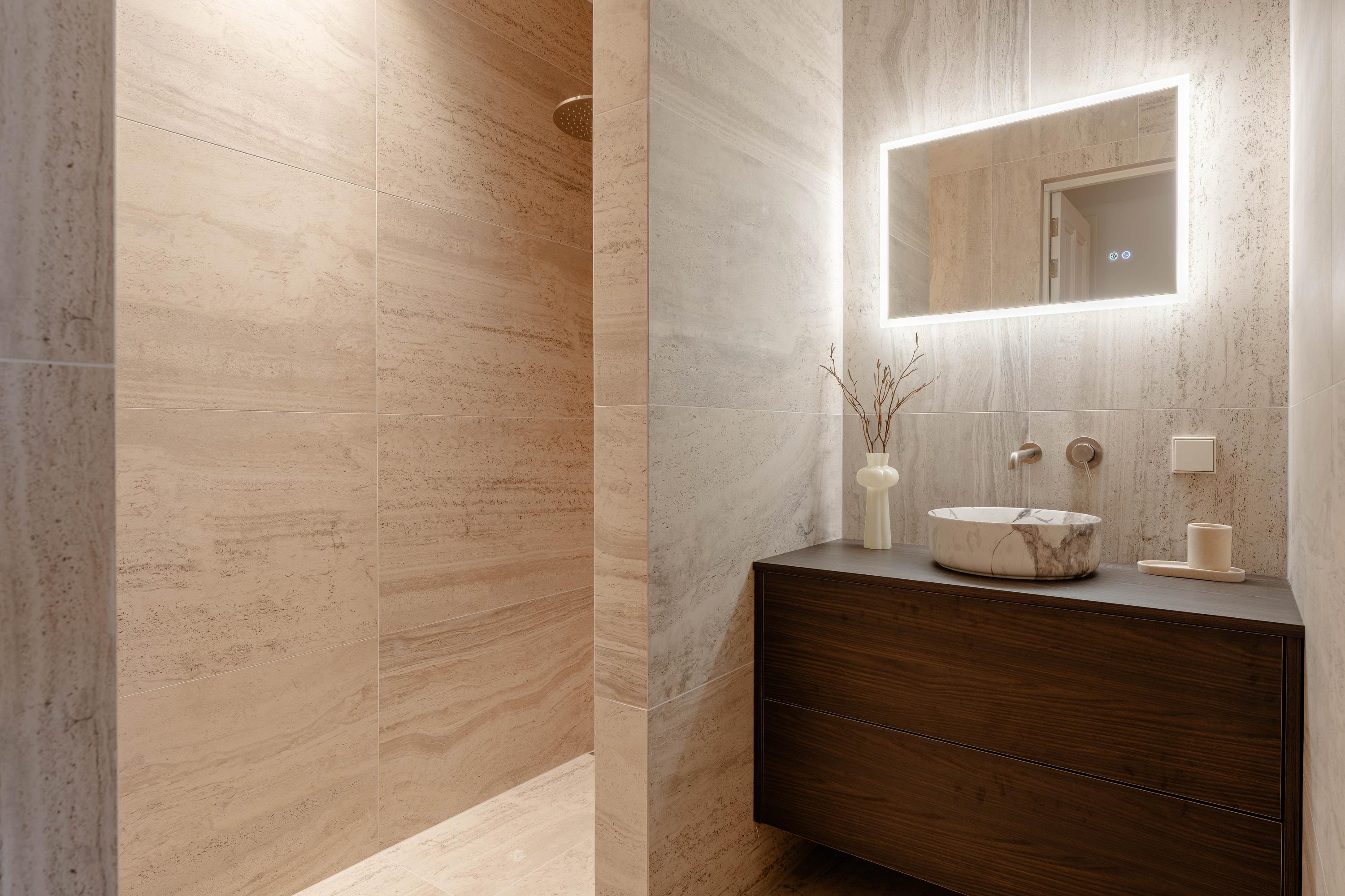 تحتل غرفة الجلوس الفسيحة والمطبخ الجزء الخلفي، لتشكلا مساحة مفتوحة مثالية للترفيه أو لأمسيات هادئة على حد سواء. التشطيبات أنيقة وعصرية وخالدة، مع موقد كهربائي وفرن كومبي وصنبور Quooker وخزانة مناخية ومساحات تخزين وفيرة صممت لتلبية احتياجات الحياة اليومية بكل سهولة. تقدِّم غرفتا نوم بمساحات متوازنة الخصوصية والهدوء، وتضم غرفة النوم الرئيسية حمَّام داخلي، ودشًا مشيًا، وحوضين مزدوجين.
