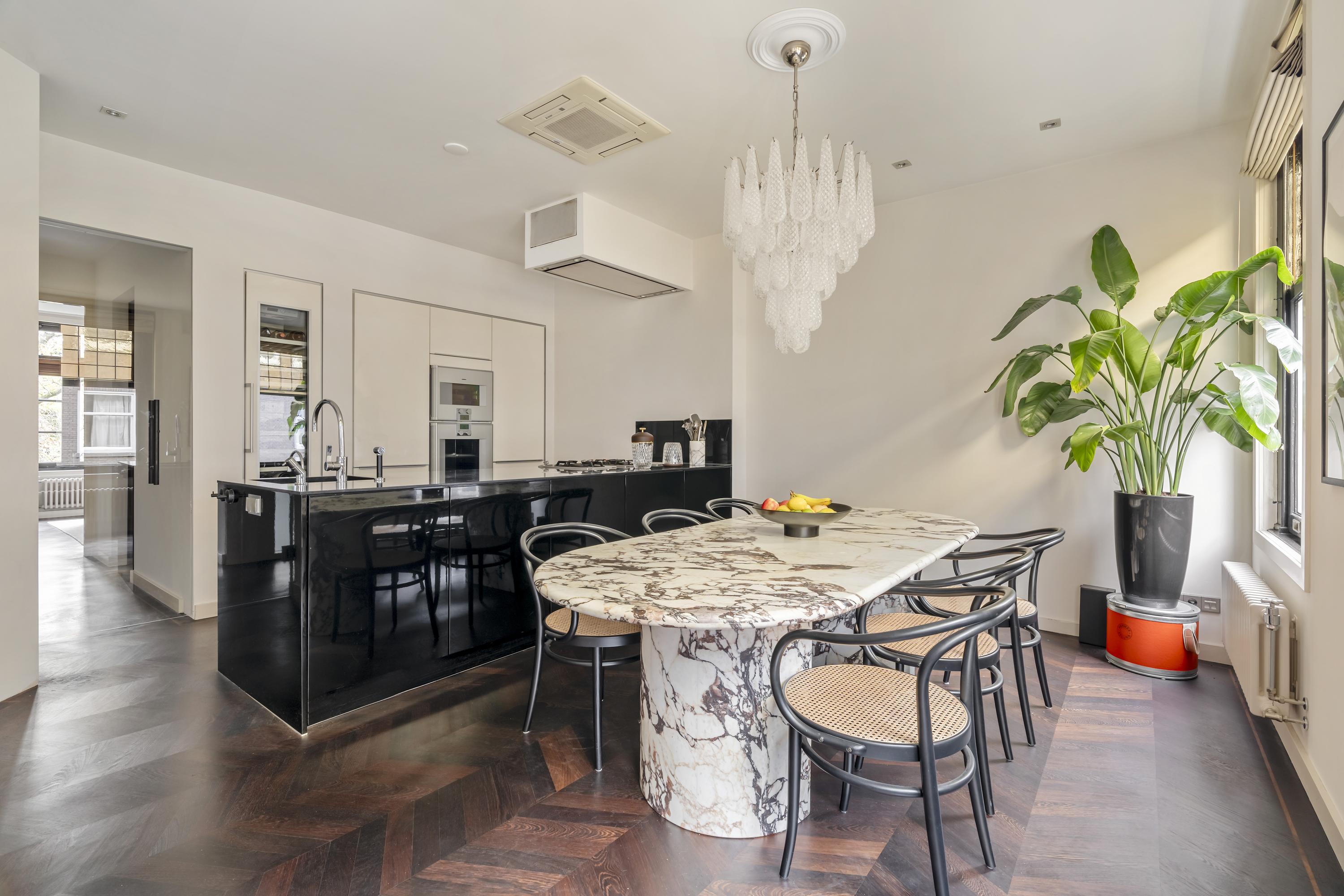 شقة أمستردام شارع تينتوريتو تقدم مزيجًا نادرًا من الأناقة العصرية والسحر الكلاسيكي في واحدة من أرقى أحياء أمستردام السكنية. تمتد هذه الشقة على مساحة 124 م² وتجمع بين التفاصيل المعمارية المدروسة واستخدام المواد الفاخرة. ترحب بك غرفة المعيشة الفسيحة والمشرقة بمدفأة غاز ونوافذ زجاجية ملونة مميزة؛ بينما تفتح الأبواب المنزلقة والفرنسية بسهولة إلى مطبخ بوغنبهول. المطبخ مجهز بأجهزة Gaggenau، وصفيحة Teppanyaki، وخزانة نبيذ، وثلاجتين، وإضاءة مصممة، ليشكل المركز الاجتماعي والعملي للمنزل، ويبرز بمدفأة غاز إضافية.