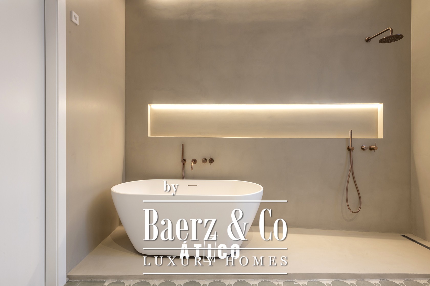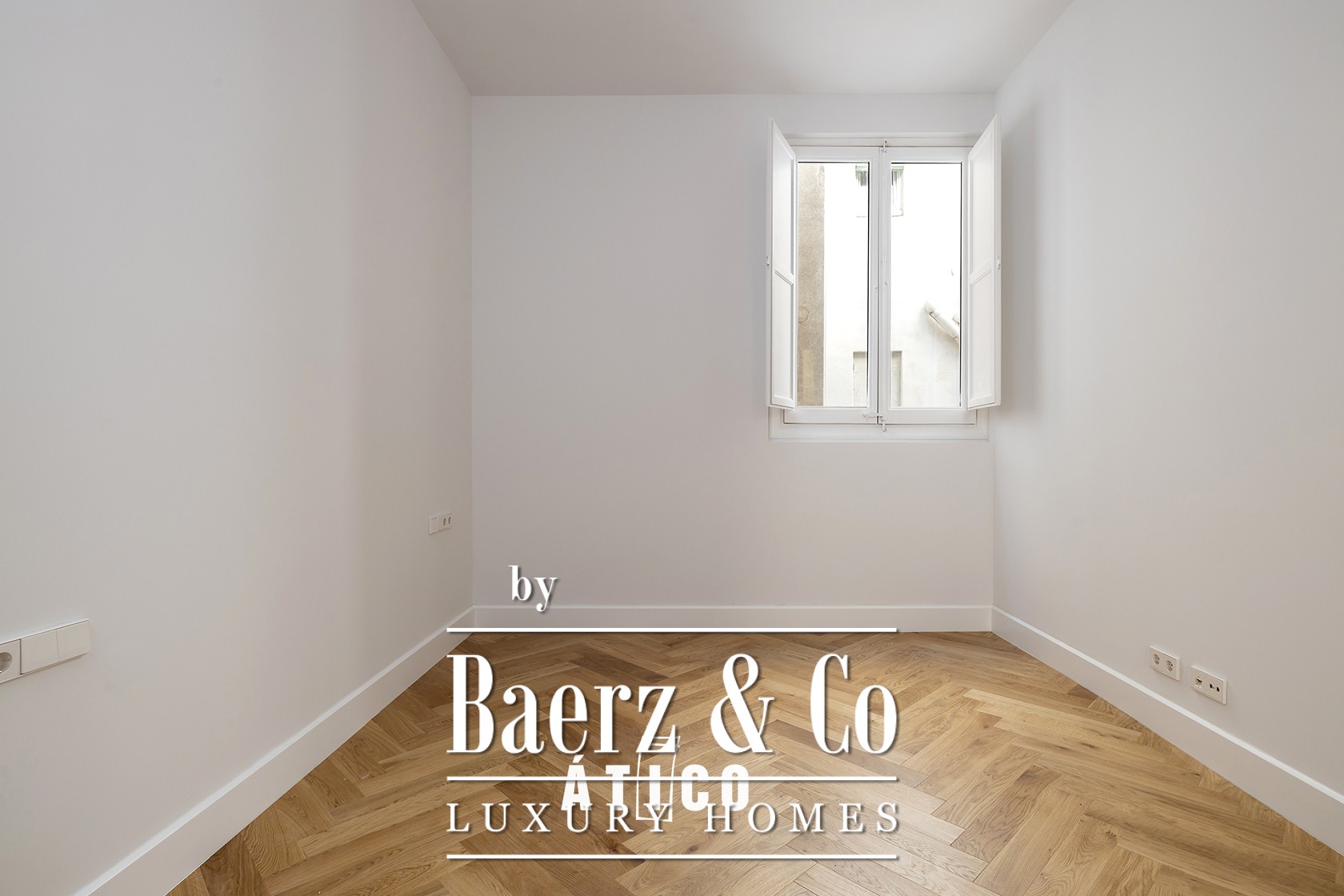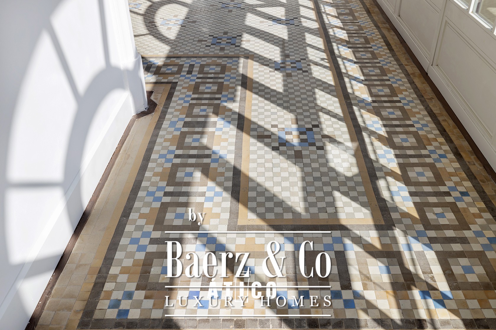 يُكرِّم التجديد الشامل التاريخ المعماري للعقار من خلال الحفاظ على الأرضيات الهيدروليكية الأصلية والأسقف المزينة بارتفاع 3,5 متر، مما يمنح شعورًا بالفخامة والرقي. تظهر أرضيات نُويا في بعض المناطق المختارة، بينما تجلب الشرفة والنوافذ المُرممة ضوء النهار الوفير لخلق مساحات معيشة هادئة ومشرقة. وتضمن دراسة احترافية للإضاءة وتوزيع المصابيح الاصطناعية أجواءً متوازنة في جميع الأنحاء.