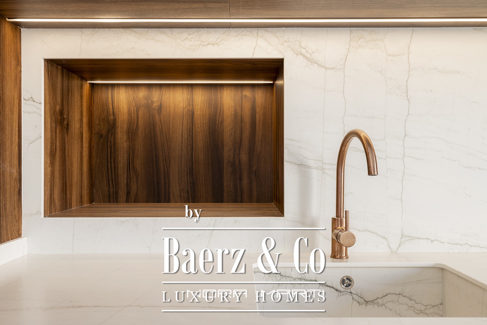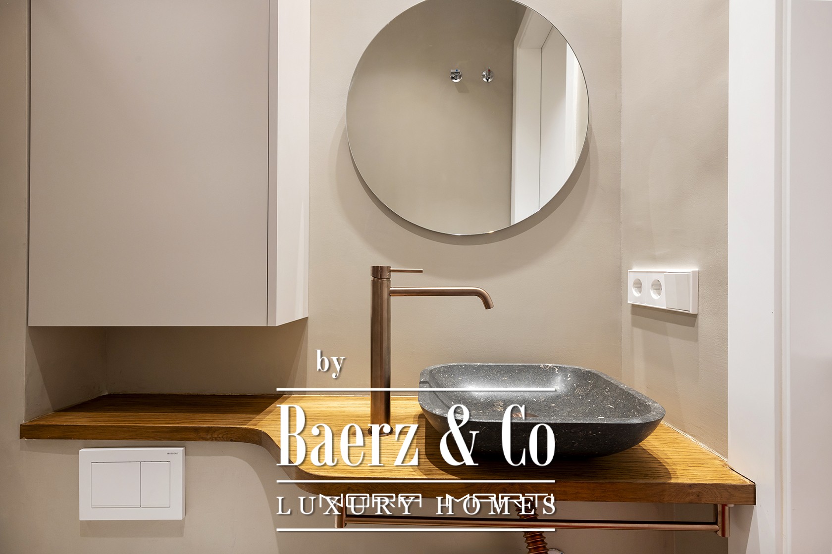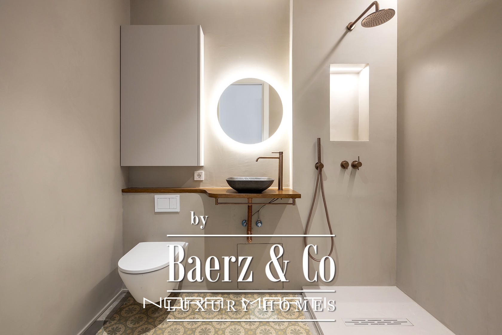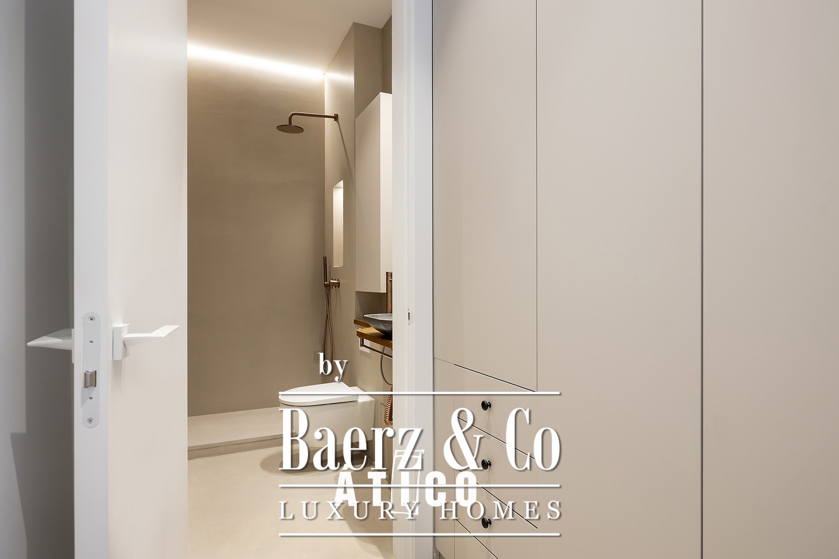 تضم الشقة غرفتي نوم متناسقتين وحمامين، مع تخطيط داخلي يمنح إحساساً بالانفتاح والوضوح. تضفي المعارض والنوافذ المستعادة تجربة معيشة متجددة، إذ تدعو الضوء الطبيعي ليضيء المساحات ويمنحها دفئاً وإيقاعاً طوال اليوم. تم اختيار كل عنصر إضاءة بعد دراسة إضاءة معمارية، مما يخلق أجواء رفيعة الذوق وهادئة من الصباح حتى المساء.