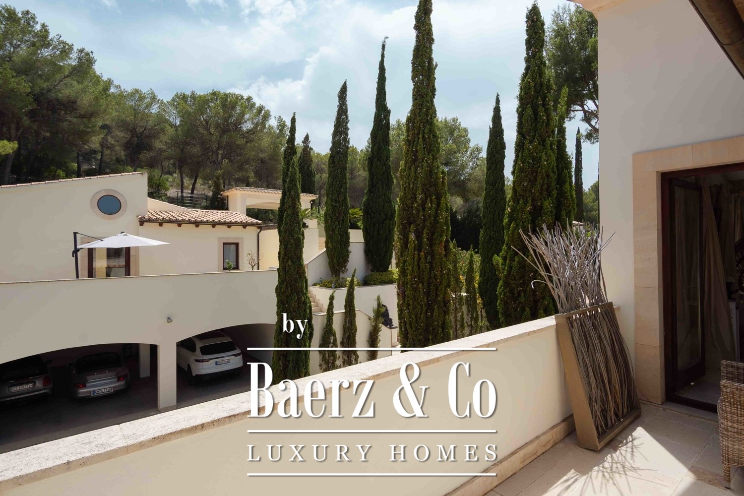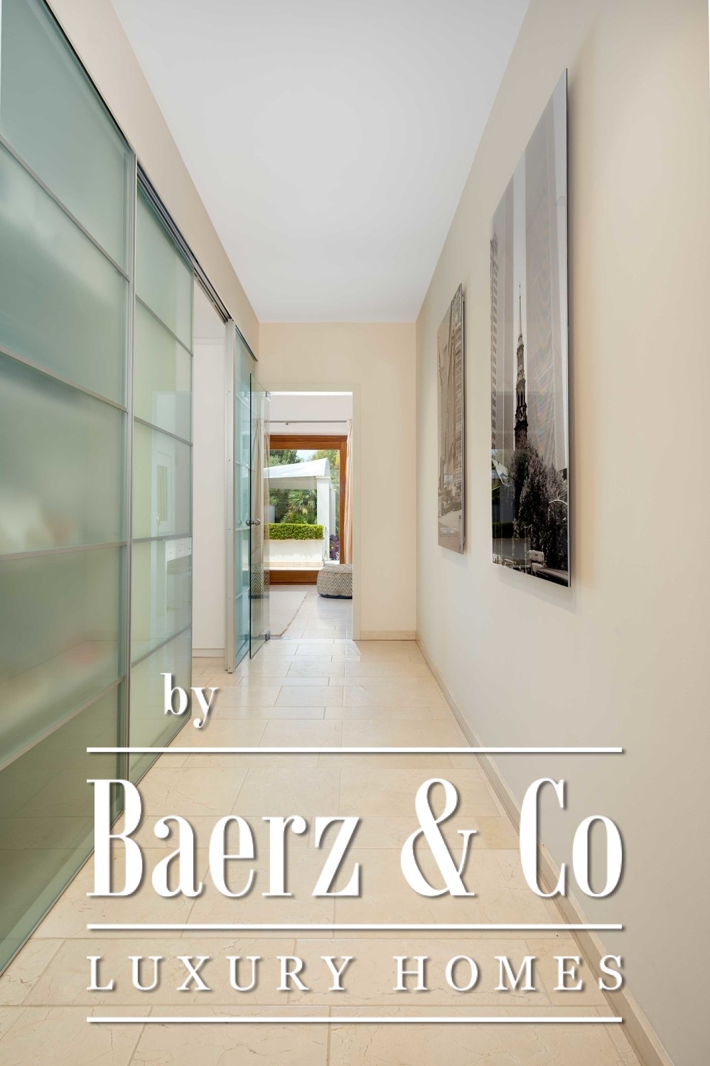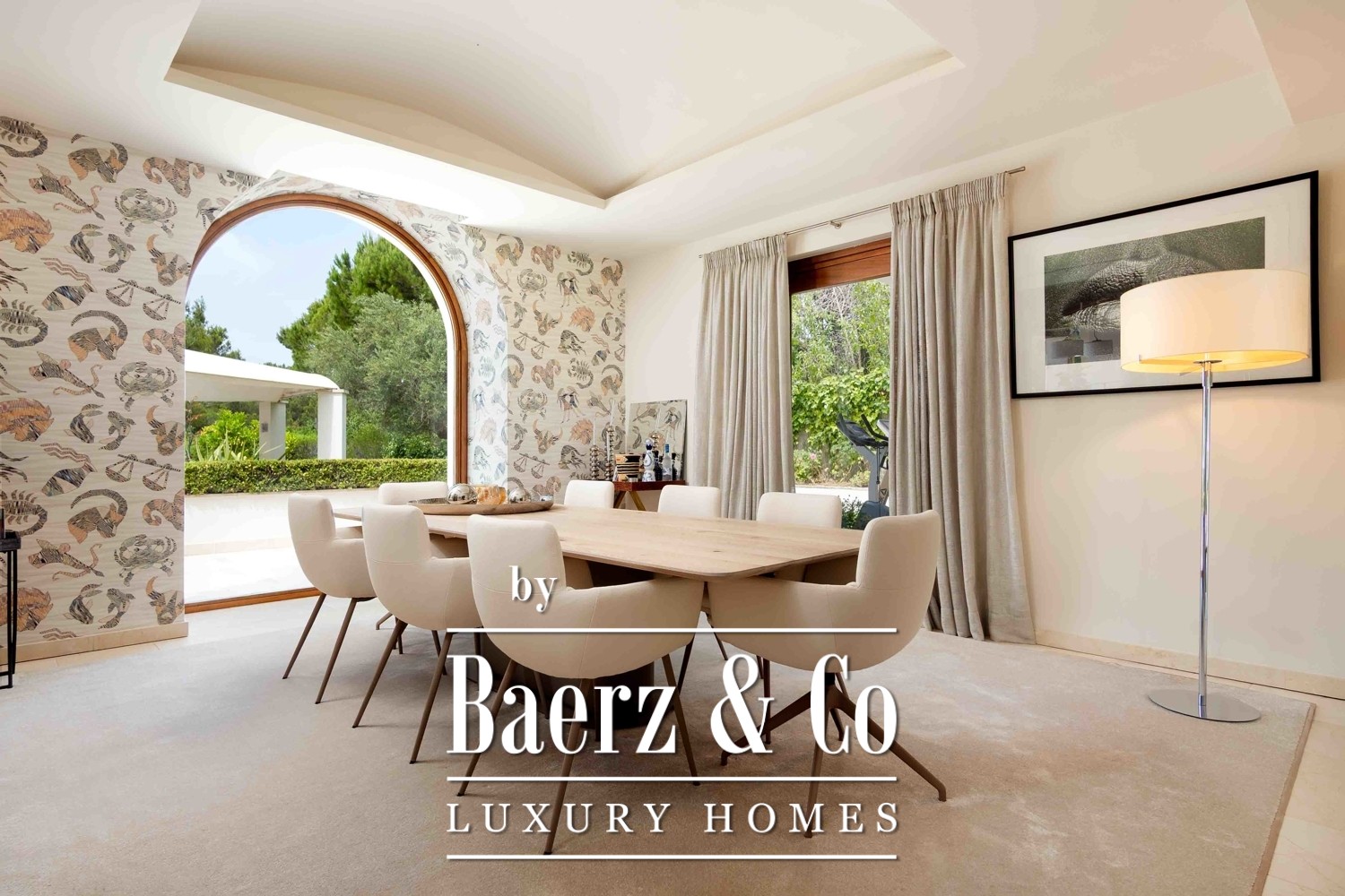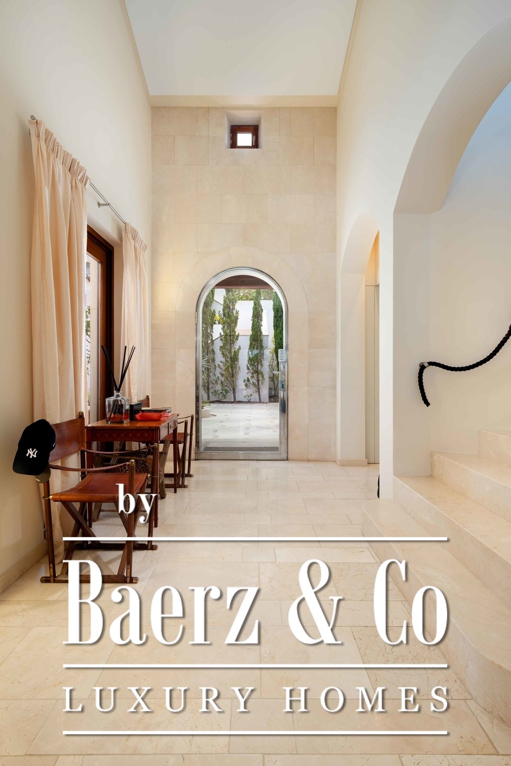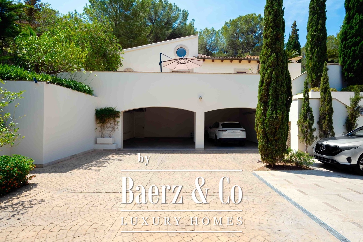 تعكس هذه الفيلا الفاخرة في سانتا بونسا أسلوب حياة مميزًا داخل مجتمع مسوّر حصري في مايوركا. عند الوصول، تمتد طريق خاصة وسط حدائق متوسطية غنّاء، تتسع لسبع سيارات مع محطة شحن كهربائية مدمجة. المدخل ينضح بالهدوء والفخامة الراقية، ويرحب بك للدخول إلى مساحات داخلية بمساحة ٨٥١ مترًا مربعًا، أُبدعت بعناية لتعزيز الضوء والرحابة في أجواء التجربة.