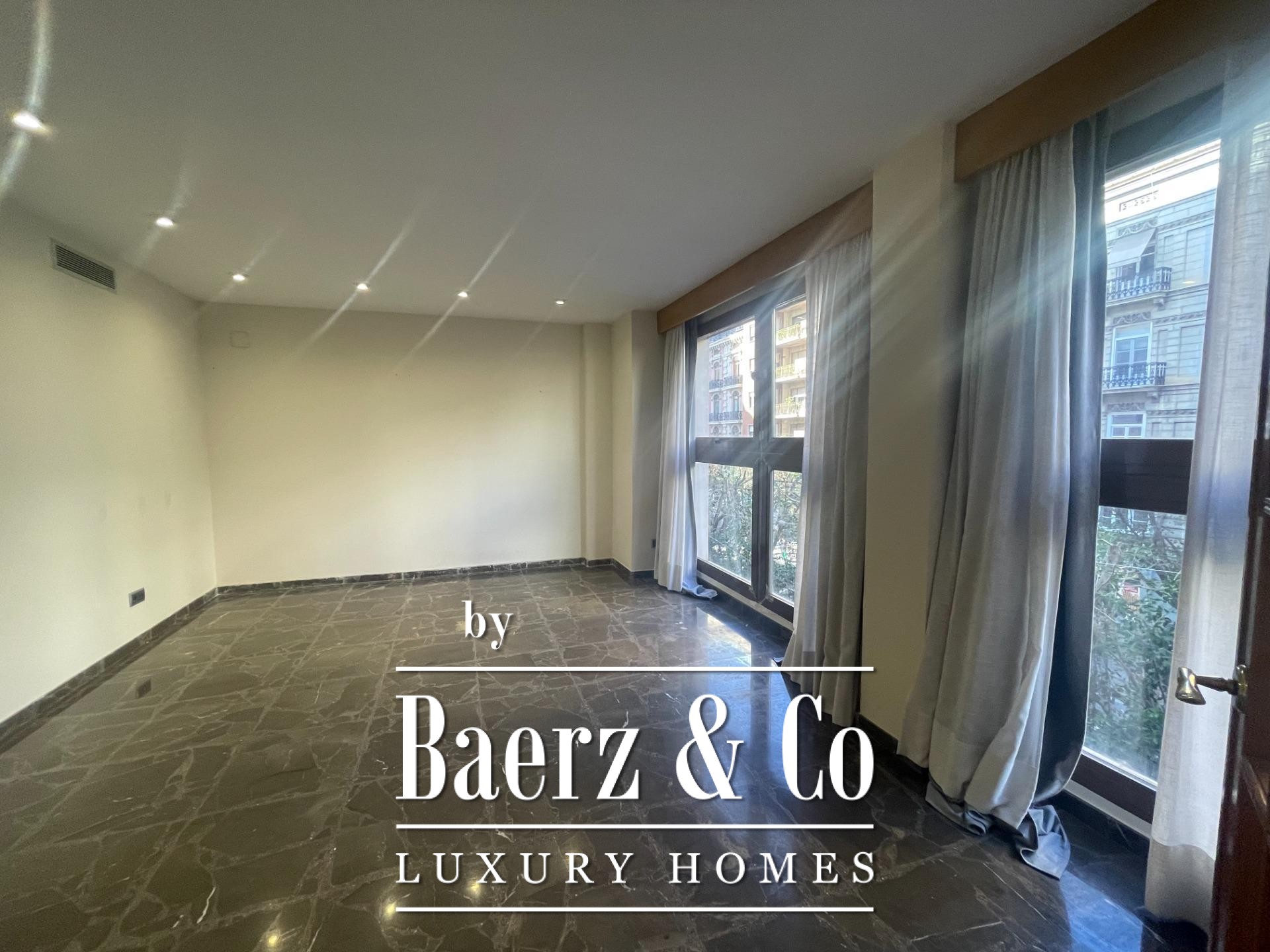 SPACIOUS APARTMENT ON COLON STREET~~Baerz & Co SELLS APARTMENT ON COLON STREET~~Superb apartment in a modern building on Colón Street, built in 1990. It has a constructed area of 269 m2. The layout includes a spacious entrance hall, a large living-dining room with expansive windows, 5 double bedrooms with built-in wardrobes (the master suite includes a dressing room), 3 full bathrooms (one en suite), and a guest toilet. There is also a large eat-in kitchen with access to an interior terrace. A parking space in the same building is included. The apartment features marble floors and wooden floors in the living room and bedrooms. It also has ducted hot and cold air conditioning and oak interior woodwork.~~Pla del Remei~Developed after the demolition of Valencia's city walls in 1868, Pla del Remei is home to numerous stately and modernist buildings alongside a wide range of shops, including some of the city's best and most prestigious stores. In this neighborhood stands out one of the greatest examples of Valencian modernism; the Colón Market, renovated in 1993 and considered one of the best options in the city to enjoy after work and its wide range of cafes and restaurants.~Enviar comentarios~Paneles laterales~Historial~Guardado~Pulsa