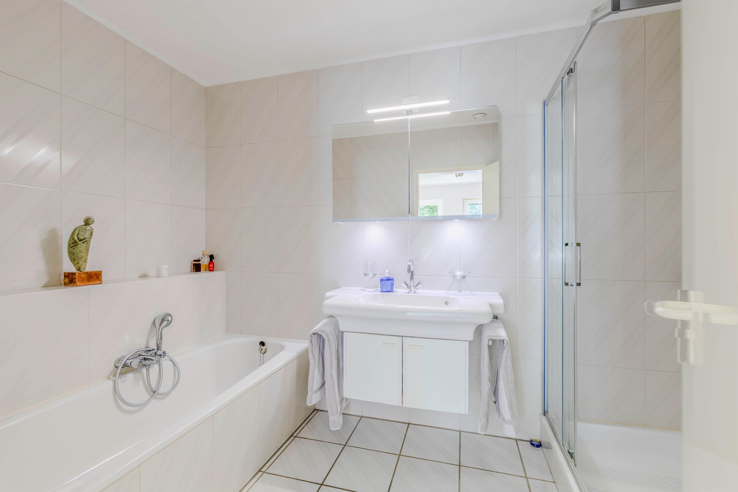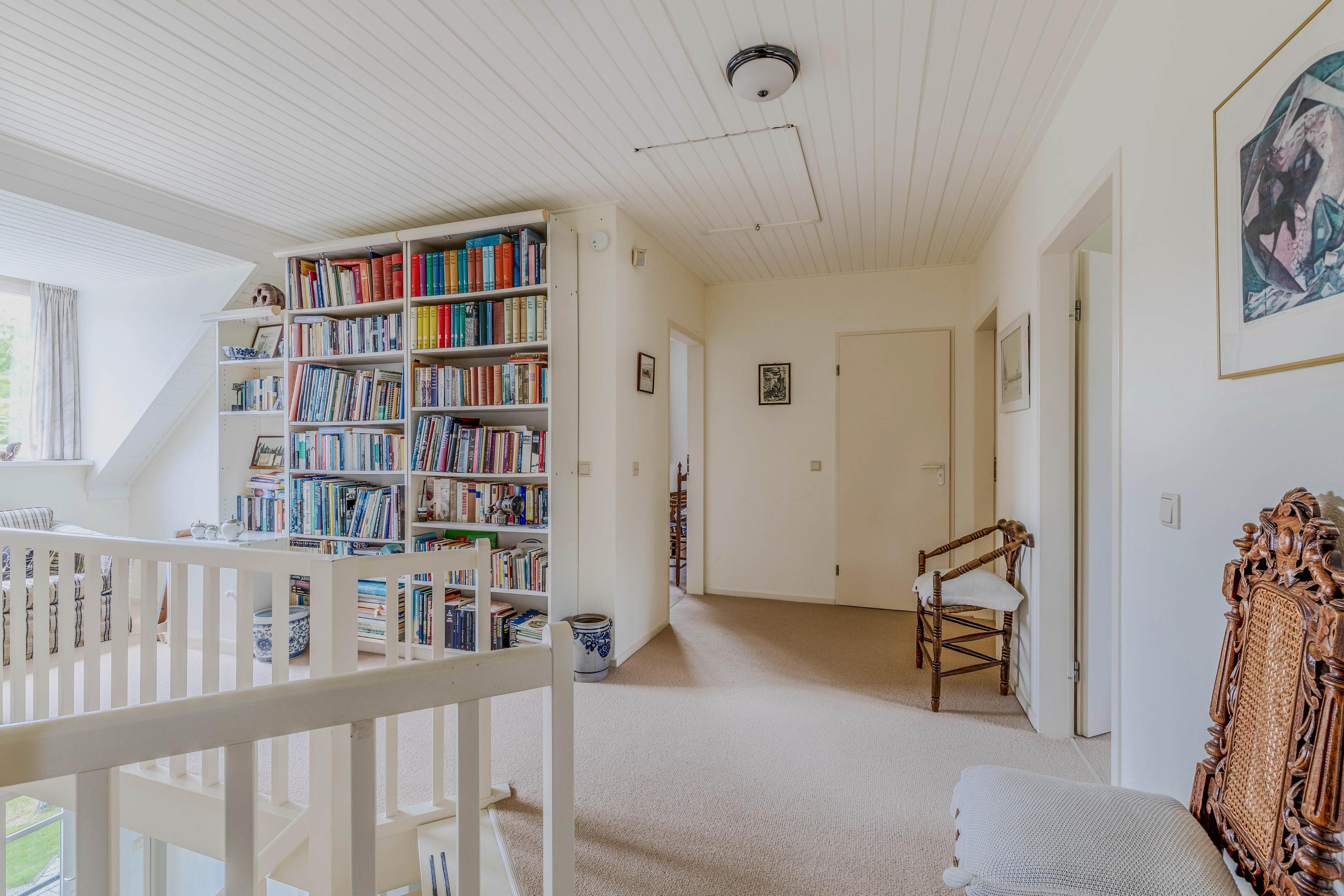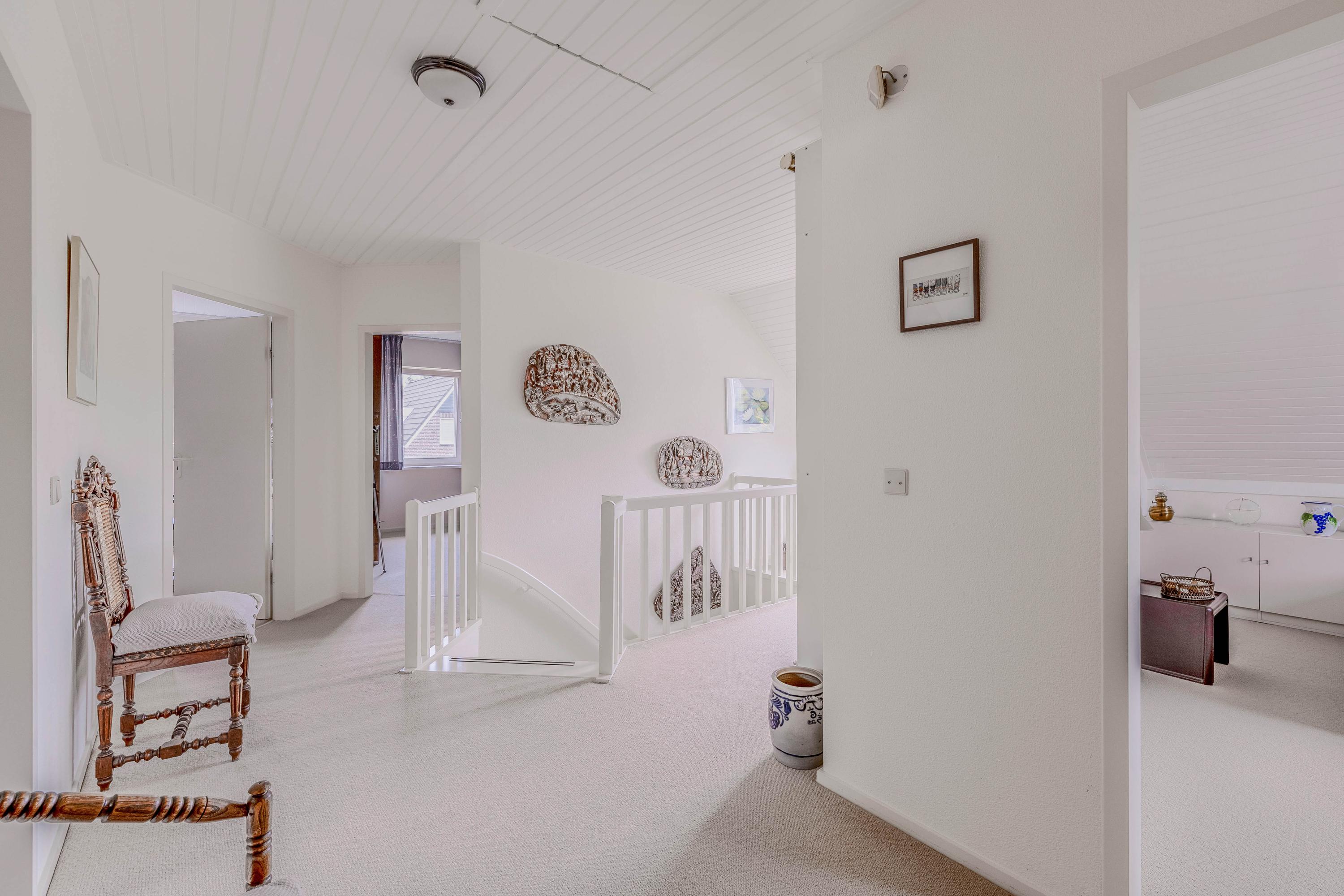 تتوزع خمس غرف نوم إضافية وحمام ثانٍ في الطابق الأول، حيث تتمتع إحدى الغرف بإمكانية الوصول المباشر إلى منطقة رفاهية محتملة، وتفتح أخرى على شرفة. يوفر القبو والعلية وكراج بمساحة 21 م² مزود بالتدفئة وباب قسمي ومدخل إلى الحديقة، أماكن تخزين متعددة الوظائف وقابلة للتكييف. في الخارج، تخلق مناطق الجلوس المتعددة وسط الأشجار الناضجة وحدود النباتات واحة خضراء هادئة، مثالية لحياة أسرية هادئة أو اللقاءات الخارجية.