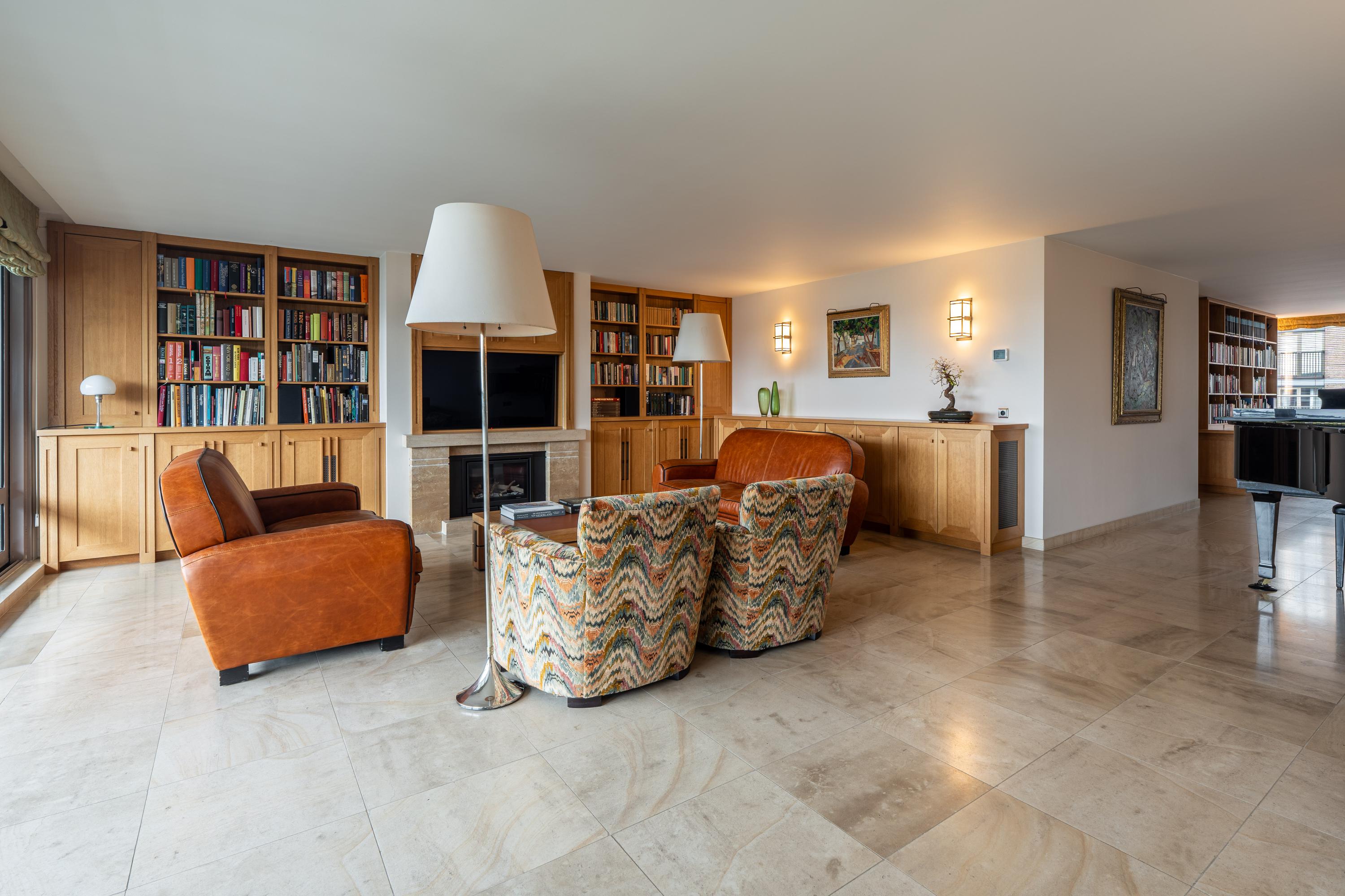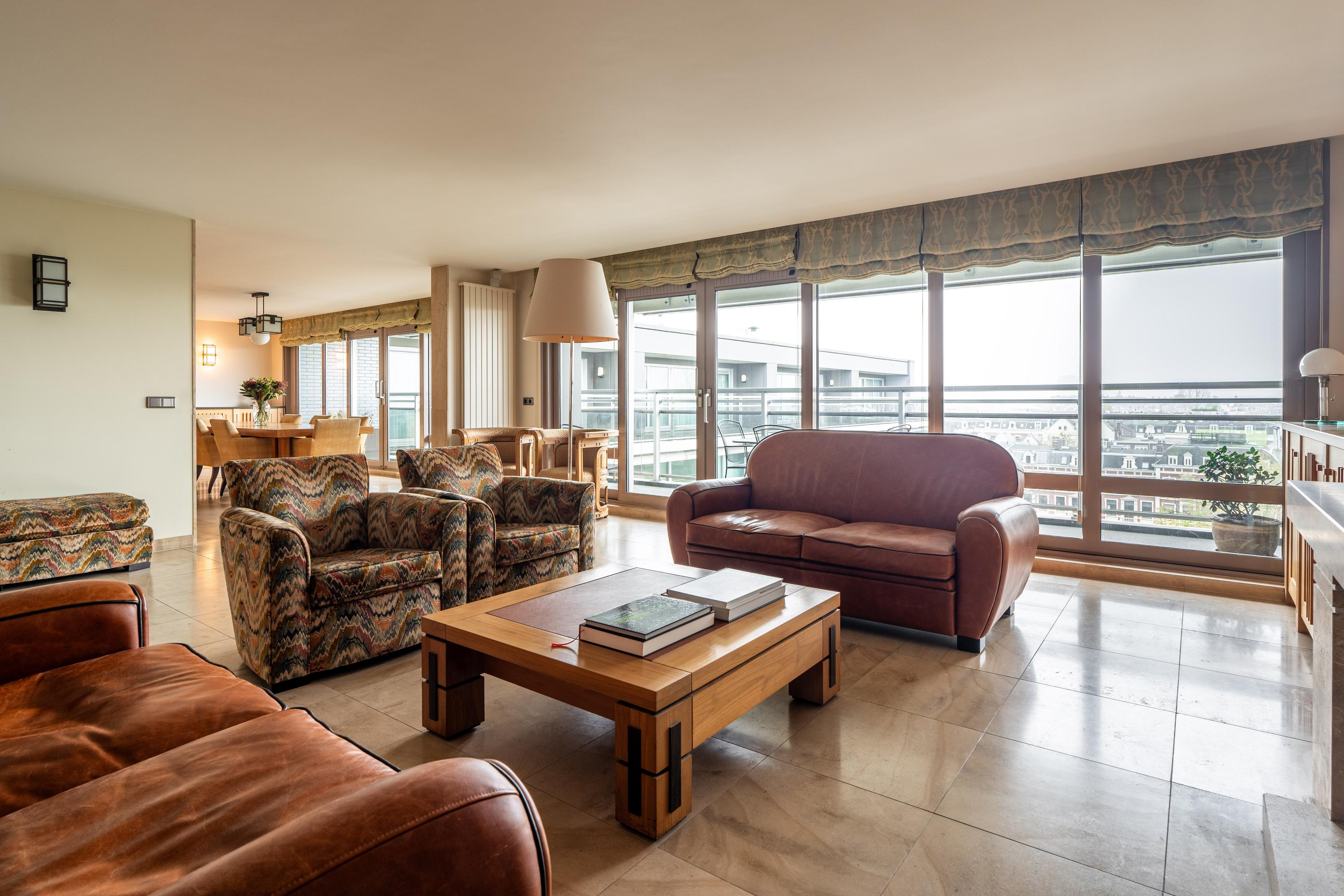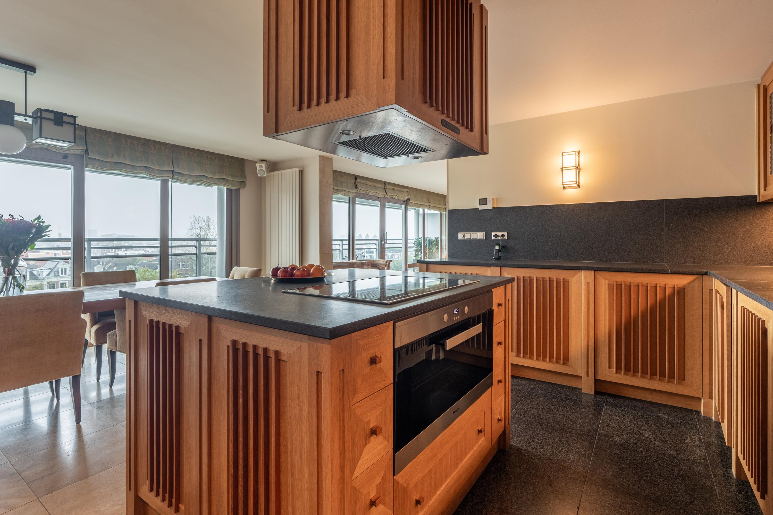 Durch die breite Eingangshalle gelangen Sie in den großzügigen, offenen Wohnbereich, der durch raumhohe Glastüren strukturiert wird und sich nahtlos zu einem 25 m² großen Balkon über die gesamte Breite der Residenz öffnet. Der Vondelpark breitet sich darunter aus und ist sowohl vom Wohnbereich als auch von der Küche aus zu sehen, wodurch eine angenehme Ruhe inmitten der Stadt entsteht. Die Küche ist vollständig ausgestattet und verfügt über eine zentrale Kochinsel, ein Induktionskochfeld mit sechs Kochzonen sowie großzügigen Stauraum. Das Wohnzimmer mit Gaskamin und maßgefertigten Einbauten geht fließend in einen komfortablen Arbeitsplatz über. Drei Schlafzimmer bieten Einbauschränke, individuell gestaltete Schreibtische und Klimaanlage; die Master-Suite beeindruckt mit einem Badezimmer aus grünem Marmor und Doppelwaschtisch. Die gesamte Wohnung ist mit Fußbodenheizung und energieeffizienten Systemen ausgestattet, ergänzt durch Doppelverglasung und mechanische Lüftung – so ist ganzjähriger Komfort garantiert.