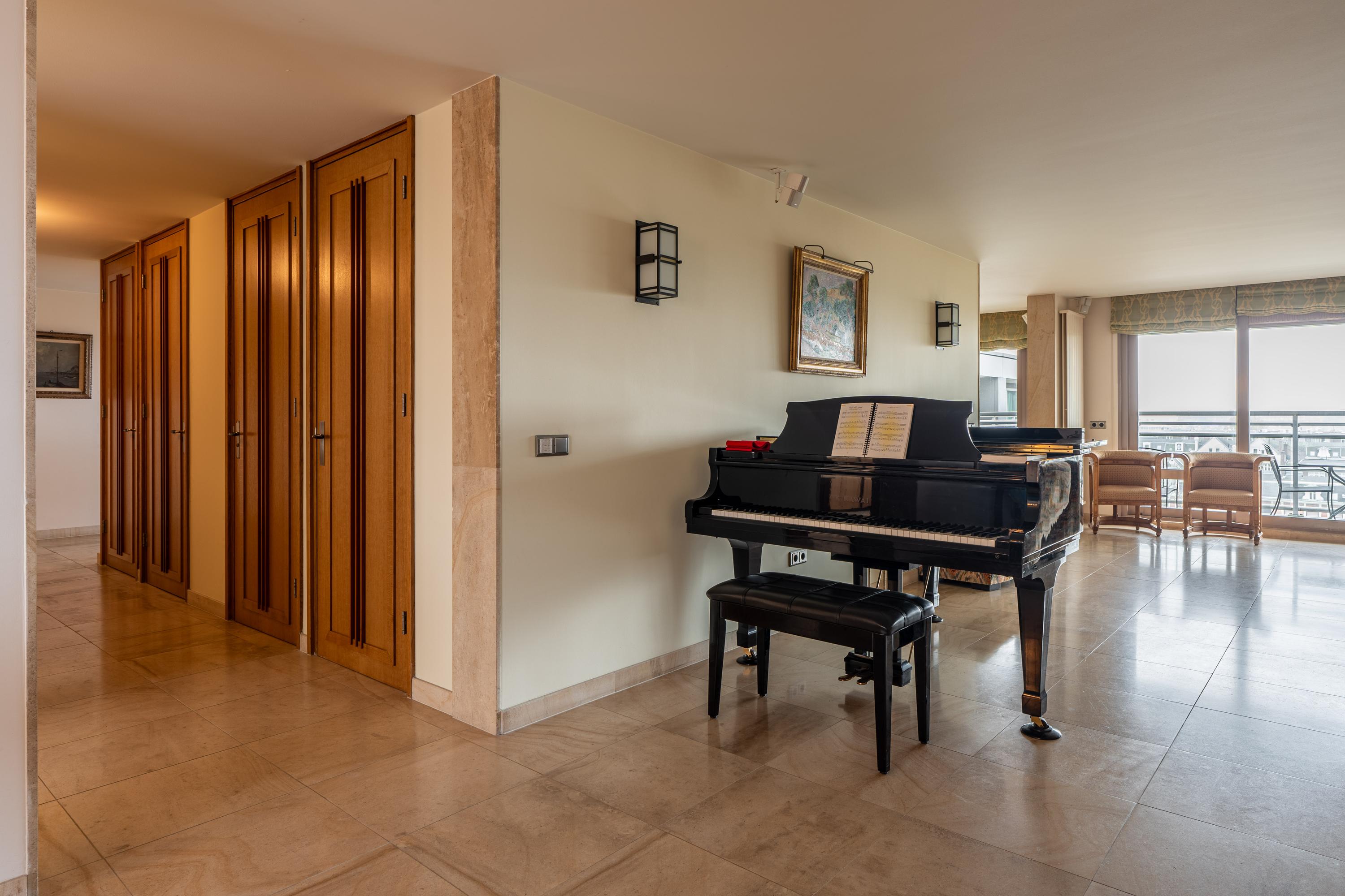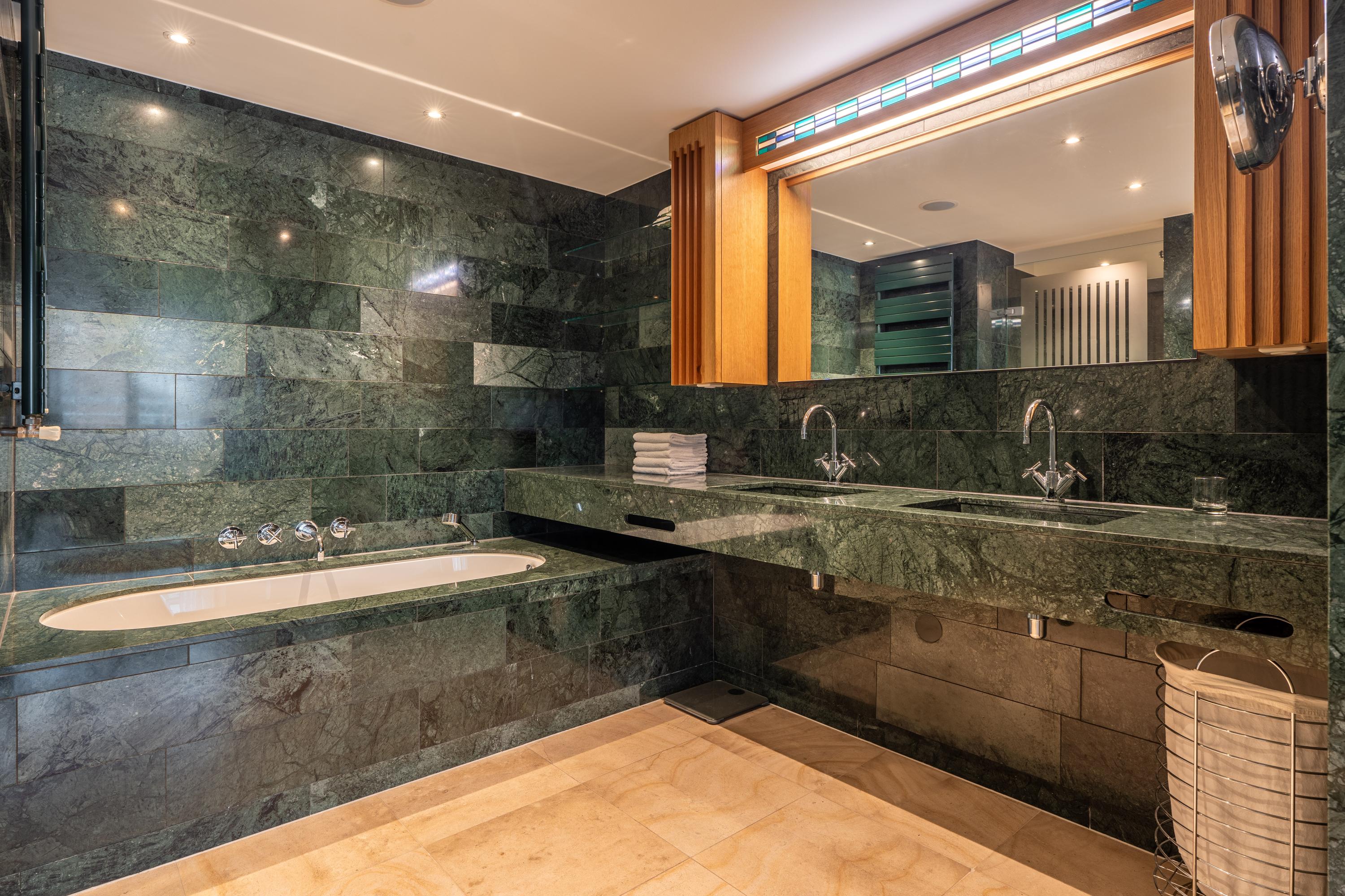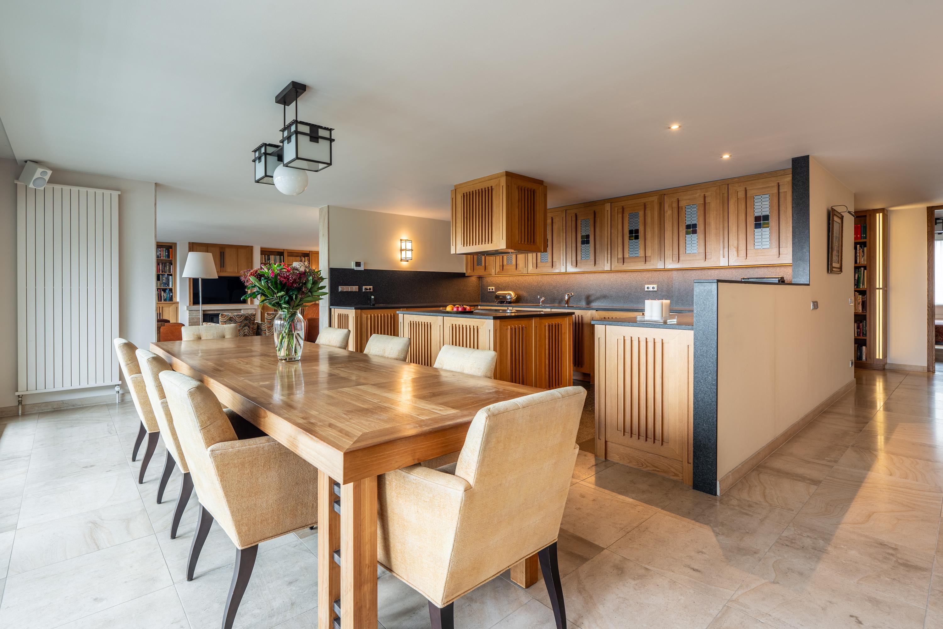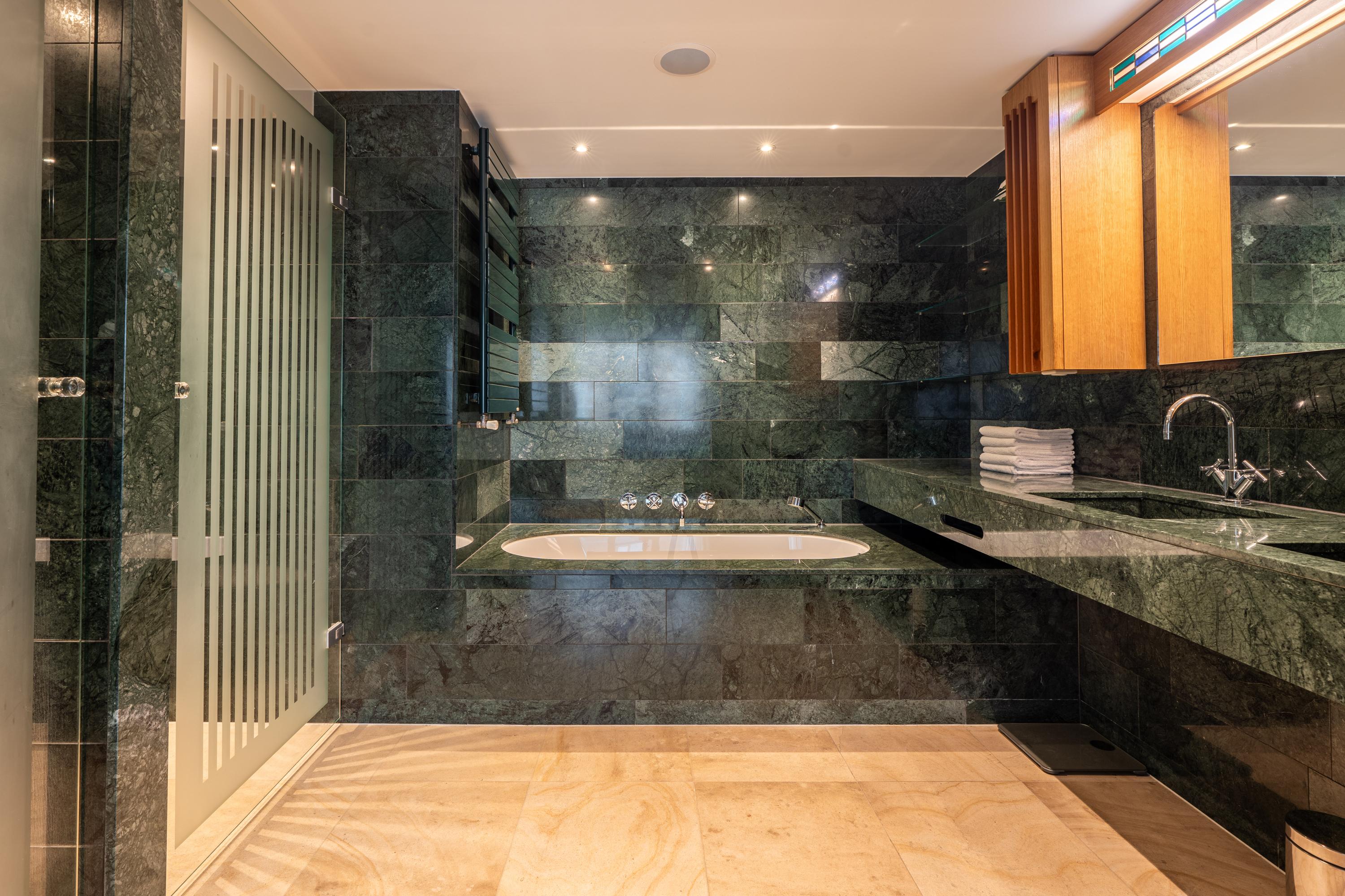 Durch die breite Eingangshalle gelangen Sie in den großzügigen, offenen Wohnbereich, der durch raumhohe Glastüren strukturiert wird und sich nahtlos zu einem 25 m² großen Balkon über die gesamte Breite der Residenz öffnet. Der Vondelpark breitet sich darunter aus und ist sowohl vom Wohnbereich als auch von der Küche aus zu sehen, wodurch eine angenehme Ruhe inmitten der Stadt entsteht. Die Küche ist vollständig ausgestattet und verfügt über eine zentrale Kochinsel, ein Induktionskochfeld mit sechs Kochzonen sowie großzügigen Stauraum. Das Wohnzimmer mit Gaskamin und maßgefertigten Einbauten geht fließend in einen komfortablen Arbeitsplatz über. Drei Schlafzimmer bieten Einbauschränke, individuell gestaltete Schreibtische und Klimaanlage; die Master-Suite beeindruckt mit einem Badezimmer aus grünem Marmor und Doppelwaschtisch. Die gesamte Wohnung ist mit Fußbodenheizung und energieeffizienten Systemen ausgestattet, ergänzt durch Doppelverglasung und mechanische Lüftung – so ist ganzjähriger Komfort garantiert.