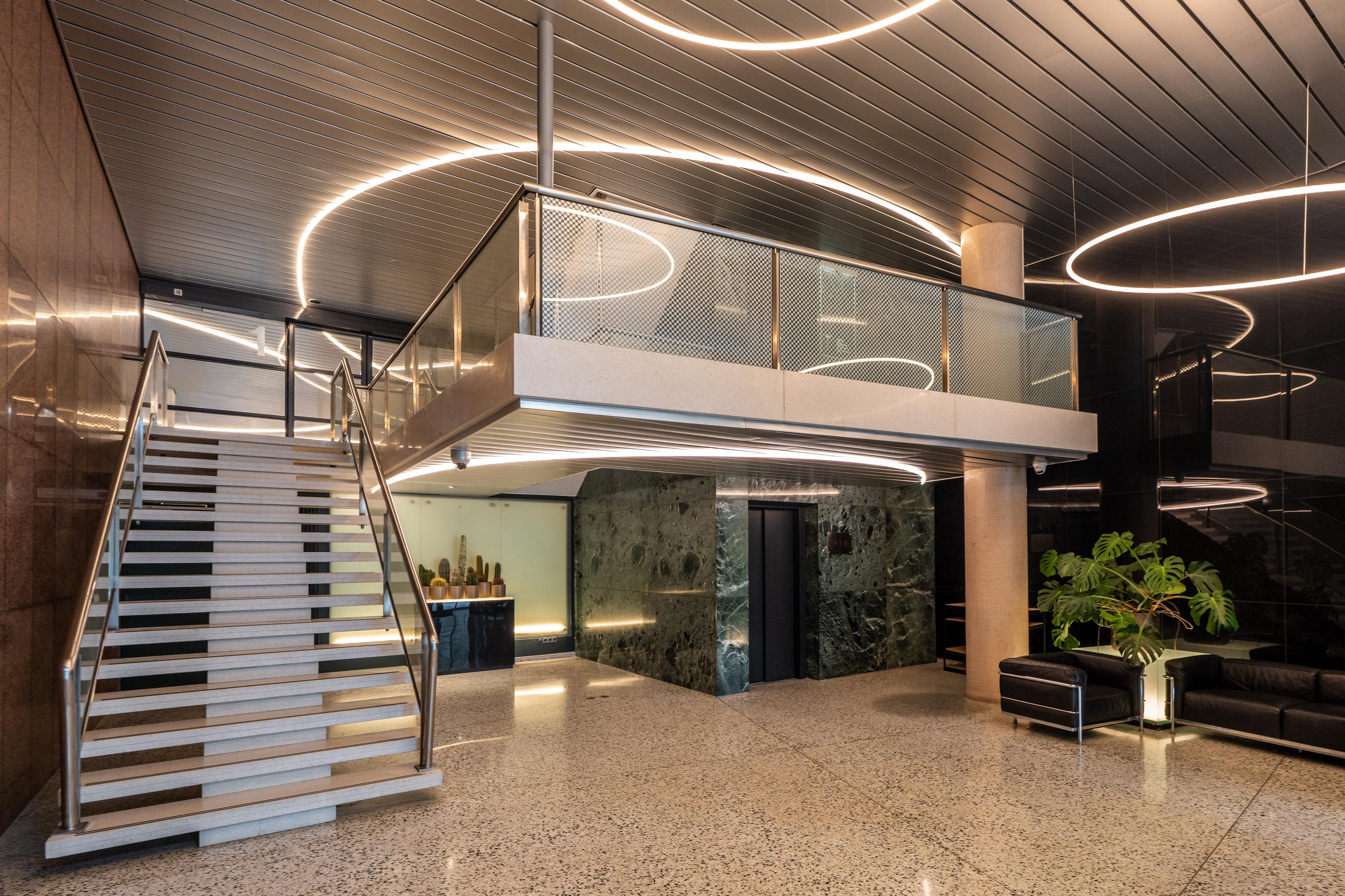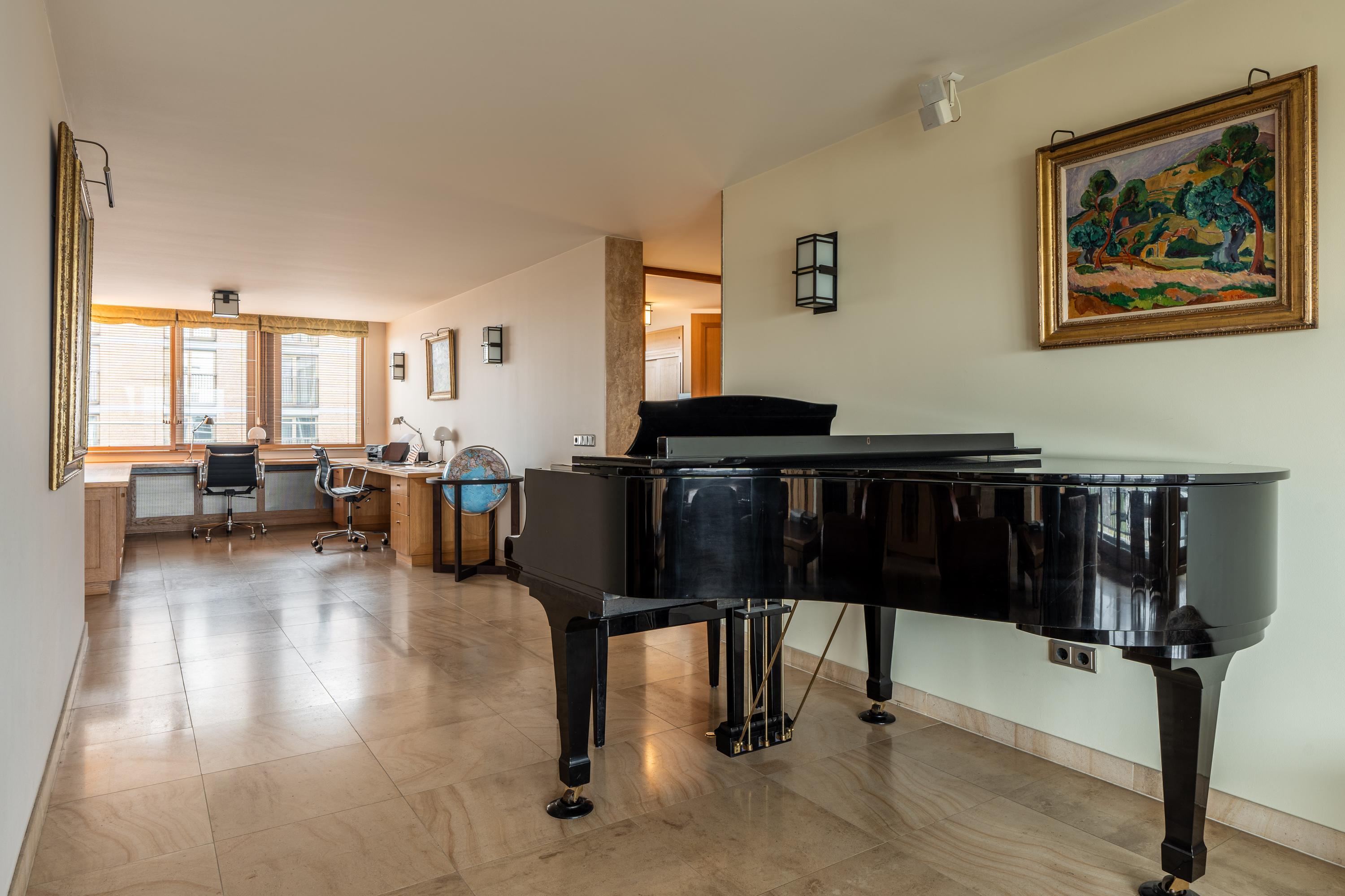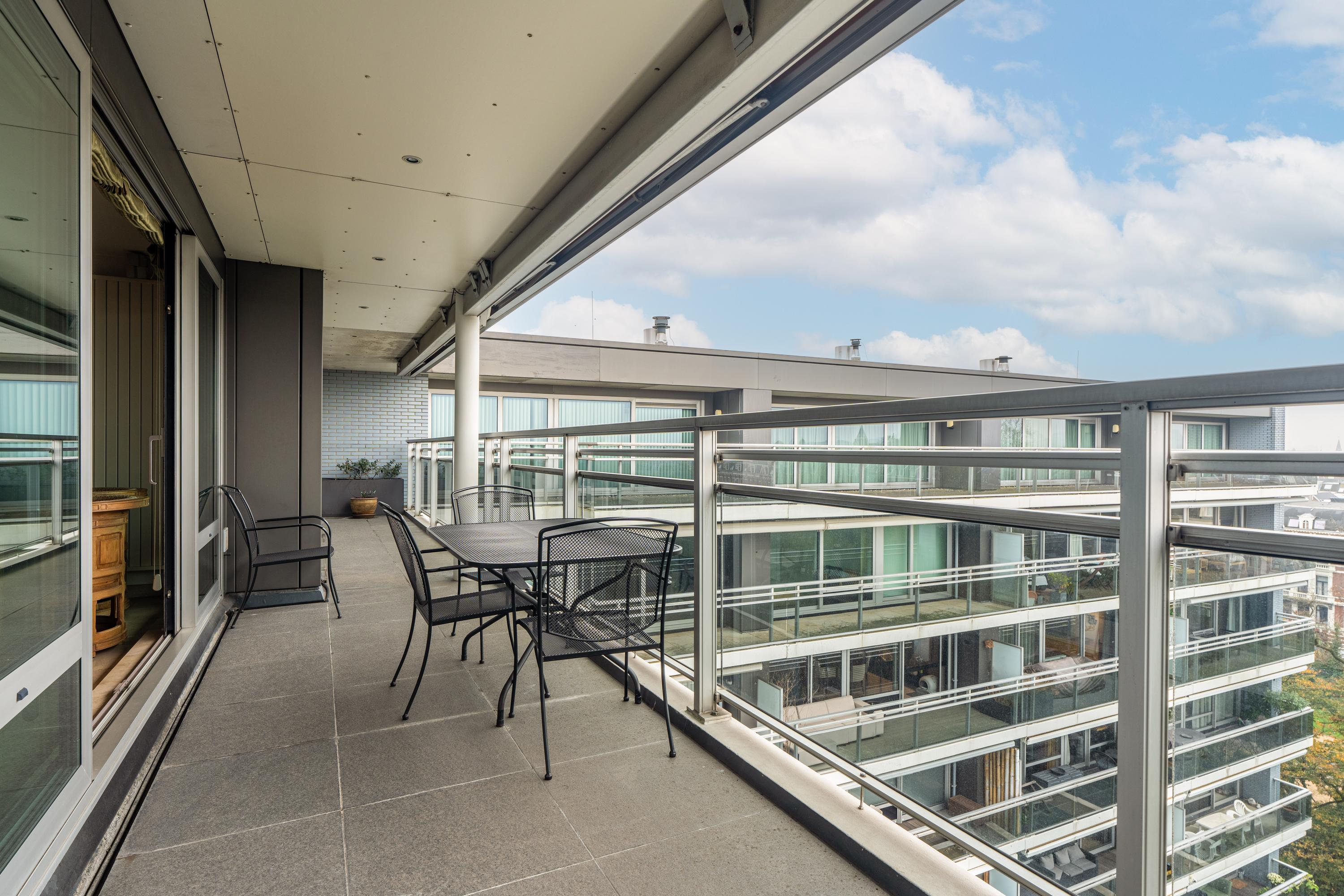 Dieses Penthouse in Amsterdam befindet sich im achten Stock des Byzantium-Komplexes, direkt angrenzend an den Vondelpark. Die 219 m² große Wohnung vereint architektonische Klarheit mit außergewöhnlicher Privatsphäre und bietet lichtdurchflutete Wohnbereiche sowie eine unvergleichliche Nähe zum grünen Herzen der Stadt. Bereits die luxuriöse Lobby aus Naturstein vermittelt einen bleibenden Eindruck von der Eleganz des Gebäudes. Das von Rem Koolhaas entworfene Byzantium bietet eine sichere Umgebung mit 24-Stunden-Überwachung, Concierge-Service und direktem Liftzugang von der Tiefgarage, in der optional ein Parkplatz mit Ladesäule für Elektrofahrzeuge zur Verfügung steht.
