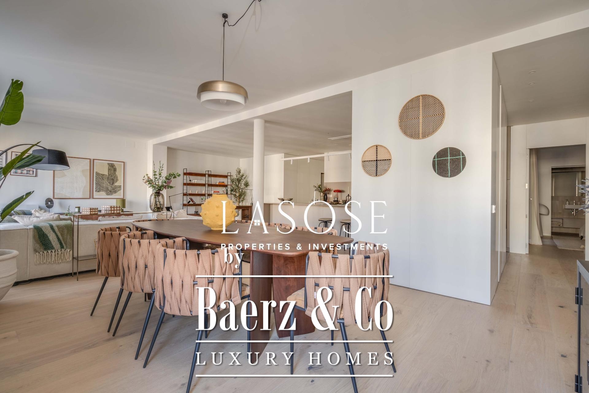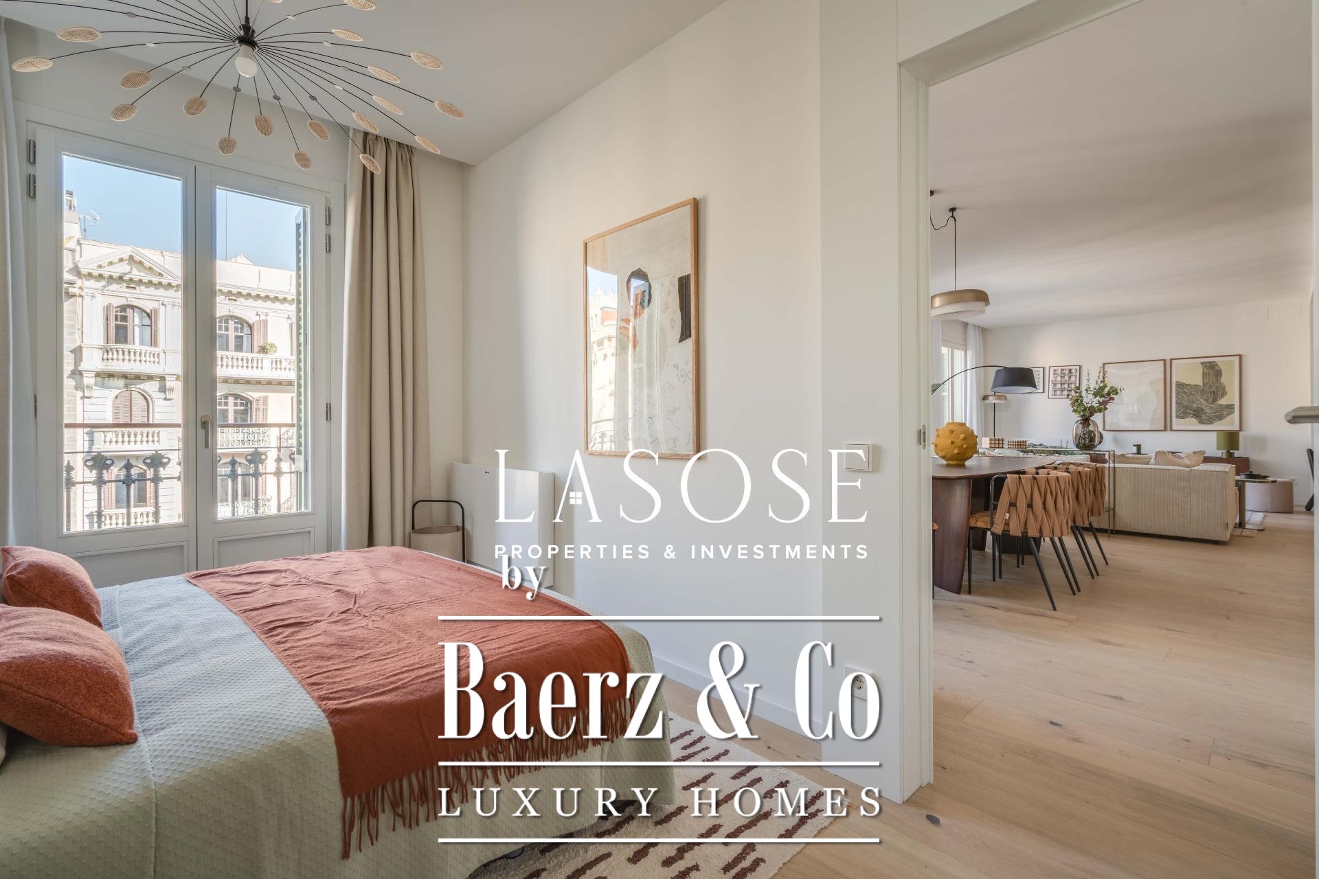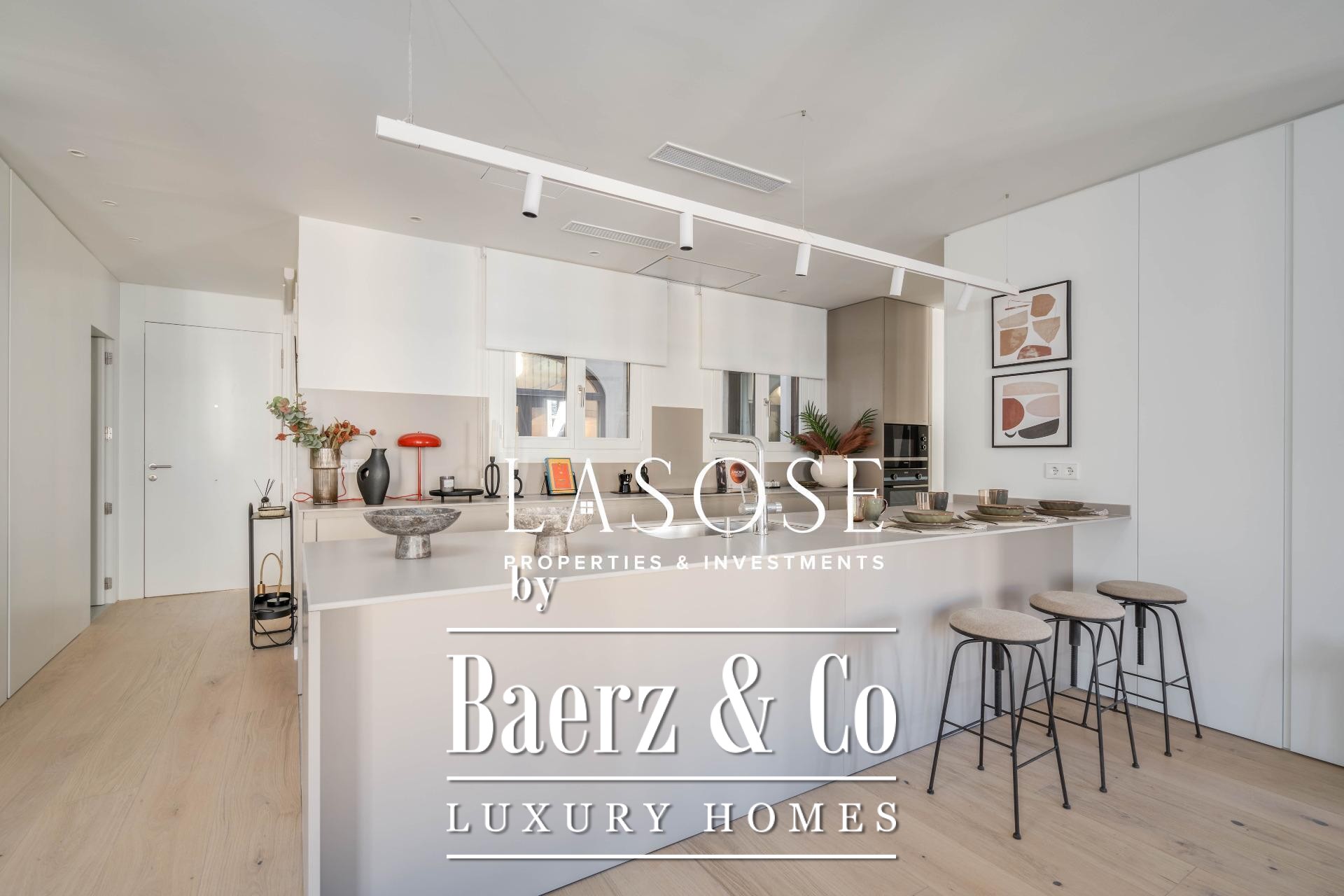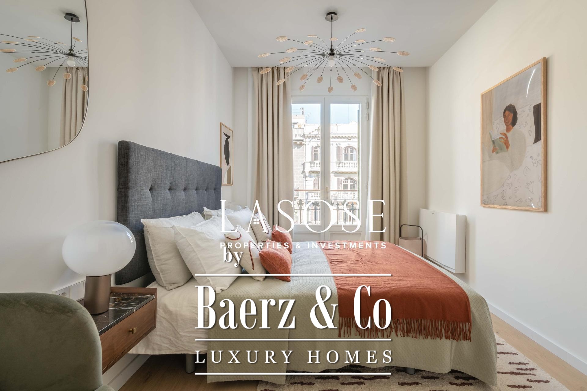 Diese Residenz bietet 137 m² Wohnfläche, sorgfältig aufgeteilt in zwei Schlafzimmer und drei Bäder. Balkone und eine großzügige Terrasse verbinden die Innenräume mit dem pulsierenden Stadtleben, während die Fassade und die Gemeinschaftsbereiche des Gebäudes den klassischen Charme Barcelonas widerspiegeln. Die von Estudio Vilablanch gestalteten Innenausstattungen balancieren zeitgenössische Akzente mit zeitloser Eleganz und überzeugen mit hochwertigen Geräten, großzügigen Einbauschränken, Heizung und einem edlen, lichtdurchfluteten Ambiente.