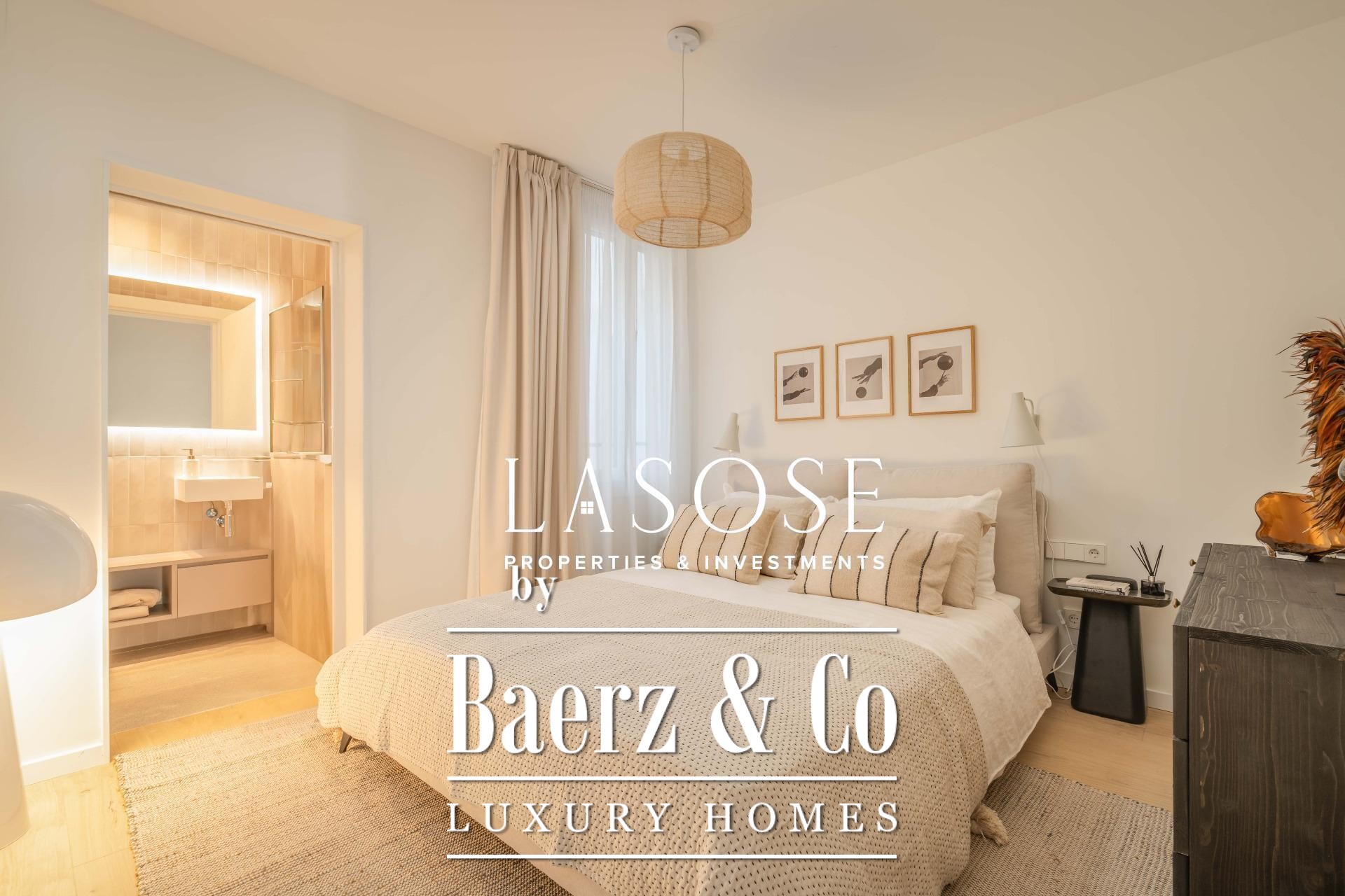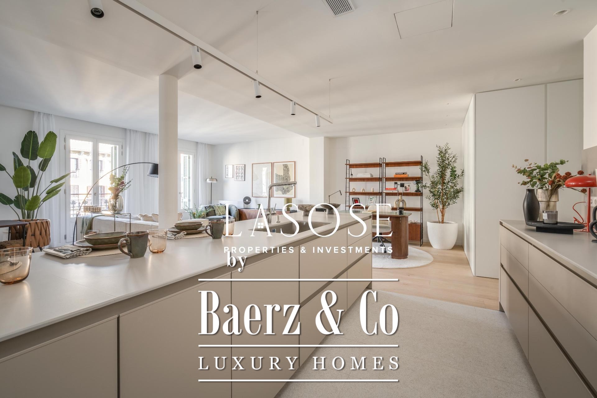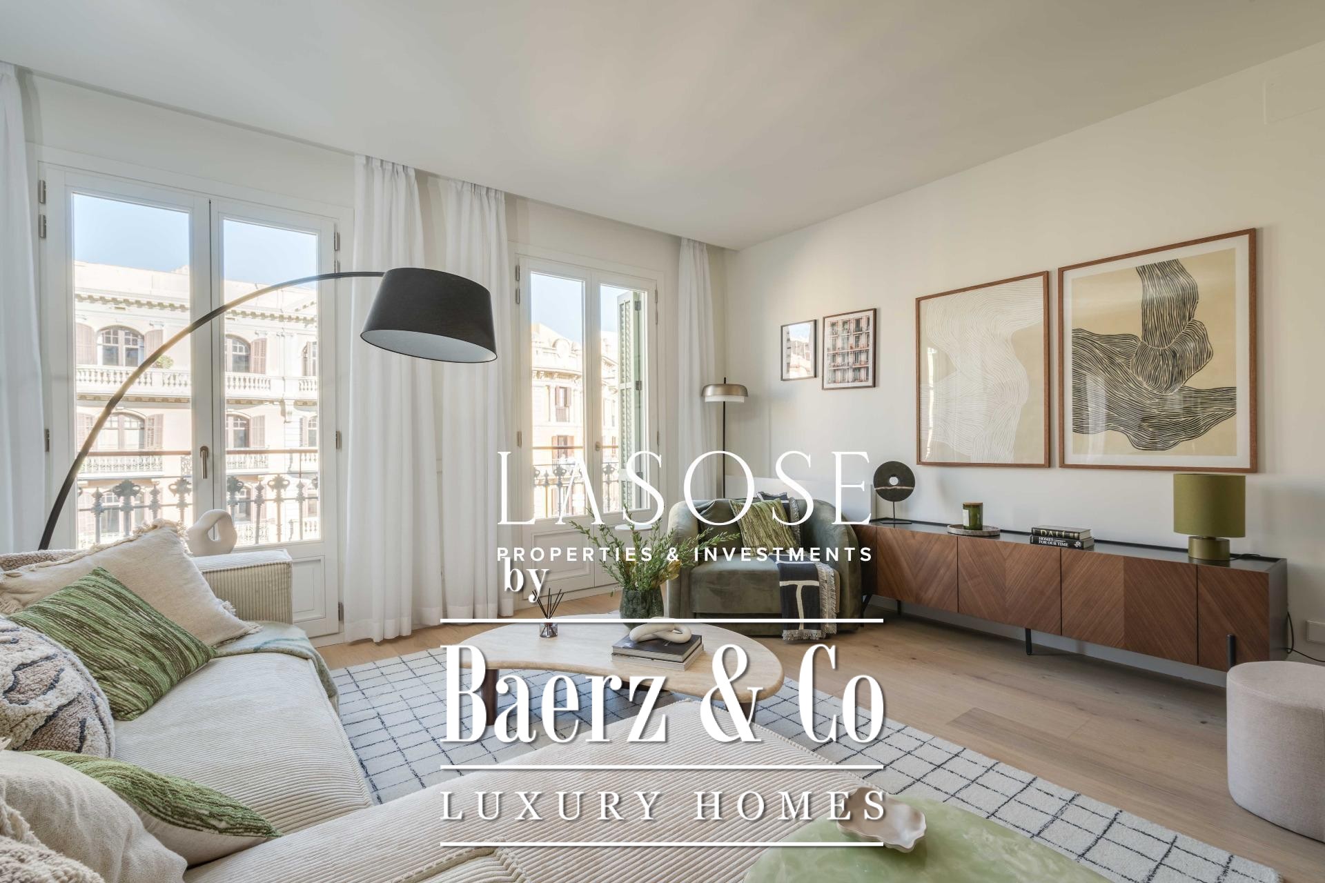Diese Residenz bietet 137 m² Wohnfläche, sorgfältig aufgeteilt in zwei Schlafzimmer und drei Bäder. Balkone und eine großzügige Terrasse verbinden die Innenräume mit dem pulsierenden Stadtleben, während die Fassade und die Gemeinschaftsbereiche des Gebäudes den klassischen Charme Barcelonas widerspiegeln. Die von Estudio Vilablanch gestalteten Innenausstattungen balancieren zeitgenössische Akzente mit zeitloser Eleganz und überzeugen mit hochwertigen Geräten, großzügigen Einbauschränken, Heizung und einem edlen, lichtdurchfluteten Ambiente.