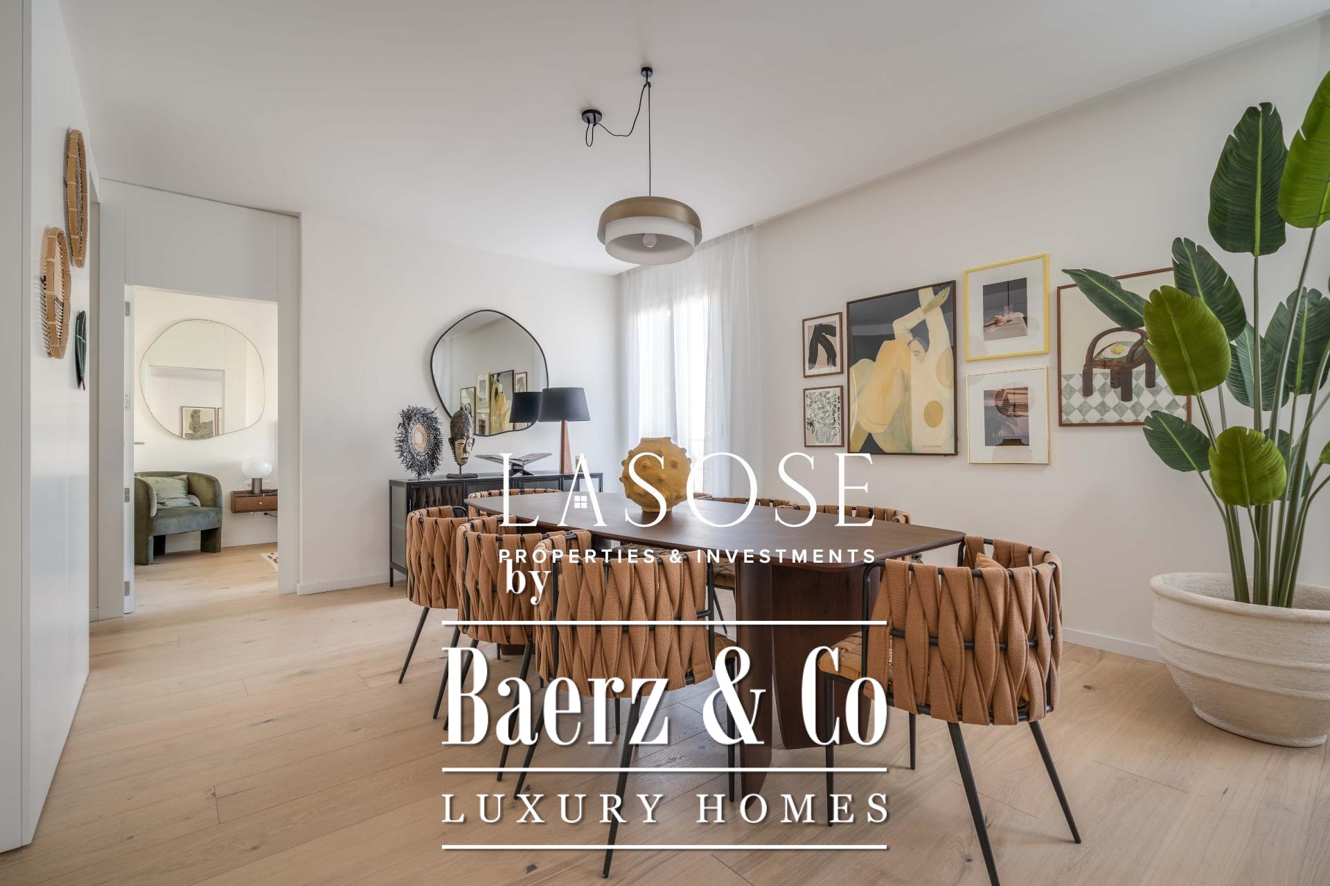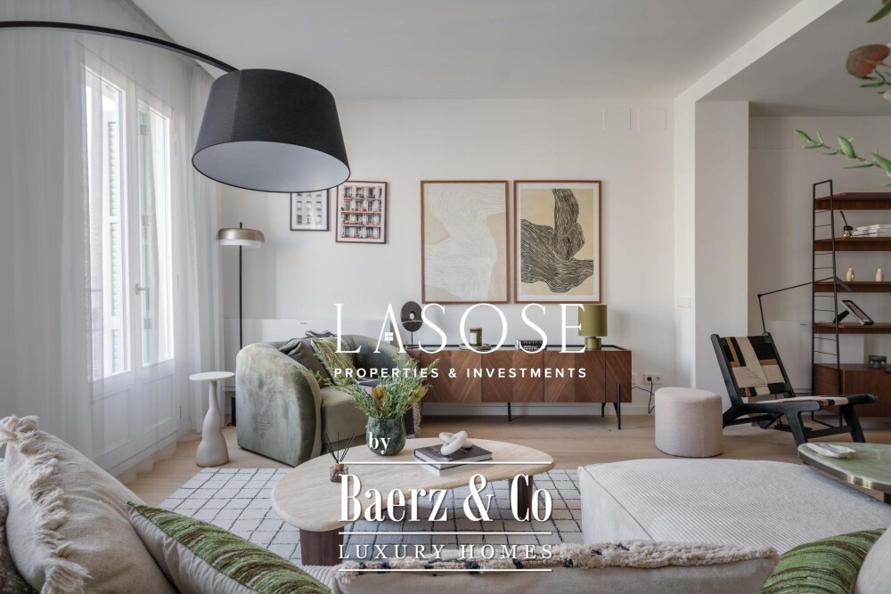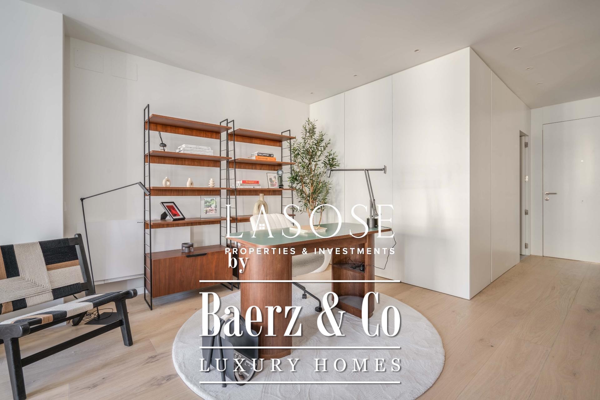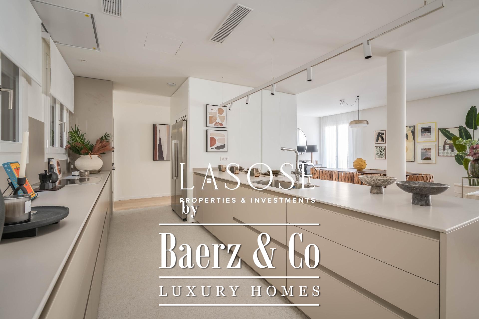 Diese Residenz bietet 137 m² Wohnfläche, sorgfältig aufgeteilt in zwei Schlafzimmer und drei Bäder. Balkone und eine großzügige Terrasse verbinden die Innenräume mit dem pulsierenden Stadtleben, während die Fassade und die Gemeinschaftsbereiche des Gebäudes den klassischen Charme Barcelonas widerspiegeln. Die von Estudio Vilablanch gestalteten Innenausstattungen balancieren zeitgenössische Akzente mit zeitloser Eleganz und überzeugen mit hochwertigen Geräten, großzügigen Einbauschränken, Heizung und einem edlen, lichtdurchfluteten Ambiente.