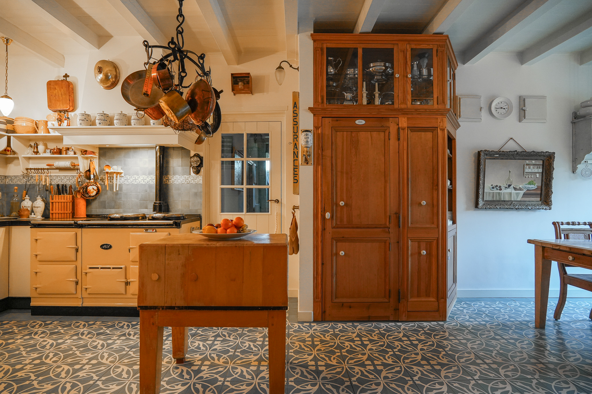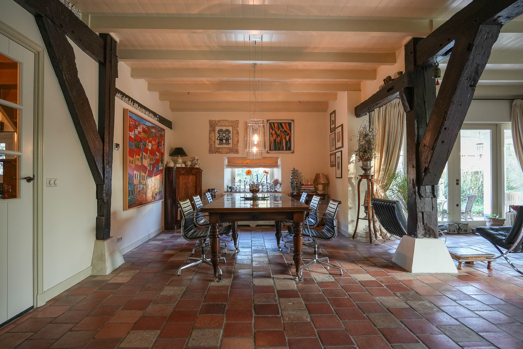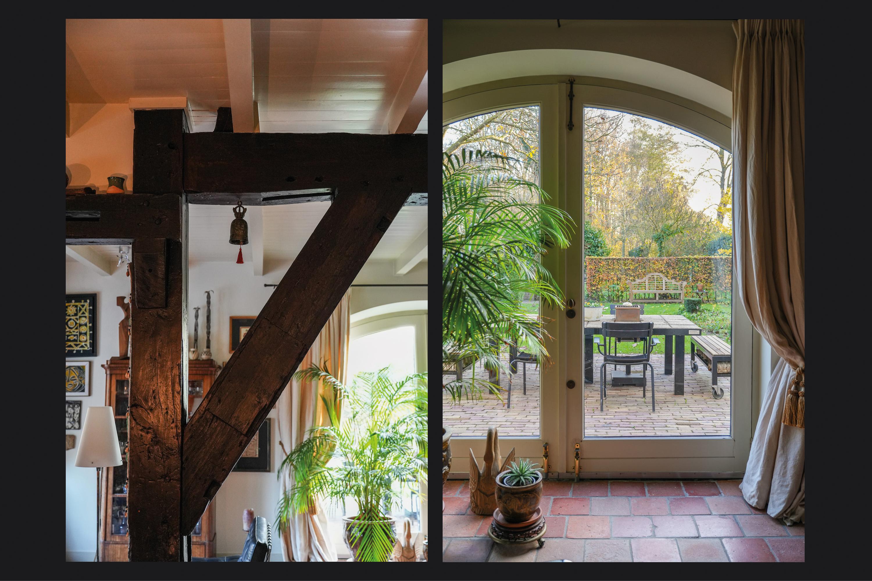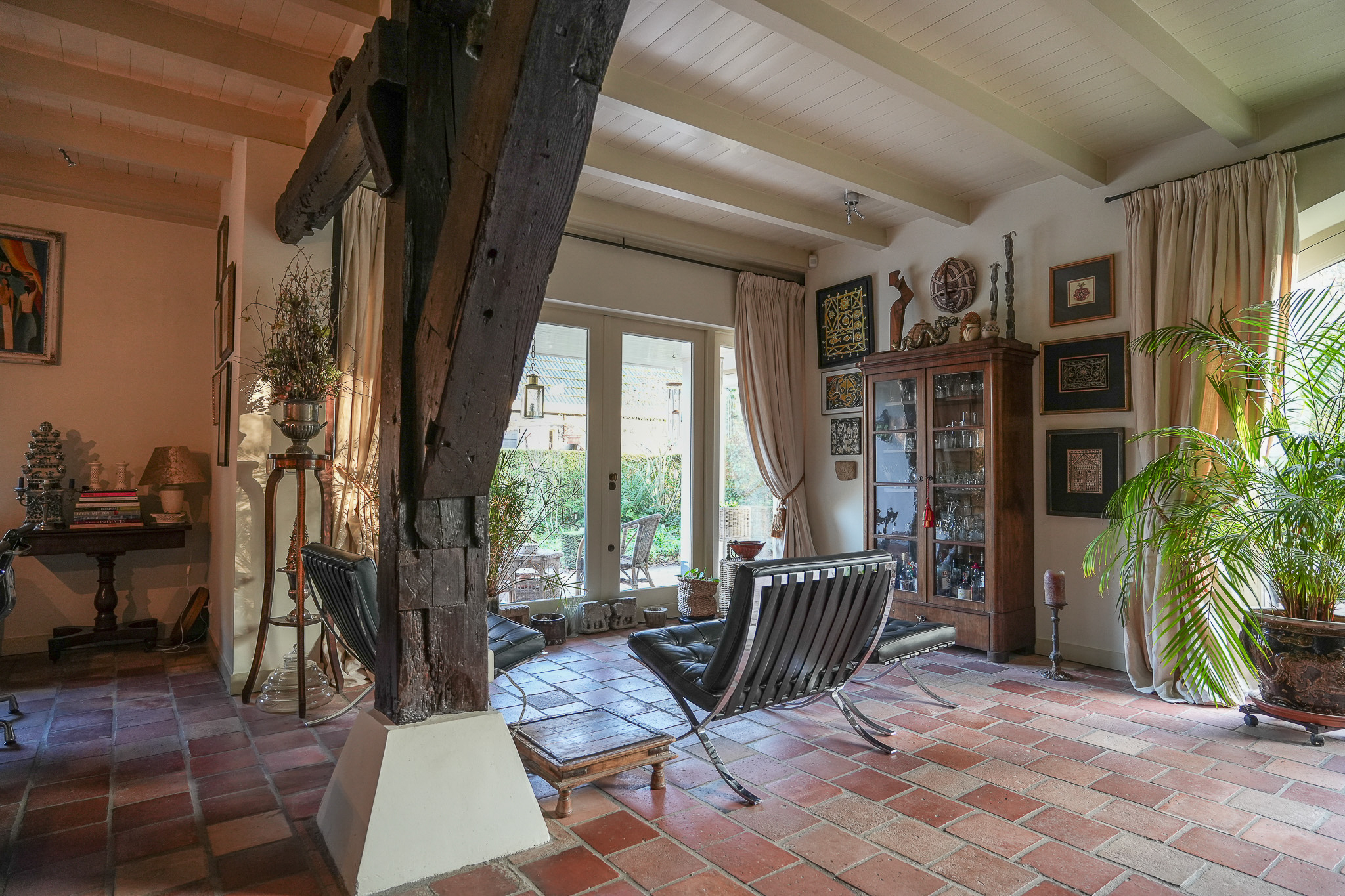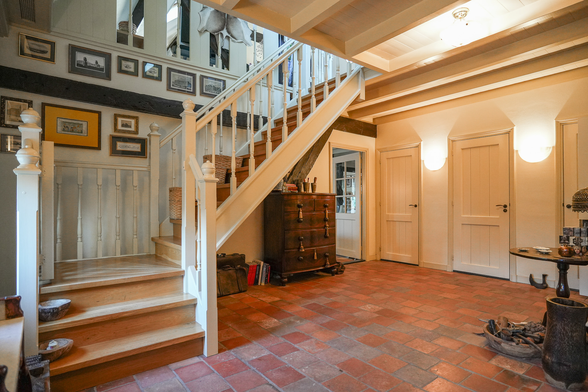 Das Bauernhaus Hellouw präsentiert sich als dezente, doch beeindruckende Erscheinung am Rande des Betuwe-Dorfes; sein Baujahr 1917 prägt jedes durchdachte Detail. Das Anwesen auf einem 4.910 m² großen Grundstück bietet 403 m² Wohnfläche, fünf Schlafzimmer und zwei Bäder. Großzügige Proportionen und originale Stilelemente bestimmen das Interieur, wo Sandsteinkamine und Fachwerkbalken den Räumen eine angenehme Schwere verleihen. Im Erdgeschoss befindet sich ein geräumiges, gartenseitiges Wohnzimmer in der ehemaligen Scheune, eine Landhausküche mit antiken Fliesen, ein Weinkeller sowie ein Ensemble ebenerdiger Räume: ein Schlafzimmer mit Kamin, Ankleide und Büro – alle mit Blick ins private Grün.