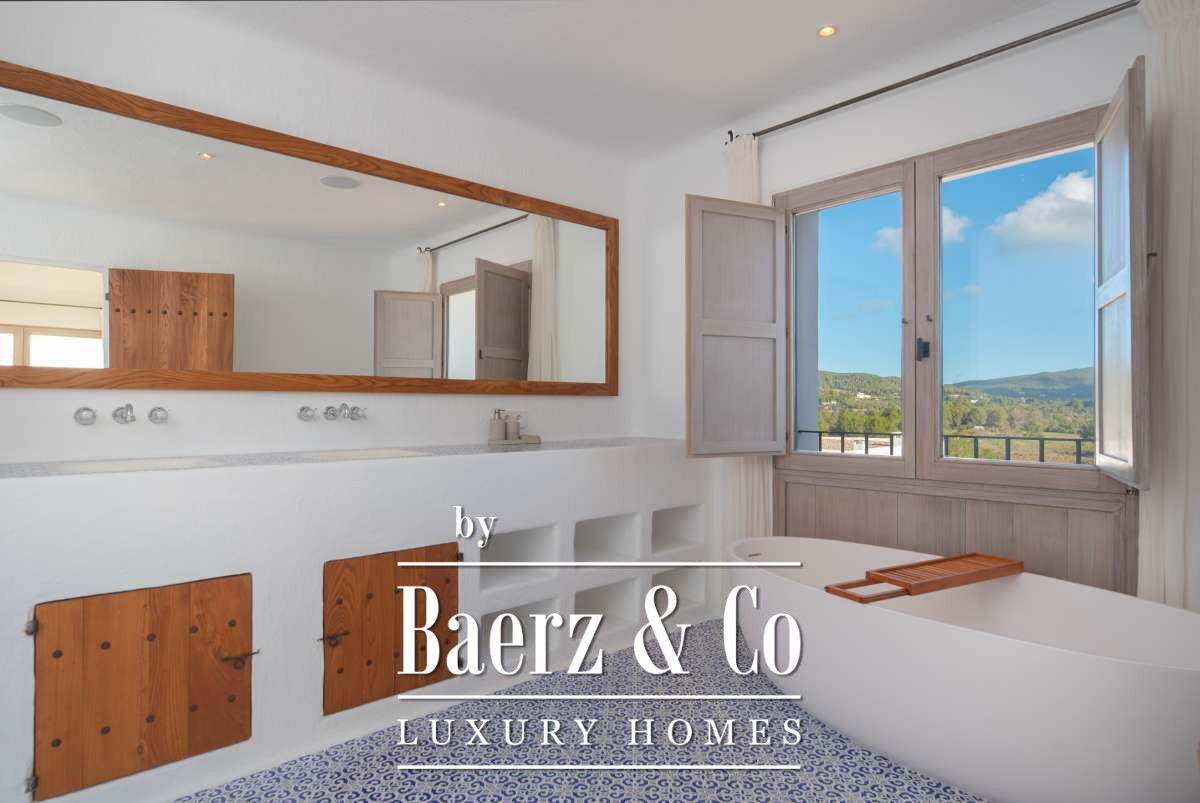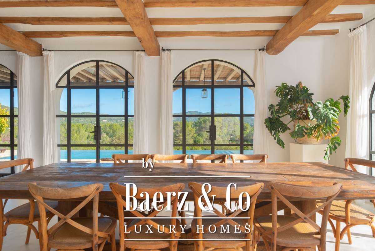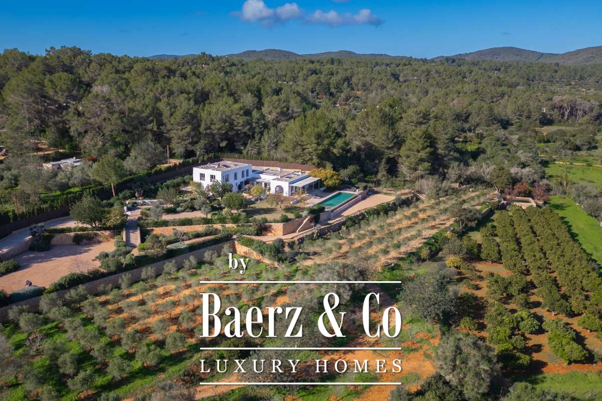 Dieses Landhaus in Sant Llorenç de Balàfia befindet sich am höchsten Punkt des Tals der Insel, wo wellige Agrarlandschaften auf Wälder und Bergblicke treffen. Die Terrassen des Anwesens öffnen sich zu einer Kulisse aus Olivenhainen und Obstbäumen; der Ausblick reicht bis zum Kirchturm von Balafí und zu den historischen Mauern in der Ferne. Auf der gegenüberliegenden Seite bringen die Quellen von San Rafael Frische in die Landschaft und mildern den Horizont. Ruhe und Privatsphäre umgeben dieses 24.215 m² große Anwesen, dennoch sind Eivissa und Santa Gertrudis bequem erreichbar.