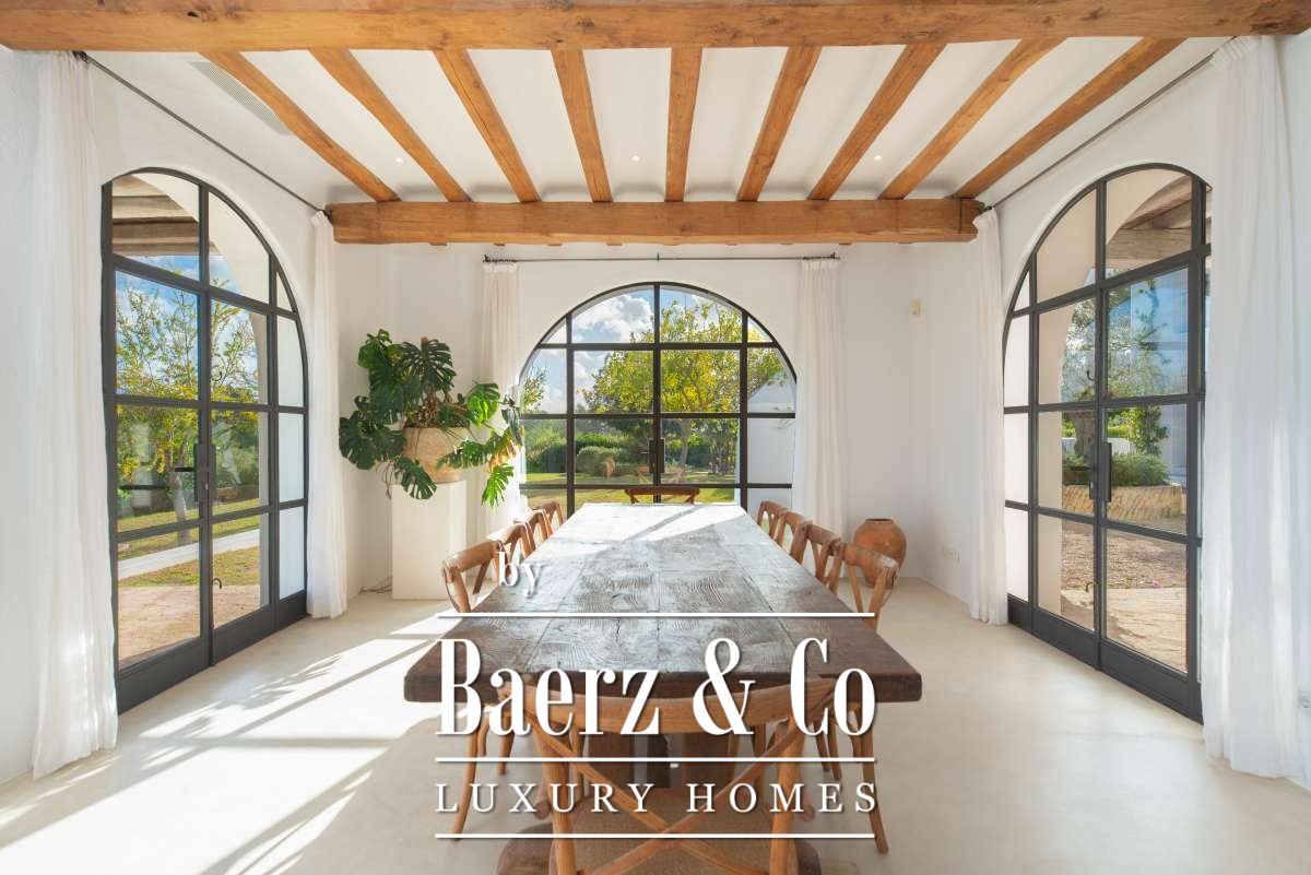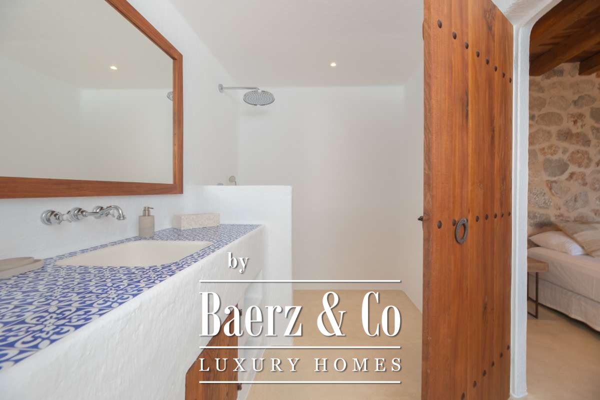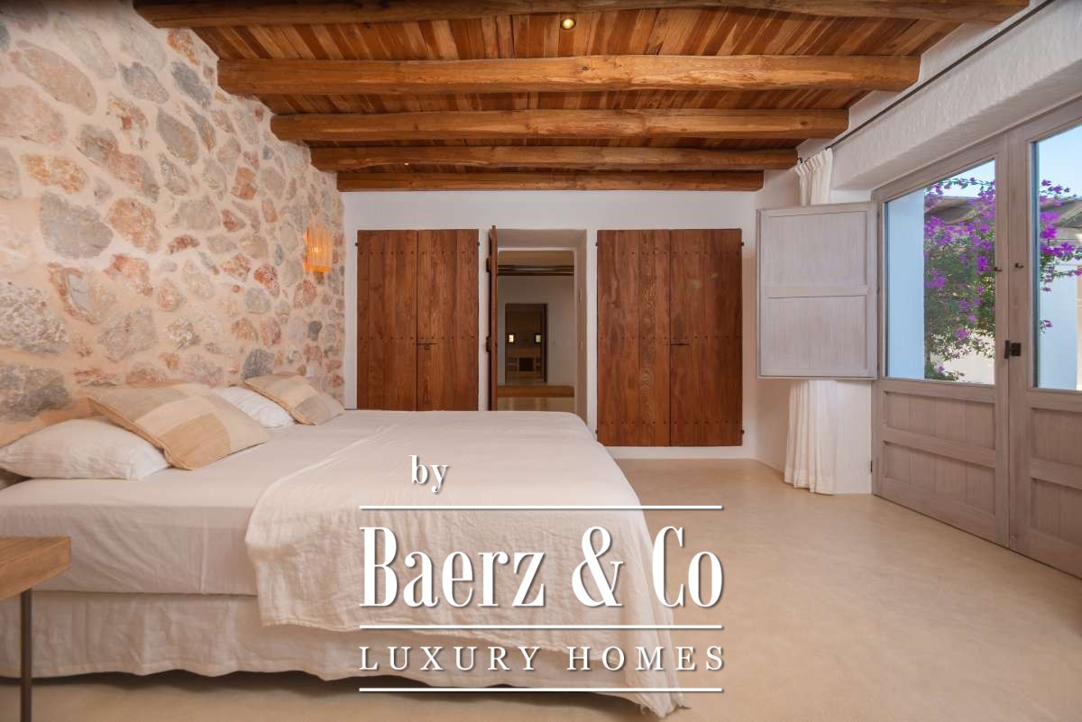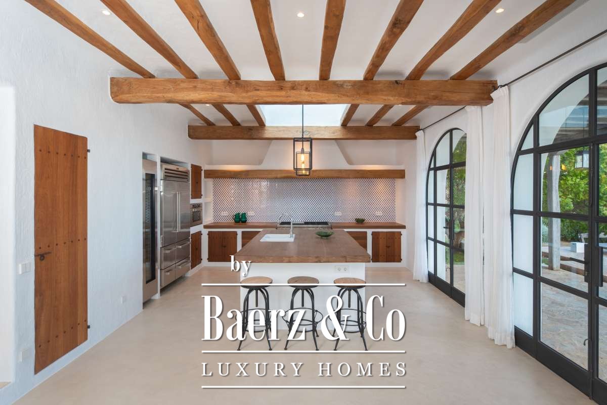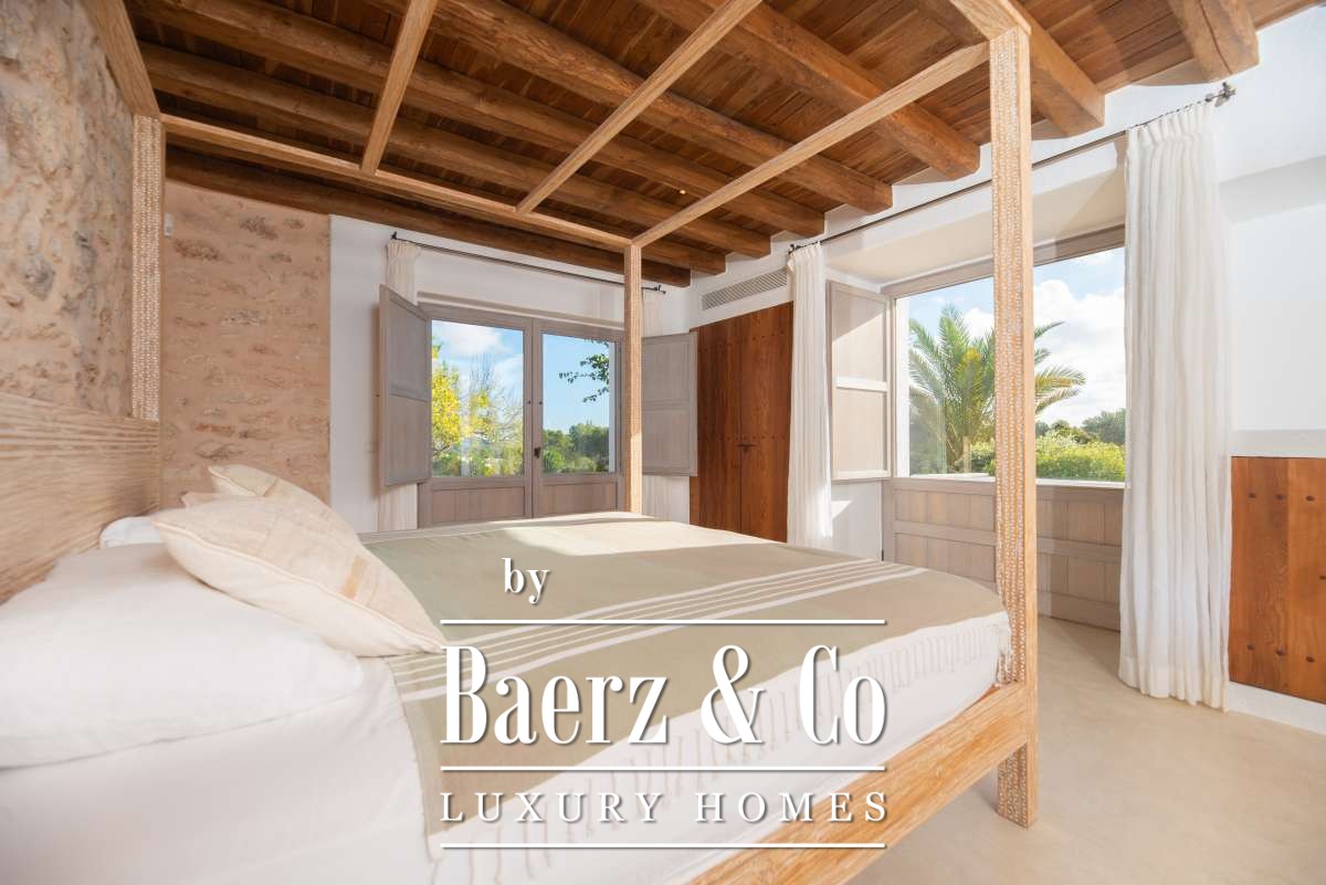 Das Haus war ursprünglich eine authentische Finca, die in den 1940er-Jahren erweitert wurde, und bietet nun 506 m² Wohnfläche, die sich auf 361,7 m² im Erdgeschoss und 144,64 m² im Obergeschoss verteilen. Vier Schlafzimmer und fünf Bäder wurden sorgfältig renoviert, jedes Detail achtet auf die kubistische Architektur und rustikale Schlichtheit. Die Wohnbereiche fließen nahtlos in die Garten-Terrassen über und laden ein, das entspannte mediterrane Lebensgefühl zu genießen.