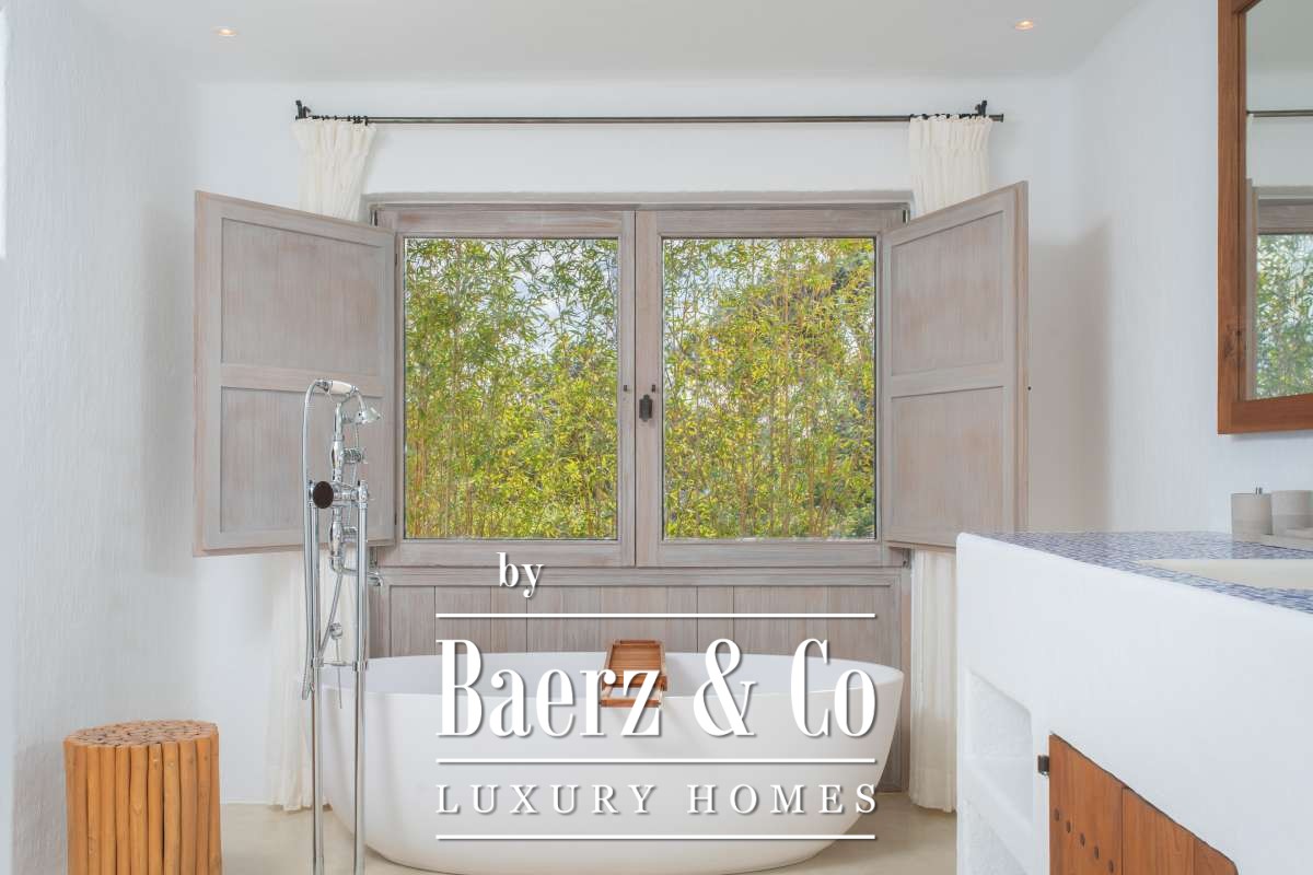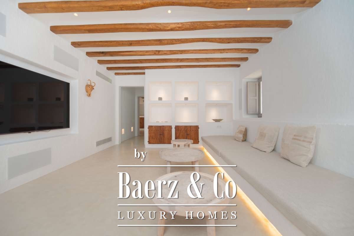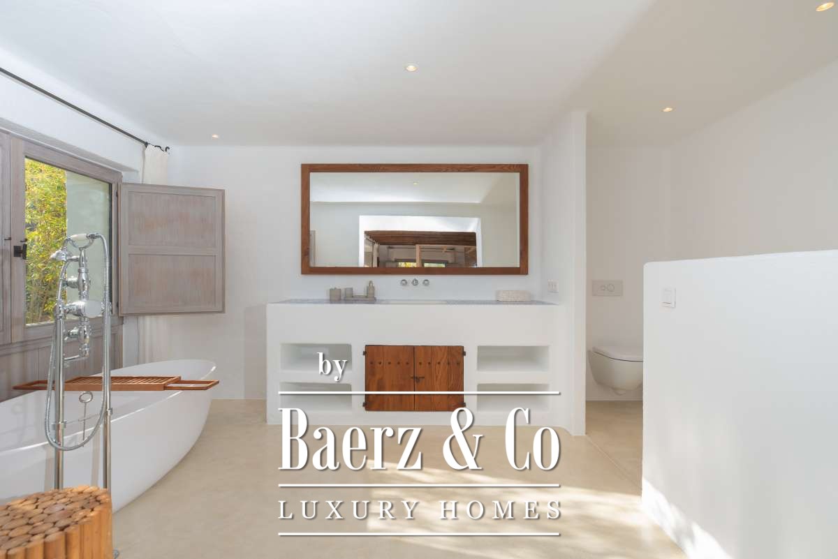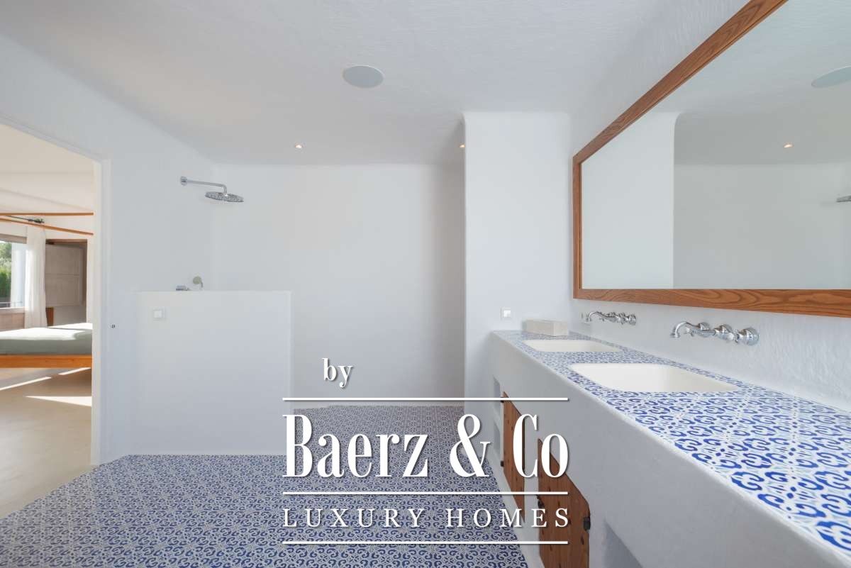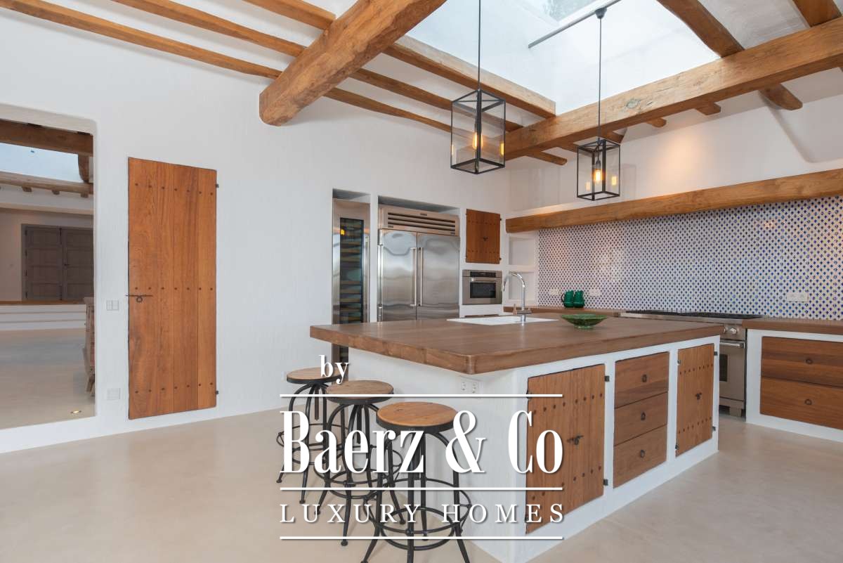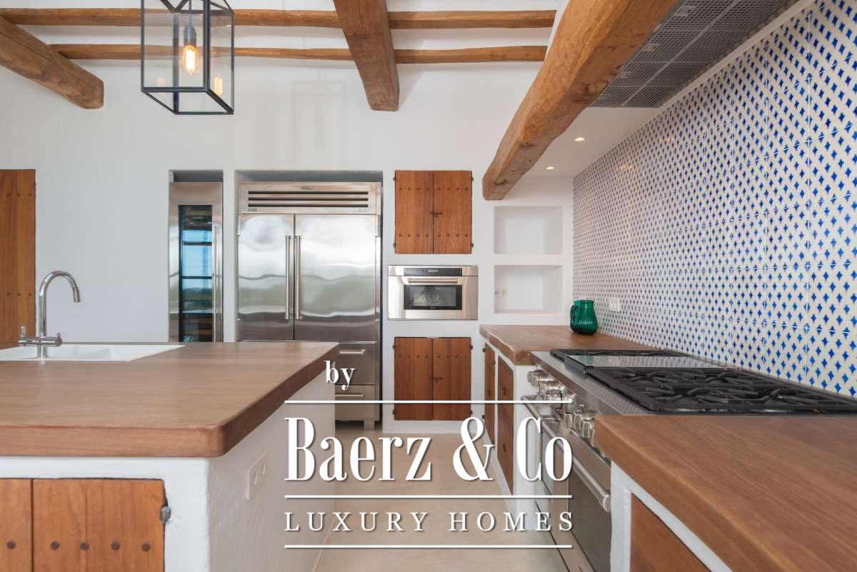 Das Haus war ursprünglich eine authentische Finca, die in den 1940er-Jahren erweitert wurde, und bietet nun 506 m² Wohnfläche, die sich auf 361,7 m² im Erdgeschoss und 144,64 m² im Obergeschoss verteilen. Vier Schlafzimmer und fünf Bäder wurden sorgfältig renoviert, jedes Detail achtet auf die kubistische Architektur und rustikale Schlichtheit. Die Wohnbereiche fließen nahtlos in die Garten-Terrassen über und laden ein, das entspannte mediterrane Lebensgefühl zu genießen.