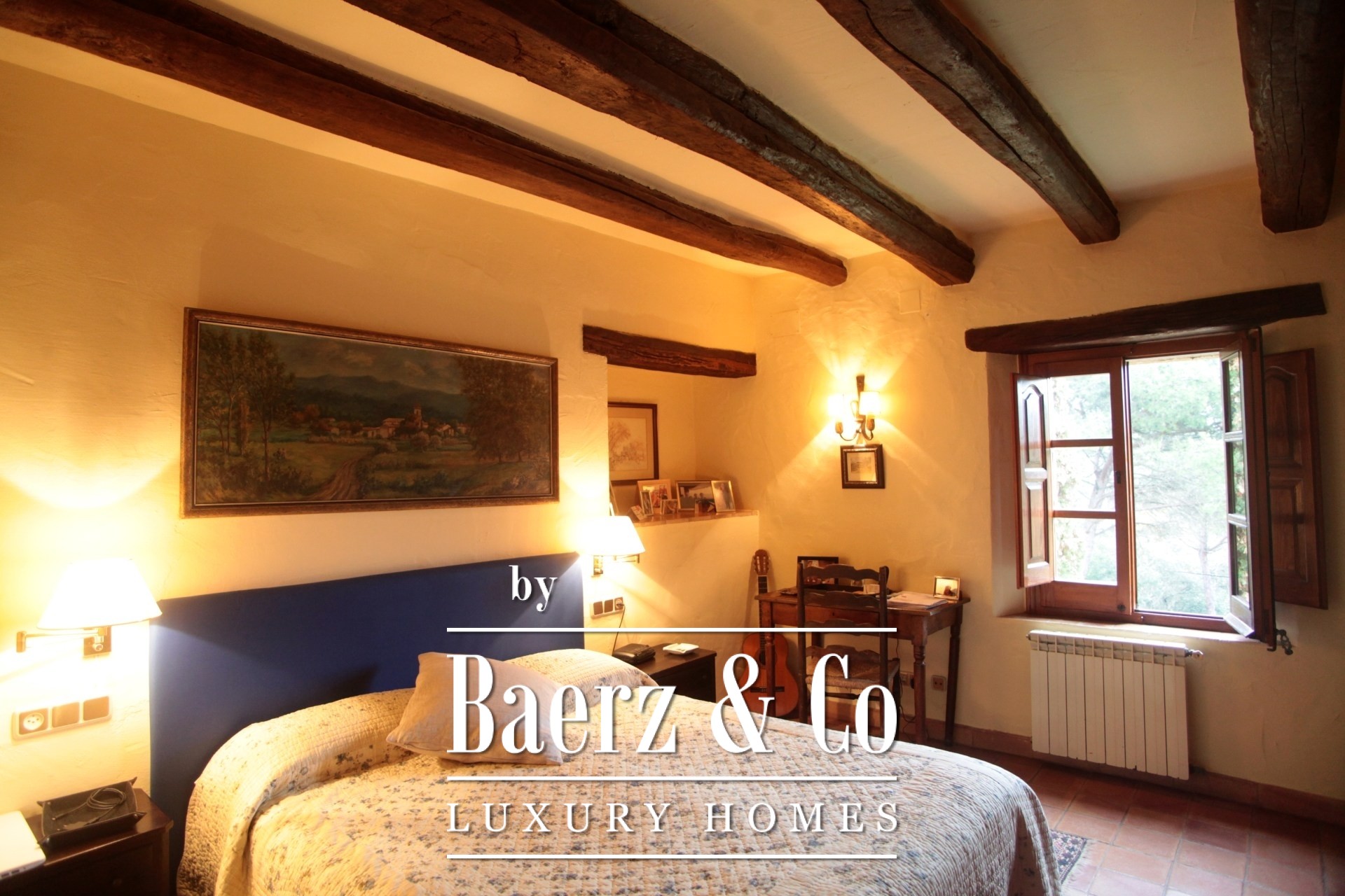 Auf einer Wohnfläche von 513 m² bewahrt das Haus seine ursprünglichen Holzbalkendecken, traditionelle Steinzeugböden sowie eine harmonische Mischung aus weiß getünchten Wänden und Naturstein. Die räumliche Anordnung umfasst neun Schlafzimmer und sechs Badezimmer, verteilt auf drei separate Küchen, drei Wohnzimmer, ein Esszimmer und ein eigenes Büro. Diese flexible Aufteilung eignet sich sowohl für das Familienleben und den ruhigen Rückzug als auch für ein anspruchsvolles Gastgewerbe im echten katalanischen Stil.