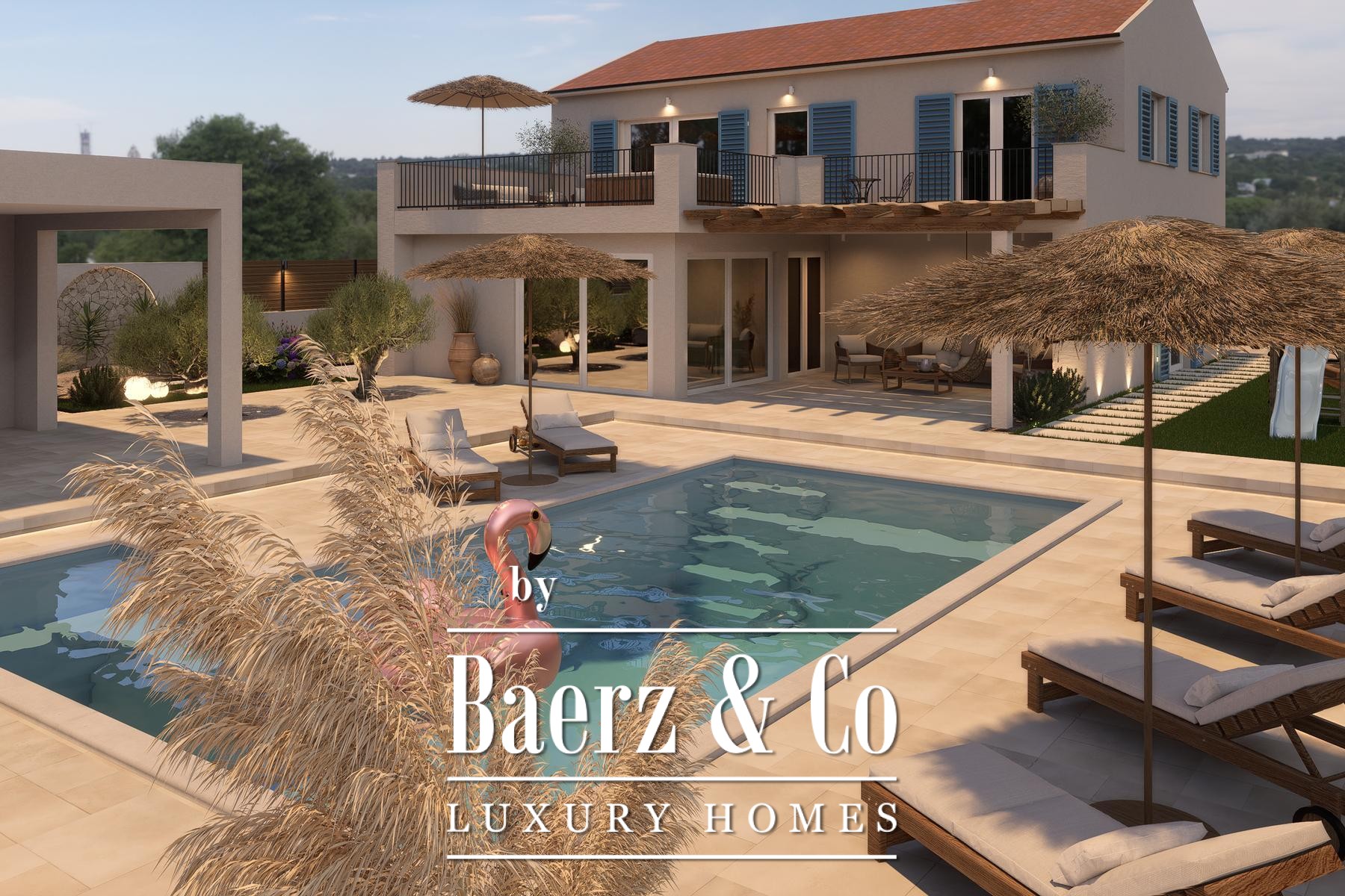 Der Gartenbereich erstreckt sich rund um einen Swimmingpool mit Sonnenliegefläche und großzügiger Terrasse, eingebettet in mediterrane, reife Bepflanzung. Eine Sommerküche schafft den perfekten Rahmen für geselliges Speisen und entspannte Momente. Die Steinvilla Zadar Okolica ist ideal für privates Wohnen das ganze Jahr über oder als strategische Anlage, mit allen Annehmlichkeiten des täglichen Lebens in unmittelbarer Nähe und direktem Zugang nach Zadar. Die Fertigstellung ist für Mai 2026 vorgesehen.