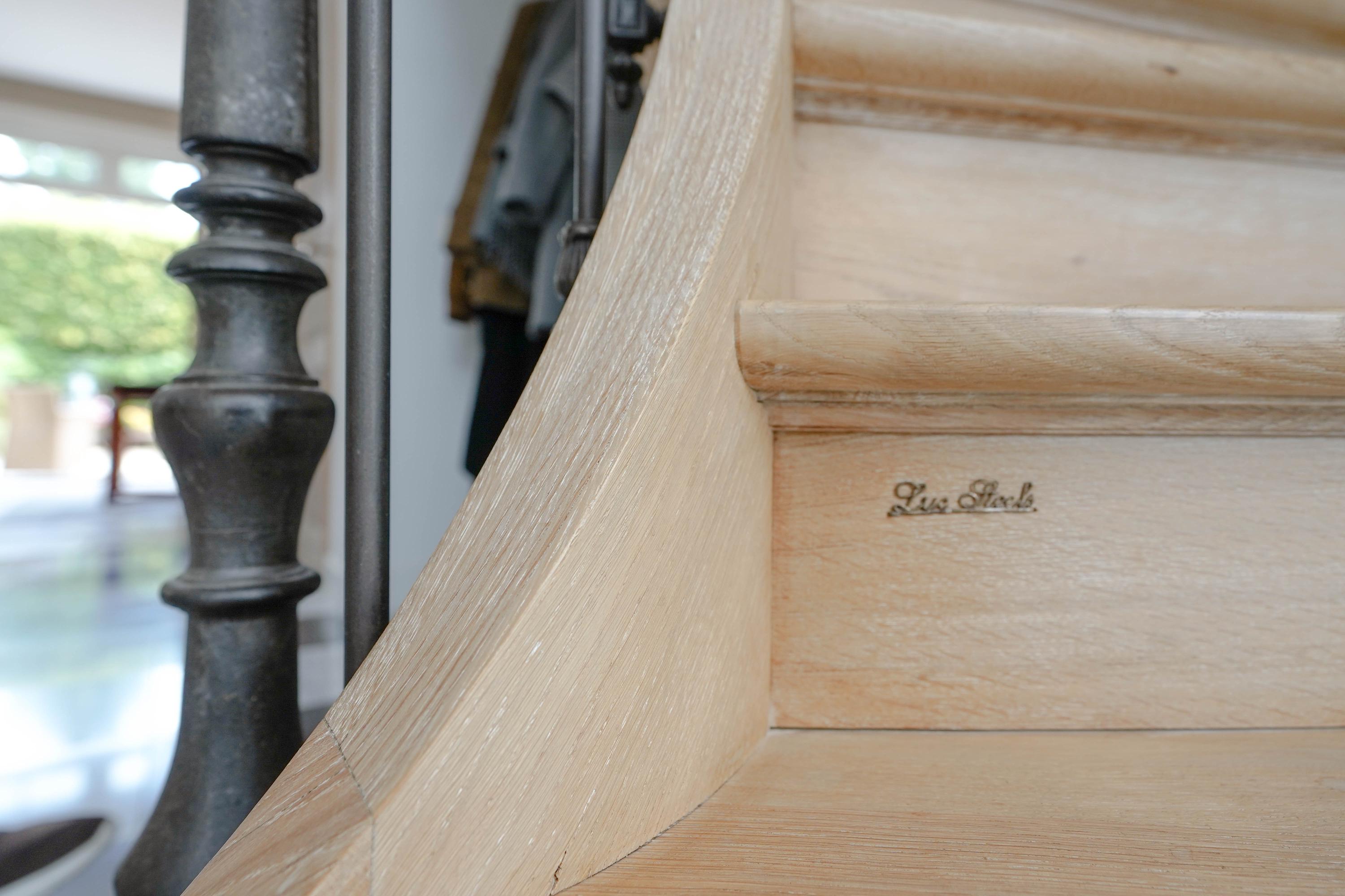 De entreehal maakt direct indruk met een fraai gesculptureerde, eiken trappartij. Vanaf de begane grond loopt een massief eiken leuning in één ononderbroken stuk door tot en met de bovenste etage, gedragen door 87 gepatineerde, gietijzeren zijbalusters. Een meesterwerk van de befaamde Belgische trappenmaker Luc Steels. Hij vervaardigde ook de eiken paneeldeuren en sponningen in het hele huis. In de hal bevinden zich het toilet en de meterkast. Het lichtvenster in het dak boven in de vide zorgt samen met de grote glaspui voor optimaal daglicht op alle etages.