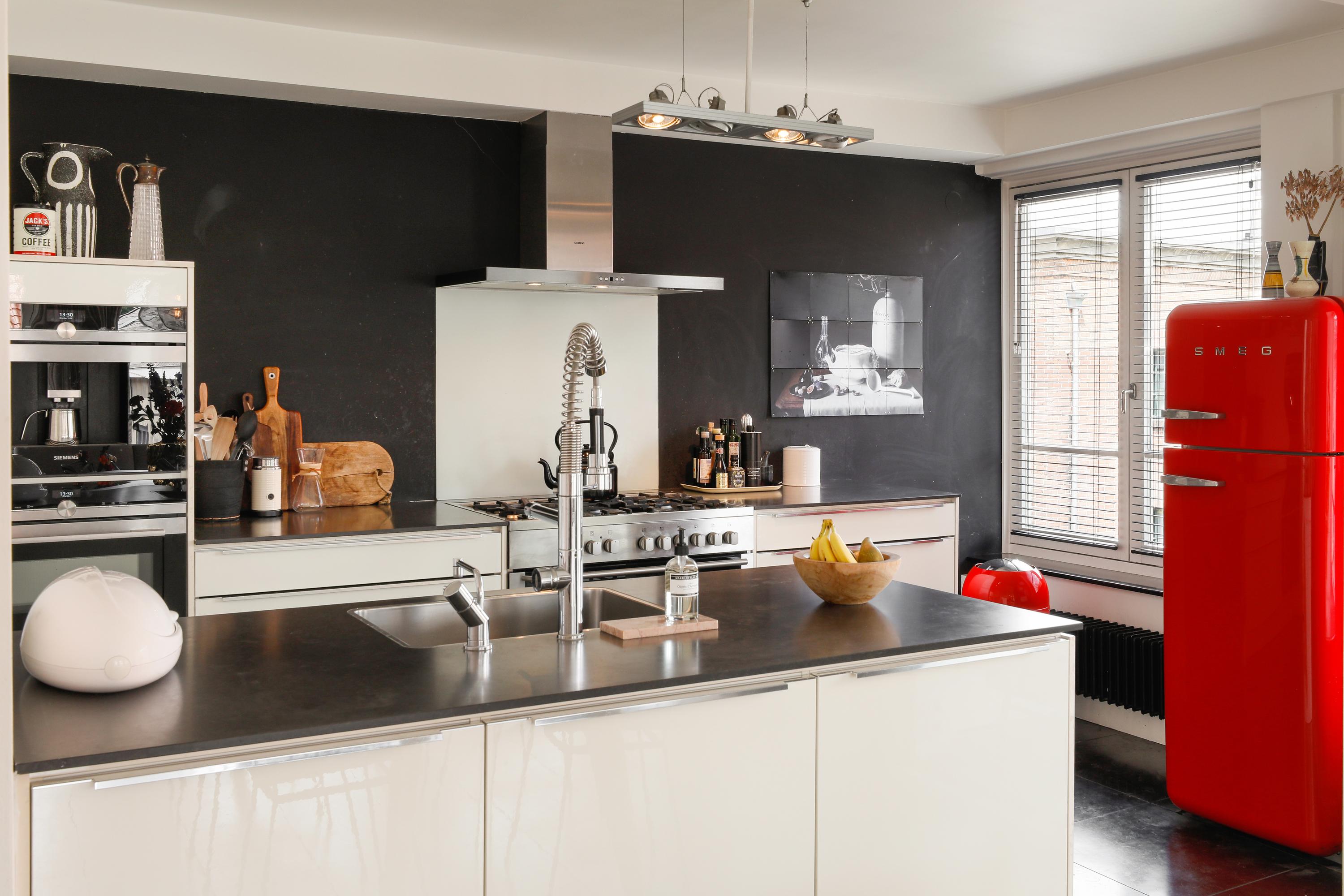 Large apartment in the heart of the city center with five rooms, a private entrance/bicycle storage, and an impressive roof terrace.
