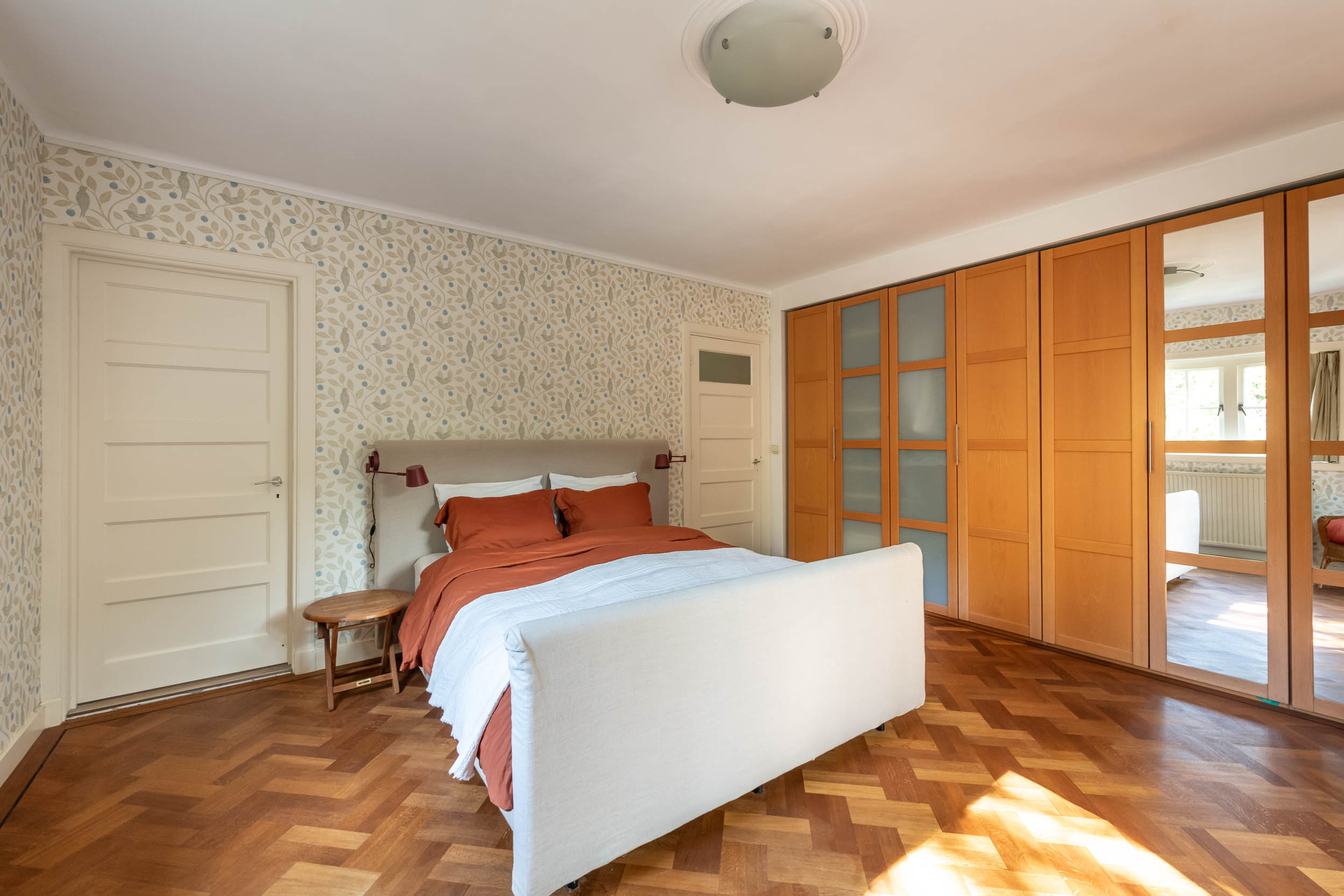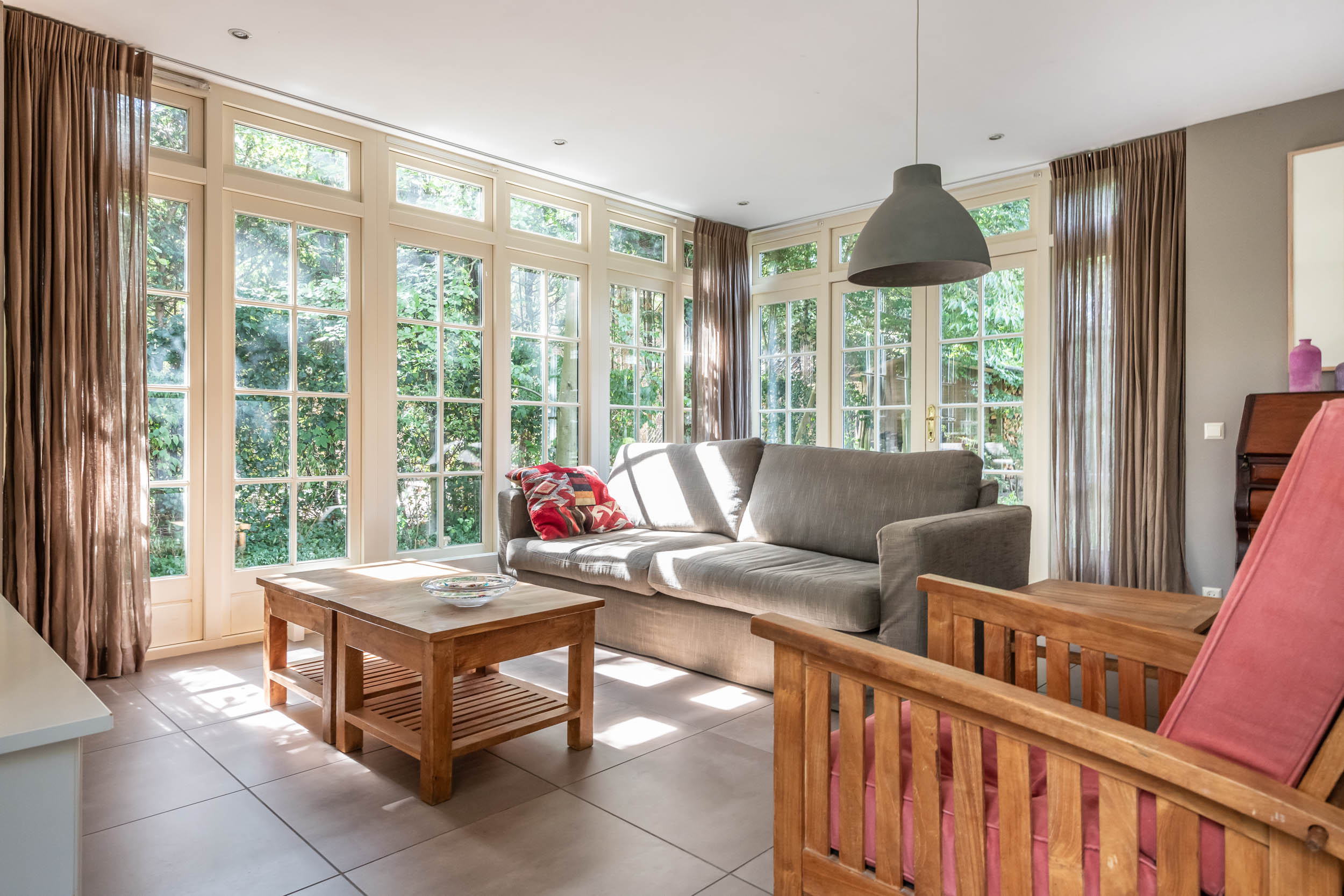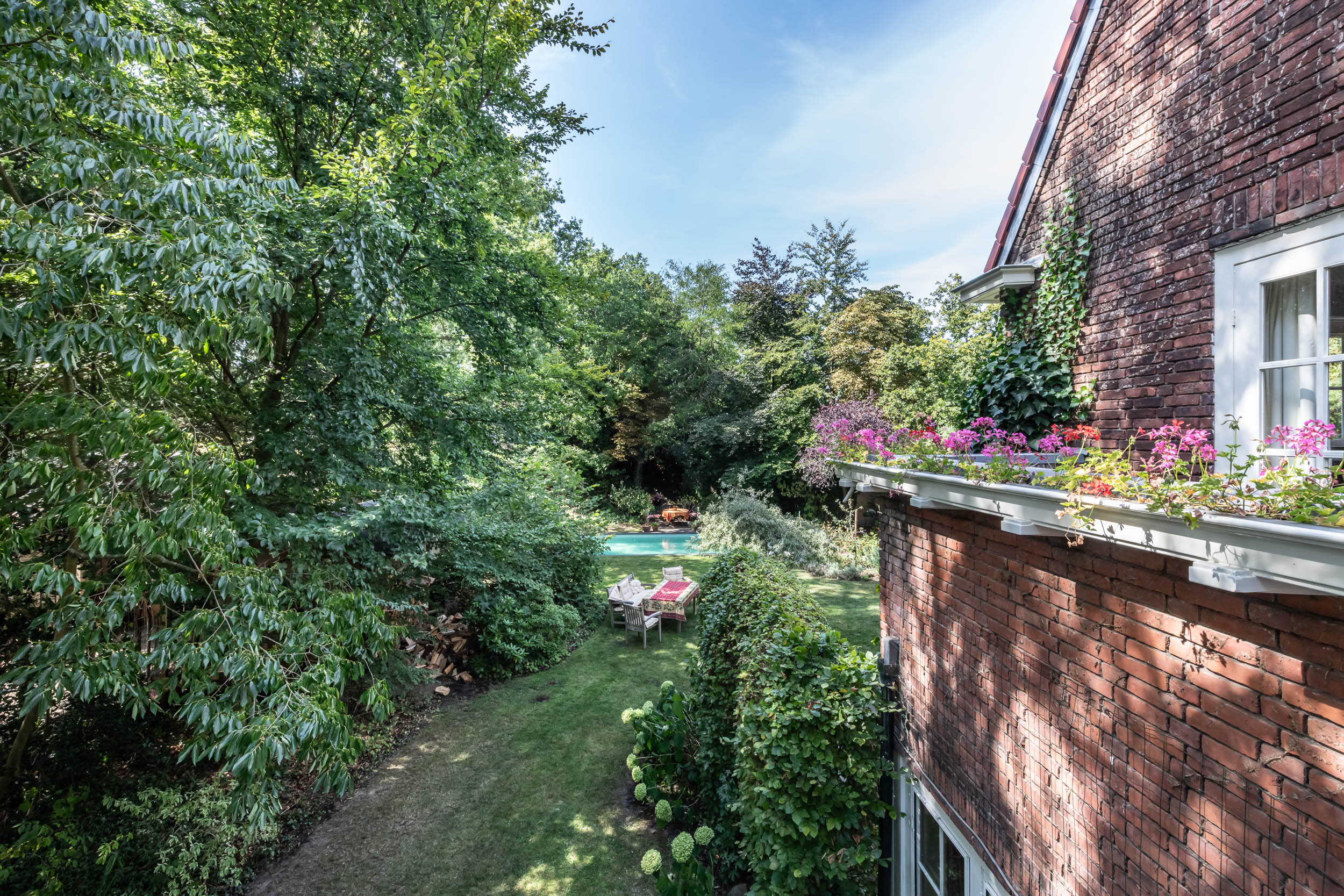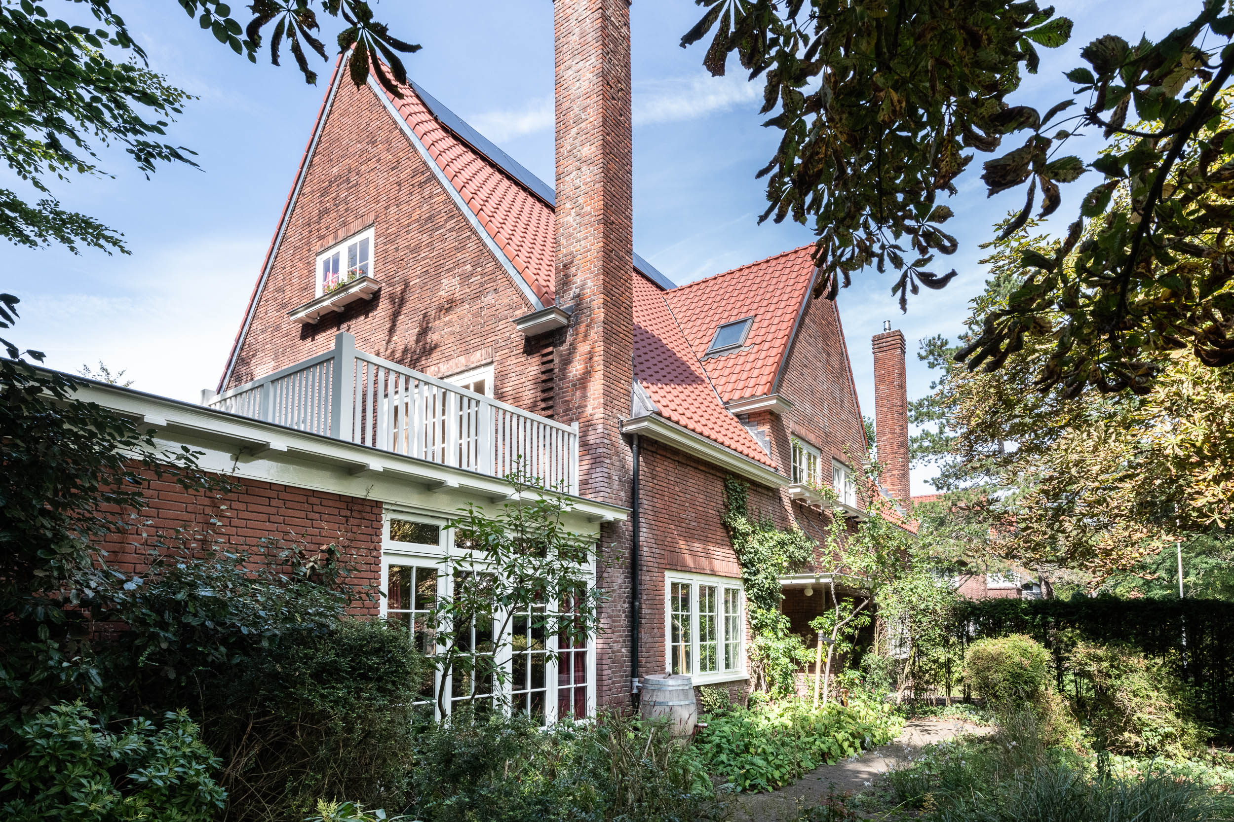 This well-maintained, semi-detached distinctive and uniquely designed villa with swimming pool and garage on a large plot of over 1,000 m² is located on the green and quiet Grenslaan. All living areas are beautifully situated facing the sun (west and south side). A family home par excellence: 6 bedrooms and 2 bathrooms! The extension on the side of the house (which completely matches the style of the main house) has created plenty of space on the ground floor for an extra room, such as a playroom, TV room or study. The beautifully landscaped garden has several terraces, is in a sunny location facing the west and offers complete privacy! At the rear of the garden, where the plot borders Wikkelaan, there is parking space for two cars on private land with two private charging stations.