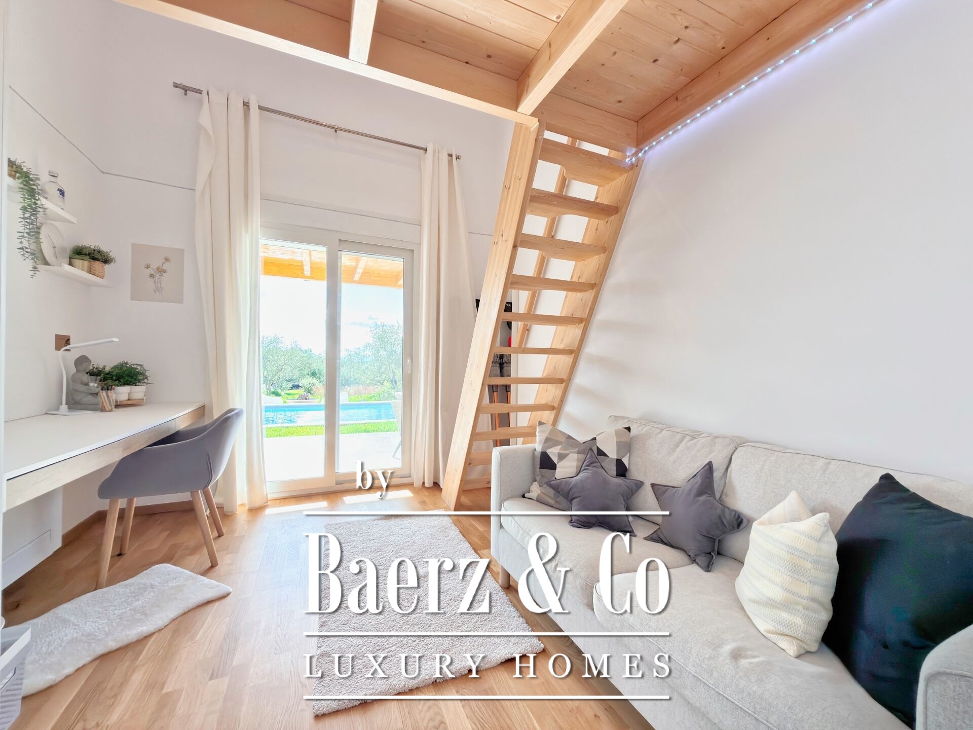 Life here is anchored by the garden, where fruit and olive trees, seasonal flowers, and thoughtfully placed stone corners create a rare sanctuary. A brasero, barbecue with traditional wood oven, and fully equipped outdoor bathroom offer invitation for gatherings. The property also provides parking for four vehicles and a 15 m² storage container, blending practicality with considered design.