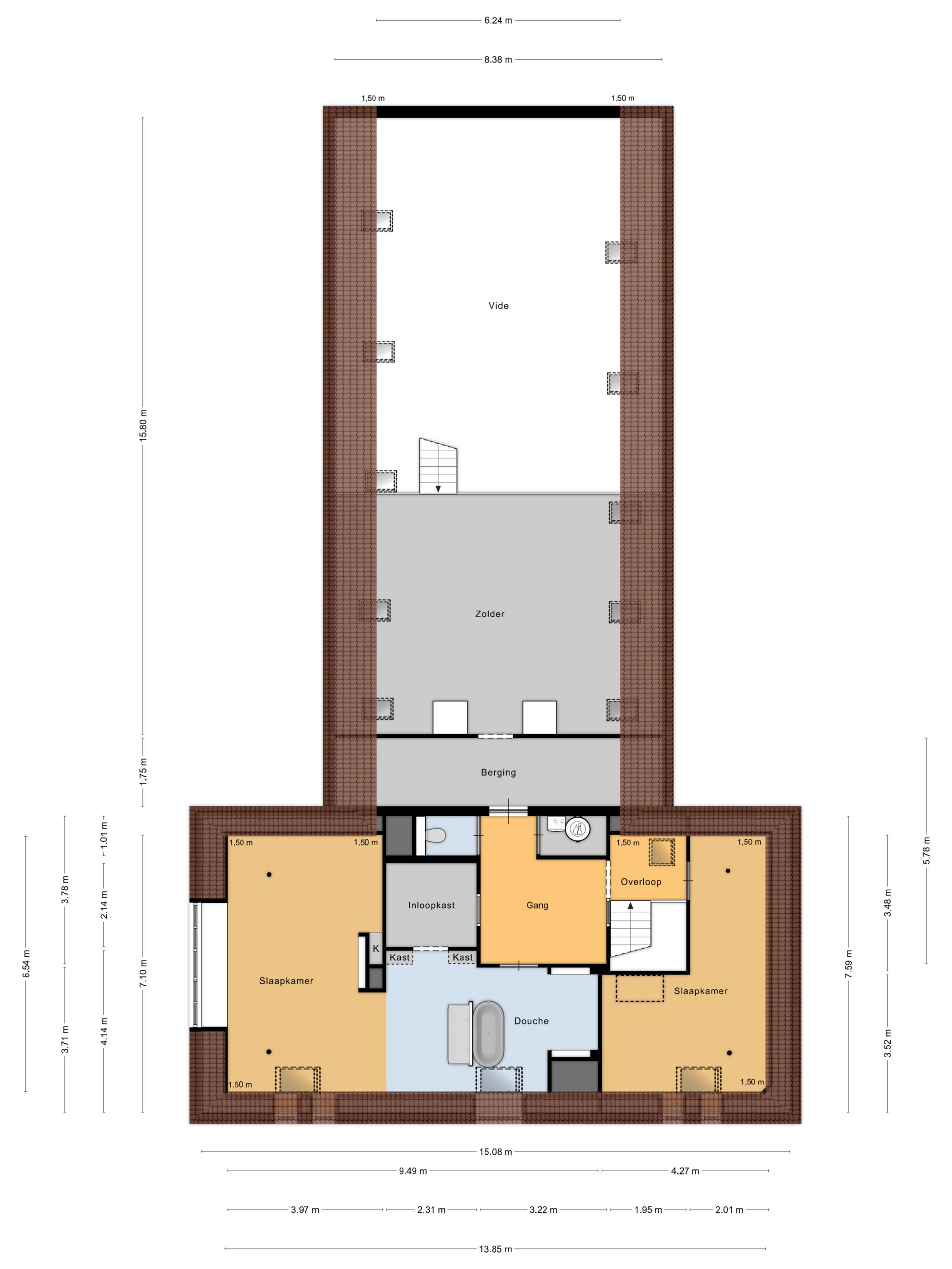 This beautiful farmhouse, with a living area of 438 m² and a capacity of over 2,500 m³, forms with the surrounding land of approximately 7.5 ha a frankly imposing ensemble. There is a lot of variety in the picture; an oak forest, a beech forest, grassland, flower meadow, a fish ladder, a dream of an ornamental garden... And, rumor has it that an amorous pair of beavers even built a love nest by the water. Romance at its finest! At the heart is the beautiful farmhouse, overlooking the Berkel River.