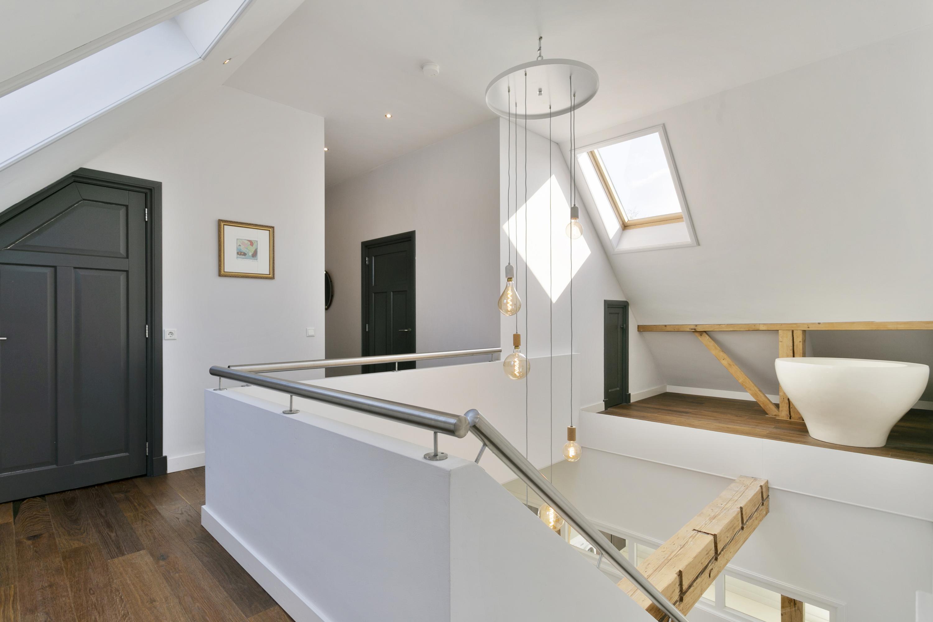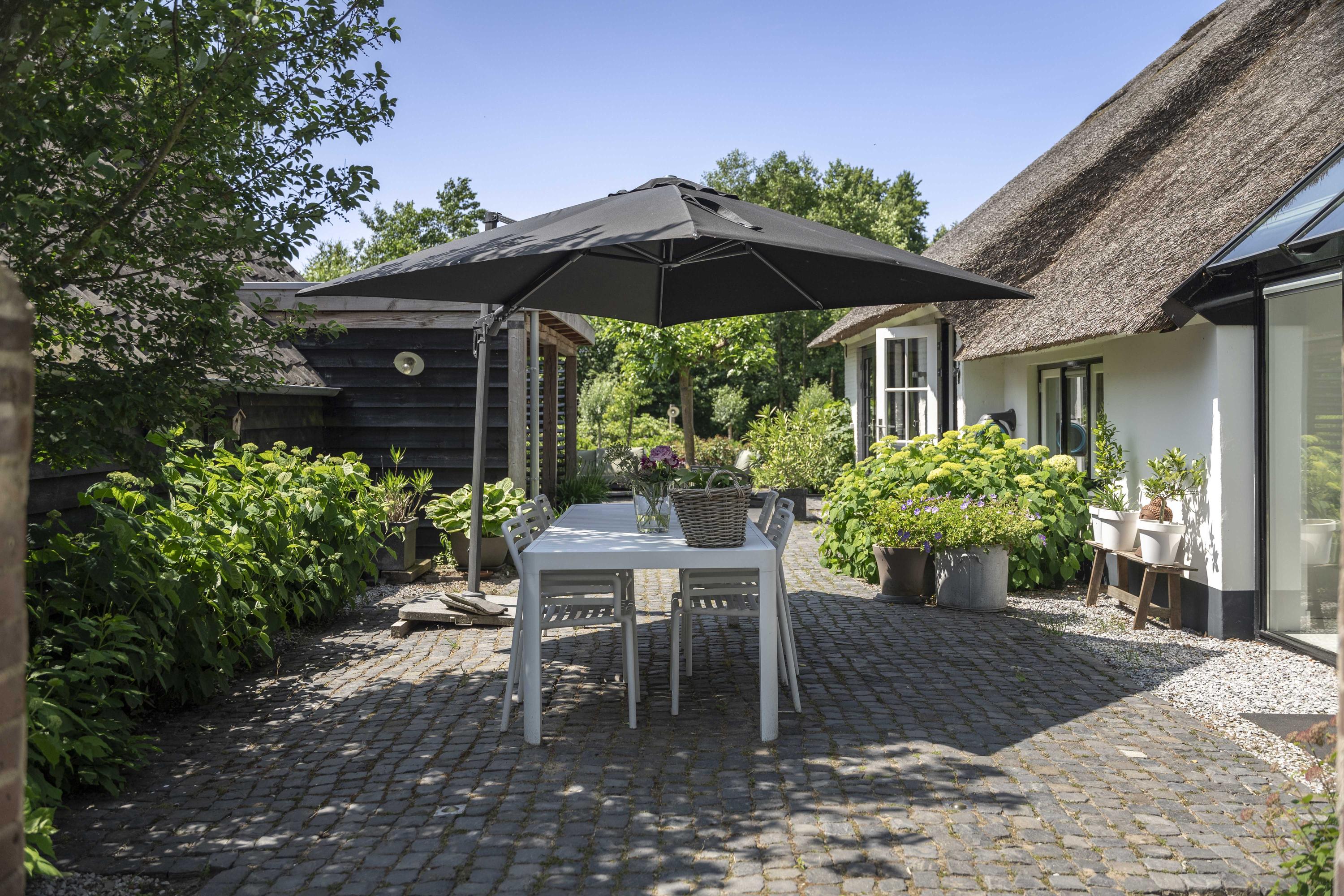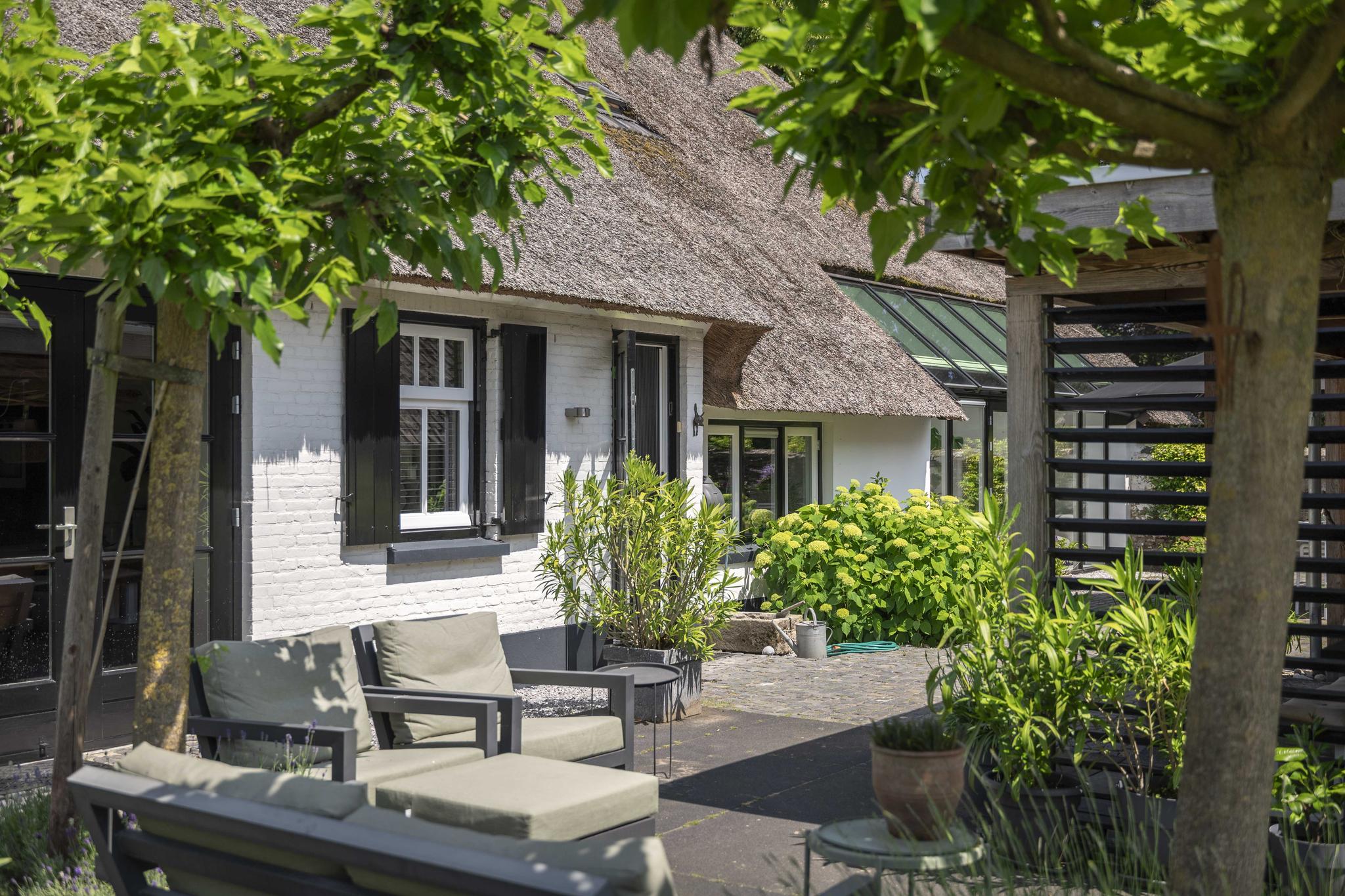 The white facades and the large thatched roof are the first things one sees when driving in from the Laren side. A classic beauty it is, number 84, located just about at the head of the dike. The gate opens automatically and under the tires the gravel path crunches as you drive up the generous driveway here. A place that captures the imagination, that inspires. This is reflected in the phenomenal interior, because inside the home surprises with contemporary and innovative design.