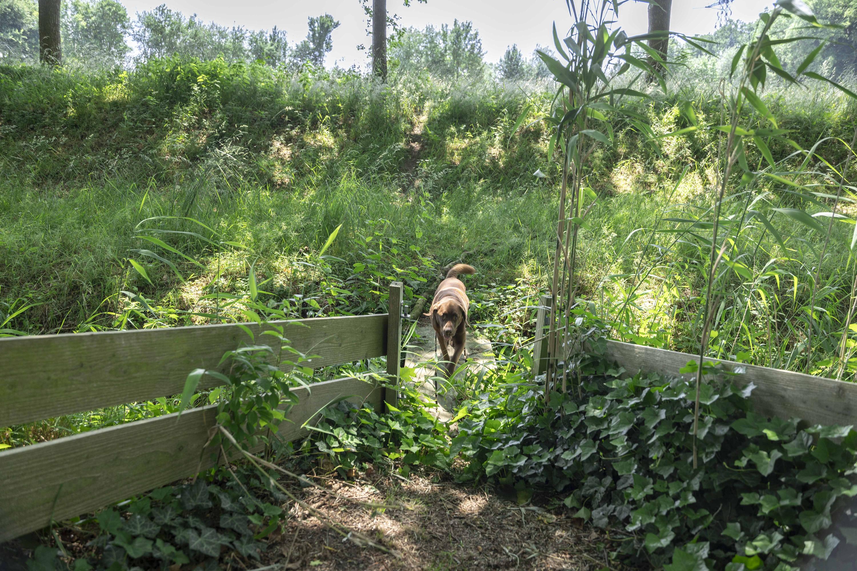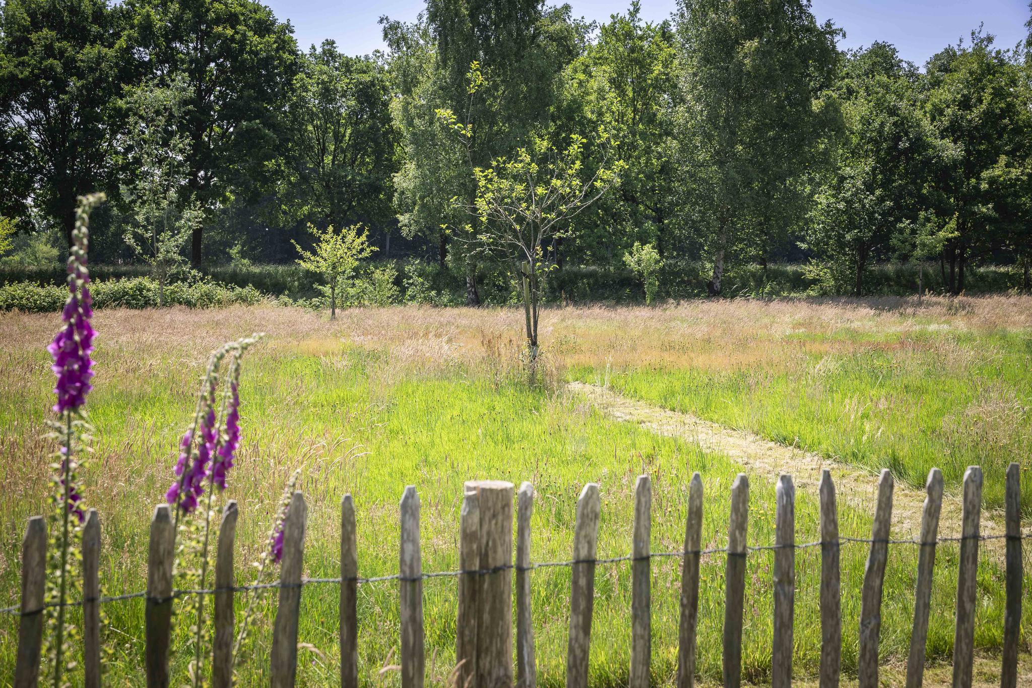 The meadow between the Twente Canal and the garden is planted with young fruit trees.