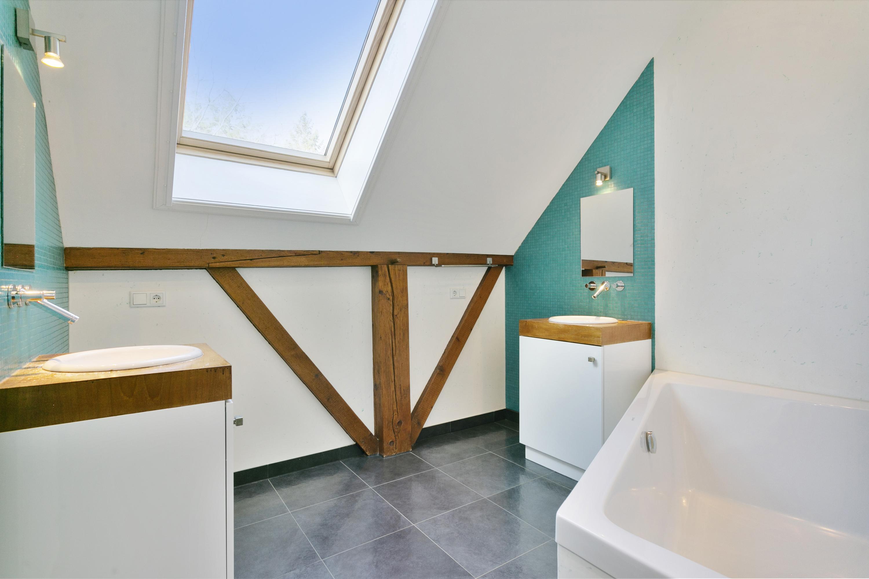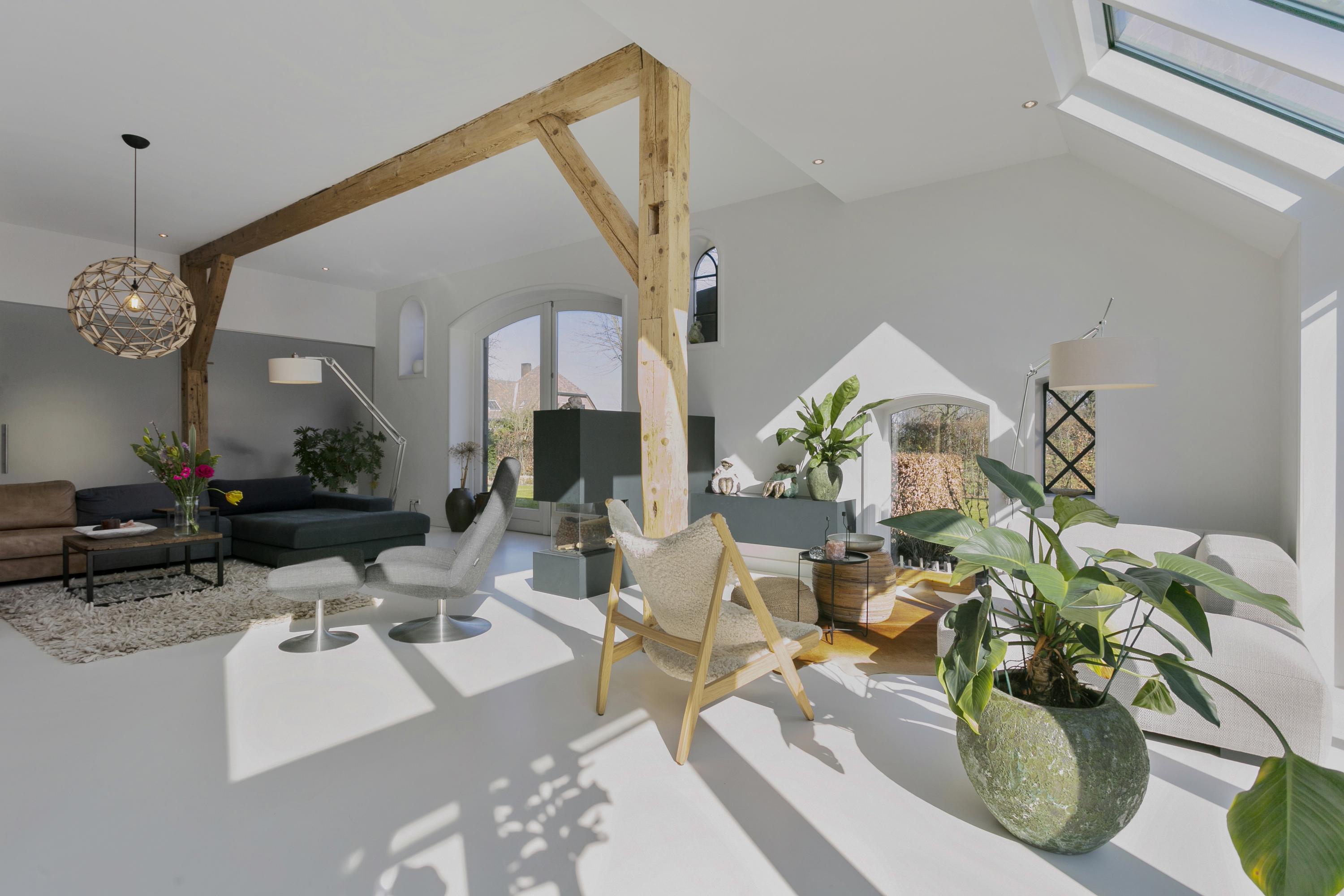 The farmhouse was transformed in 2009 and 2013 by the current residents into a delightful family home: state-of-the-art design in a picturesque setting. Everything is in balance and through the color palette, the distinct design and the particularly high-quality use of materials, a serene but simultaneously homely ambiance has been created. In terms of sustainability, the house also underwent a major upgrade, so that it now has an energy label C.
