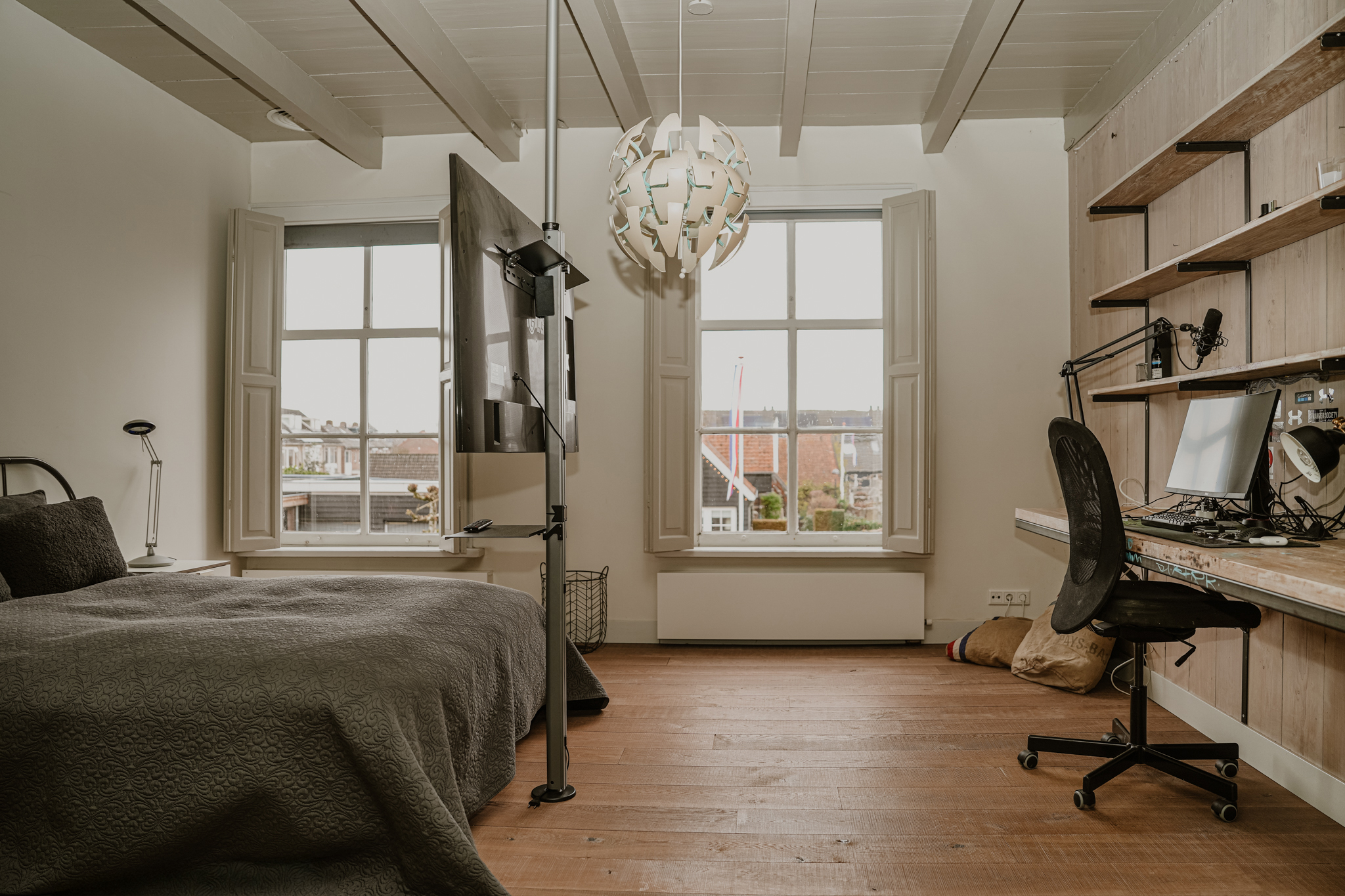 Bovengekomen is een royale overloop met toilet. Aan de oostzijde bevinden twee royale (kinder)slaapkamers, beide met roederamen vanwaar zicht is op de Kruisstraat. Ook hier zijn de ramen voorzien van binnenluiken. Aan de westzijde is de ouderslaapkamer die beschikt over een eigen garderobekamer en riante badkamer.