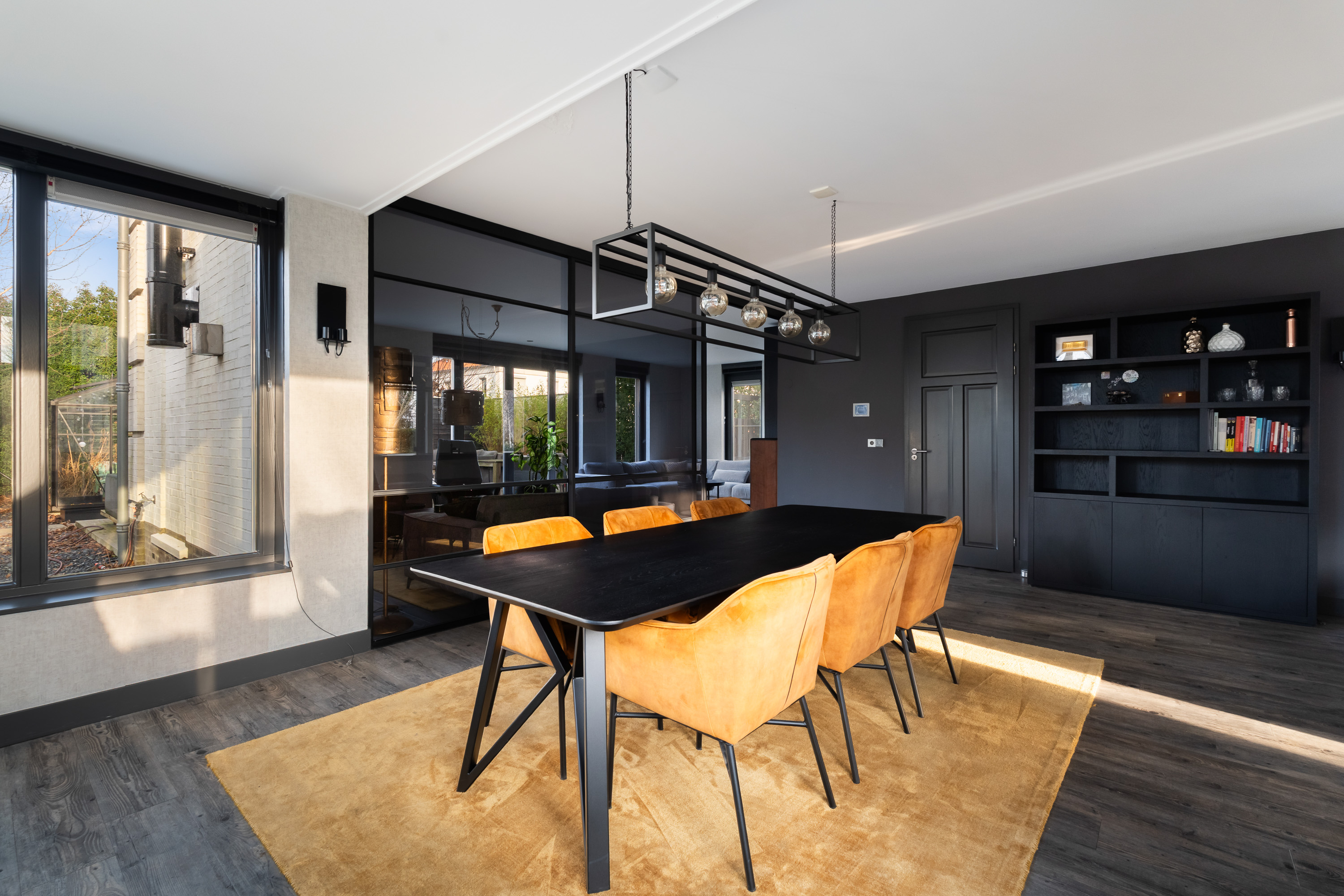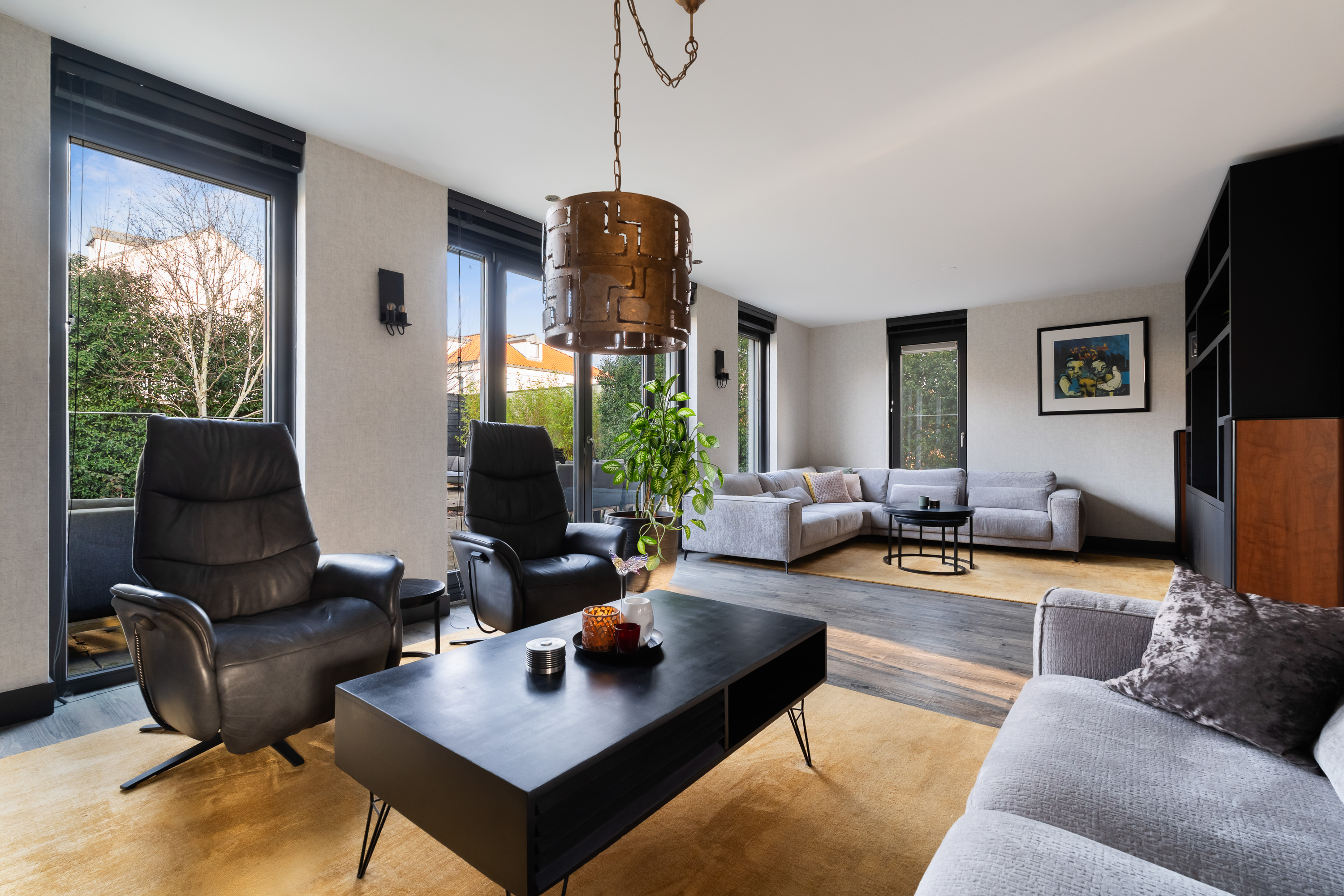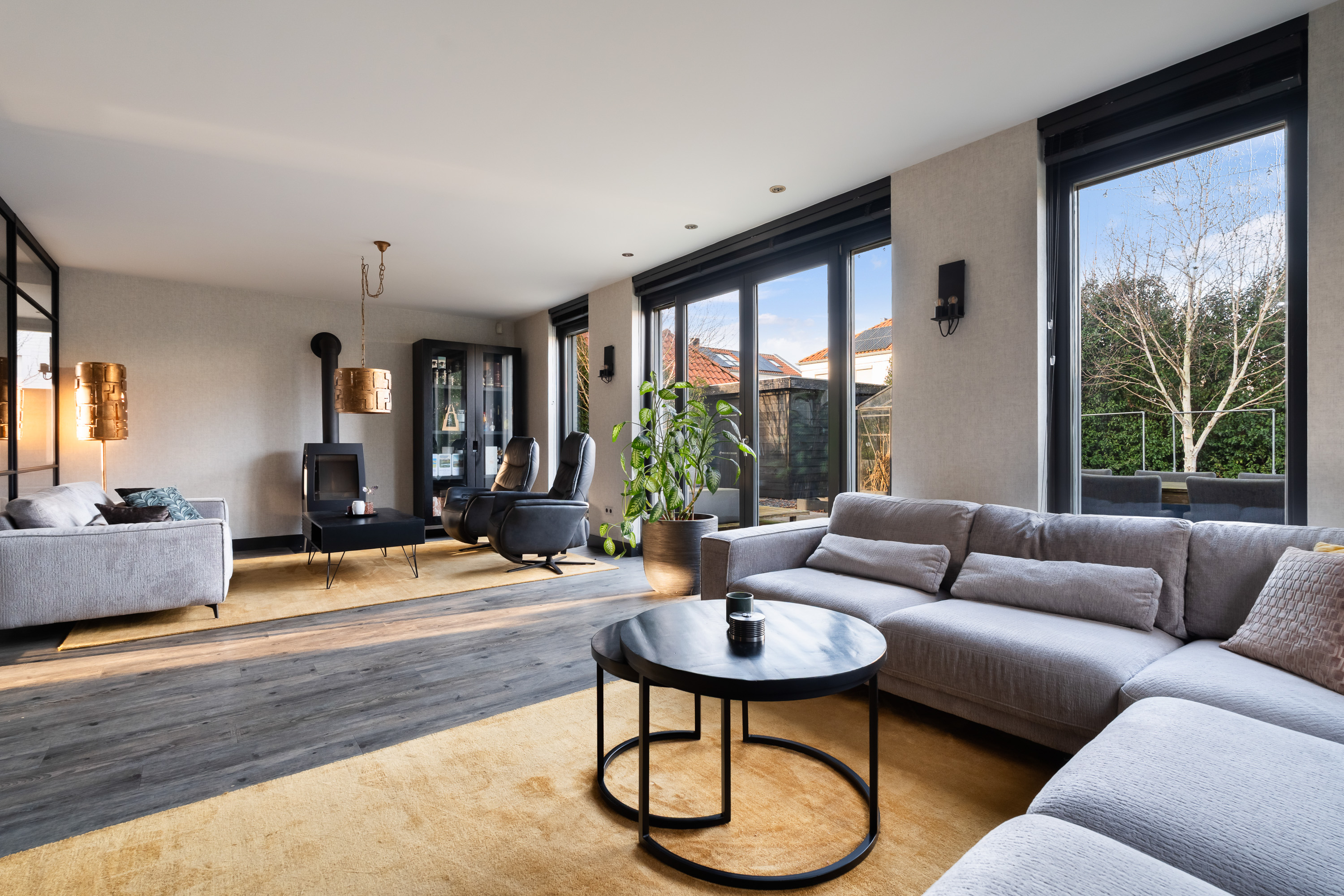 The generous driveway leads you to the entrance of this detached villa. Upon entering the hall, you immediately experience the sense of space, natural light and high-quality finish that characterise the property. The staircase to the first floor is also located here. From the hall, you have access to the various living areas on the ground floor.