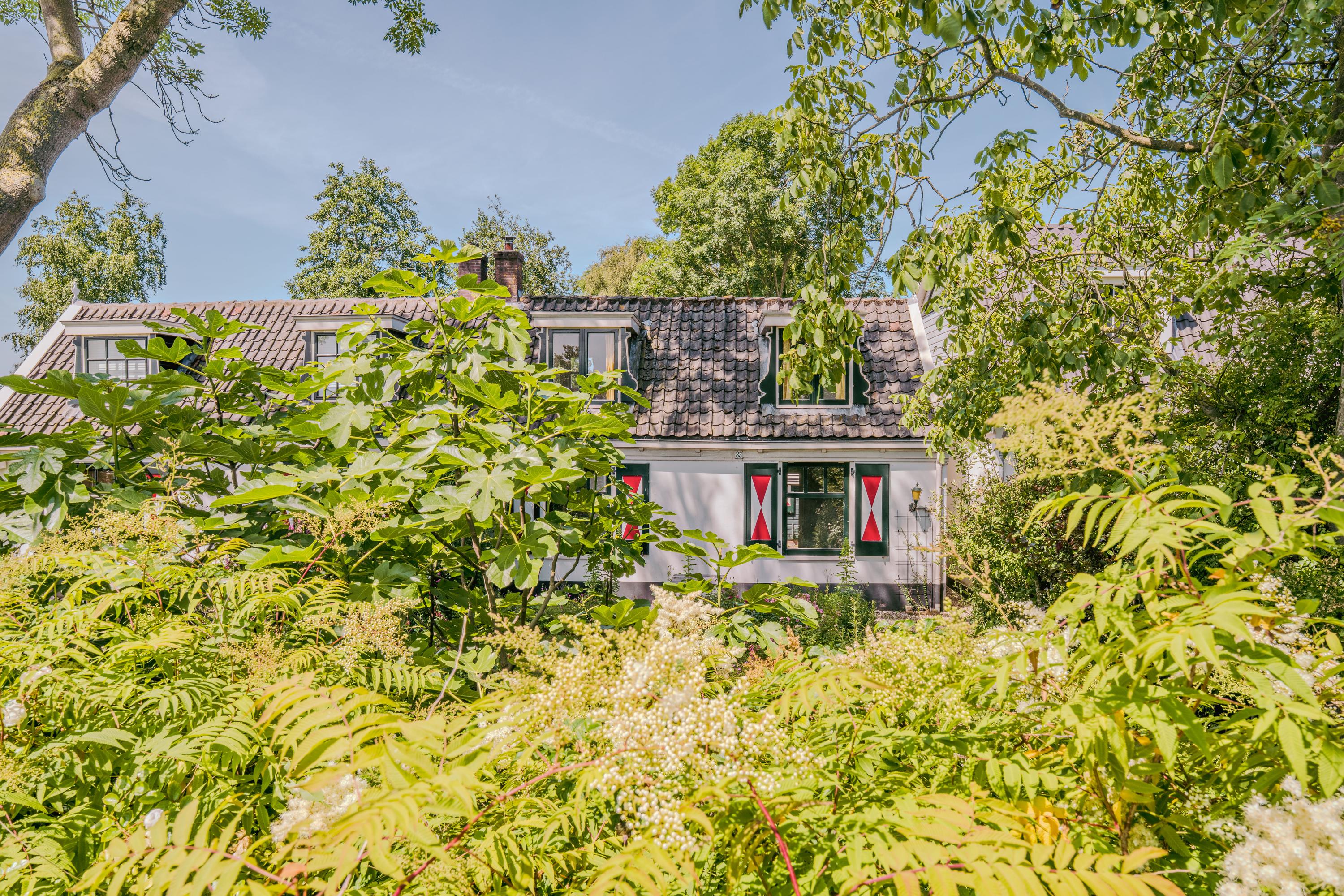 This authentic property offers a unique opportunity for those seeking a characteristic home in a special location, ready to be renovated entirely to one’s own taste. Situated along the Amsteldijk, the house lies slightly below road level and is partly hidden among the greenery. From the dike, a staircase descends to the front garden – a green space offering peace and privacy. On the right-hand side of the house, a narrow path runs along the façade to the front door, subtly set into the exterior wall.