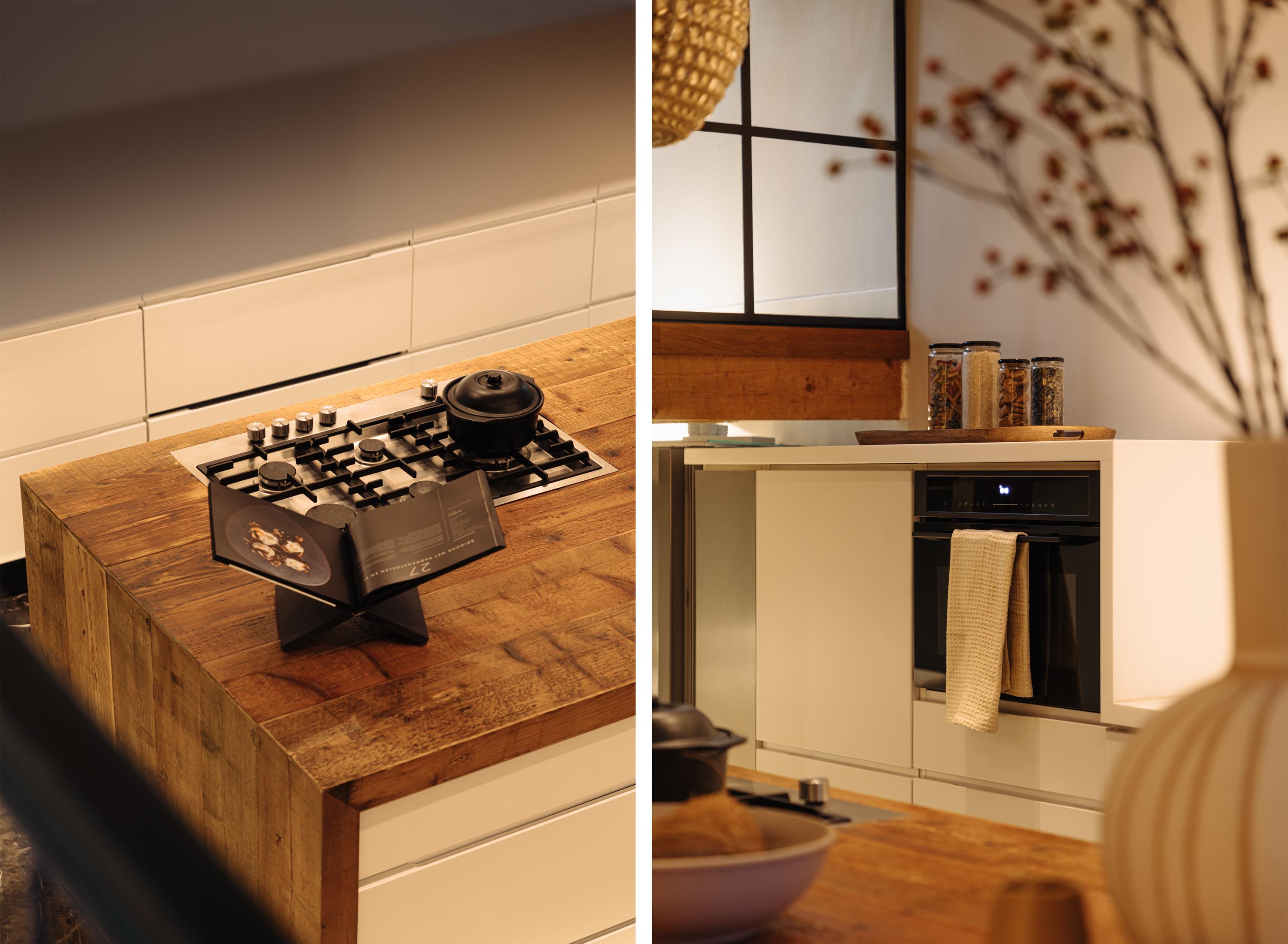 A staircase from the bel-étage leads to the souterrain. Here you will find the spacious kitchen-diner with a high ceiling and access to the patio. The kitchen is equipped with a large cooking island with space for bar stools and fitted with all desired appliances: dishwasher, refrigerator, freezer, wine climate cabinet, oven and a four-burner gas hob.