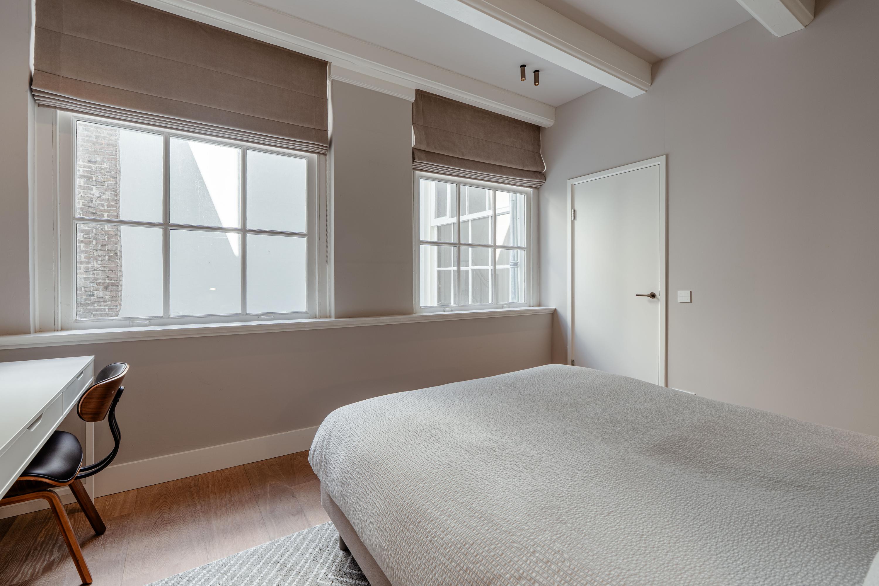 Het achterhuis, dat tevens bereikbaar is middels een tweede eigen voordeur in het gemeenschappelijke trappenhuis, biedt plaats aan twee slaapkamers. Eén van deze kamers ademt historie dankzij prachtige authentieke details zoals houten accenten en glas-in-loodramen, terwijl de andere slaapkamer juist een moderne uitstraling heeft en beschikt over een inbouwkast en bureau en een luxe badkamer en suite met inloopdouche, wastafelmeubel en toilet. Tevens beschikt de woning ook nog over 2 externe bergingen.