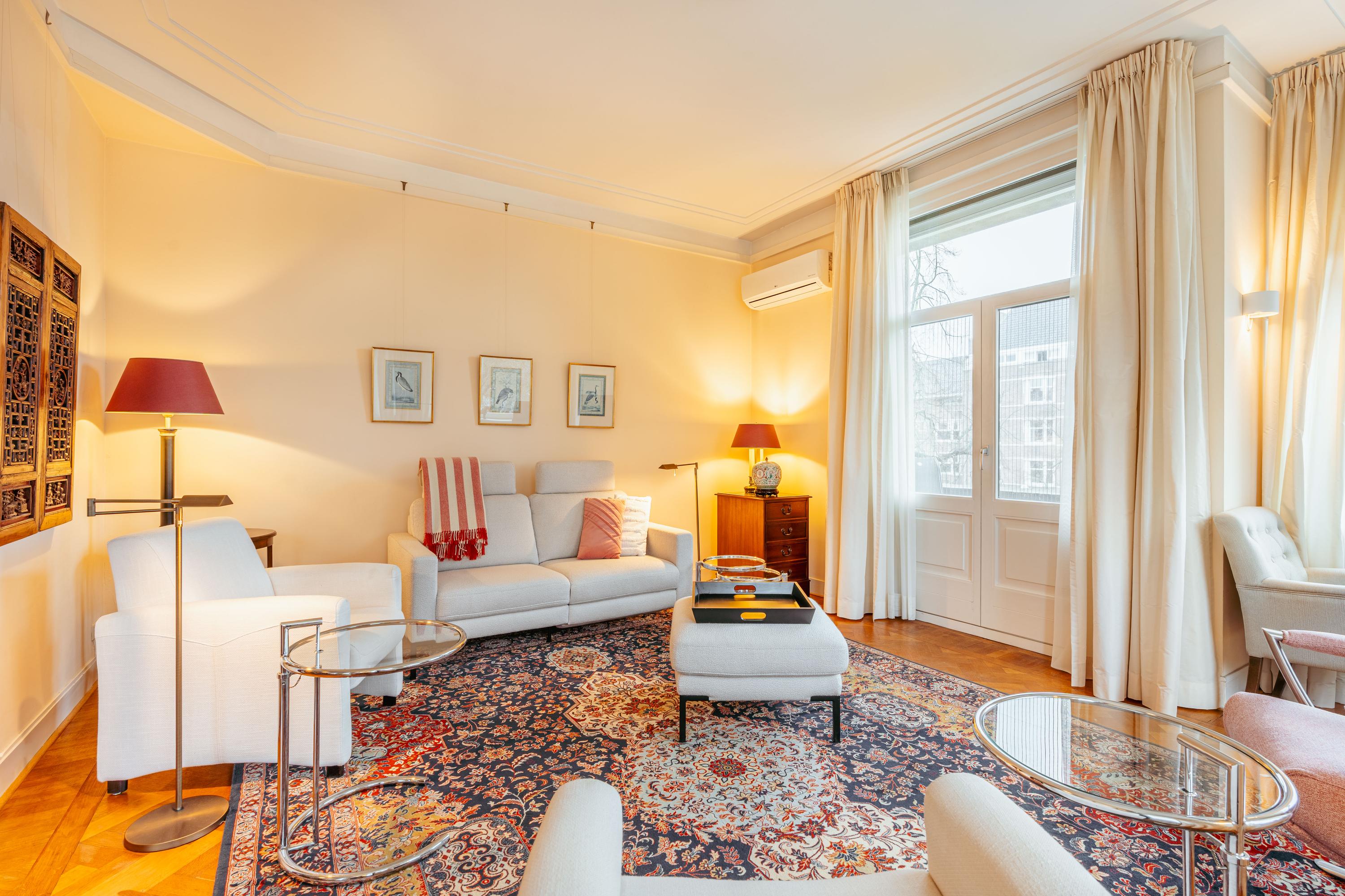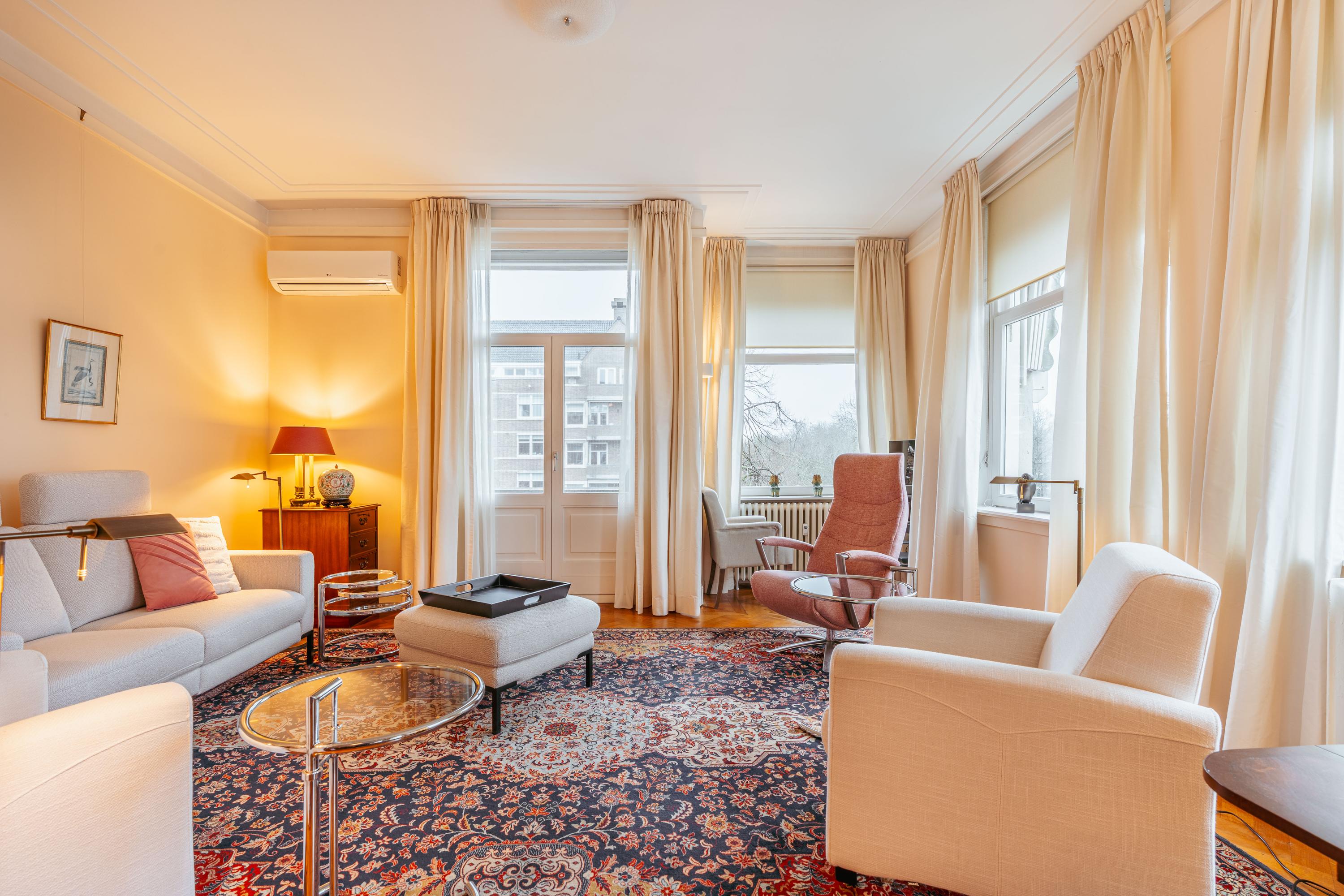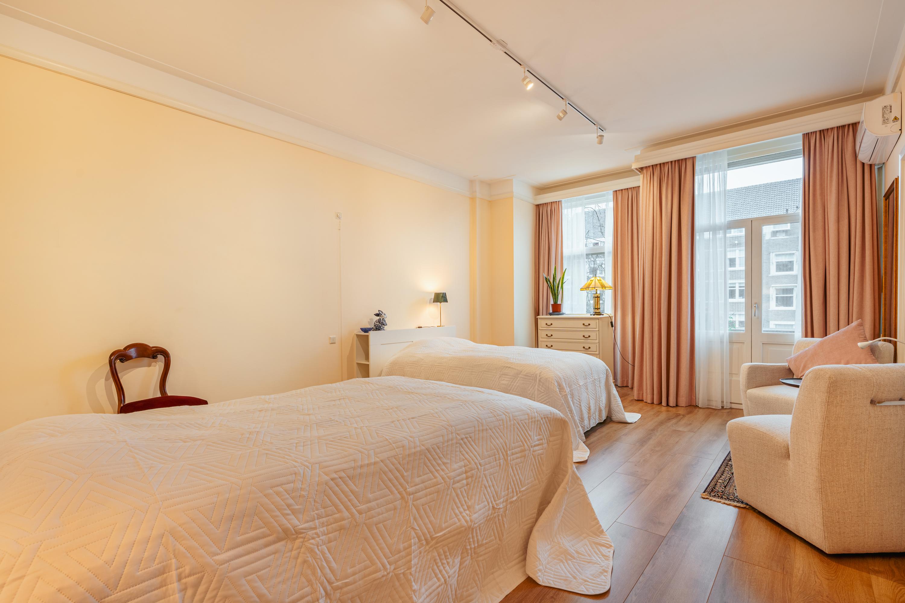 Set on a beautiful waterfront location in the popular Stadion and Beethoven neighbourhoods, we are pleased to offer this well-laid-out corner apartment of approximately 120 m². The property features a bright living and dining room, two bedrooms, a balcony, elevator access and a spacious external storage unit. A comfortable apartment, with all amenities, greenery and excellent public transport connections close at hand.