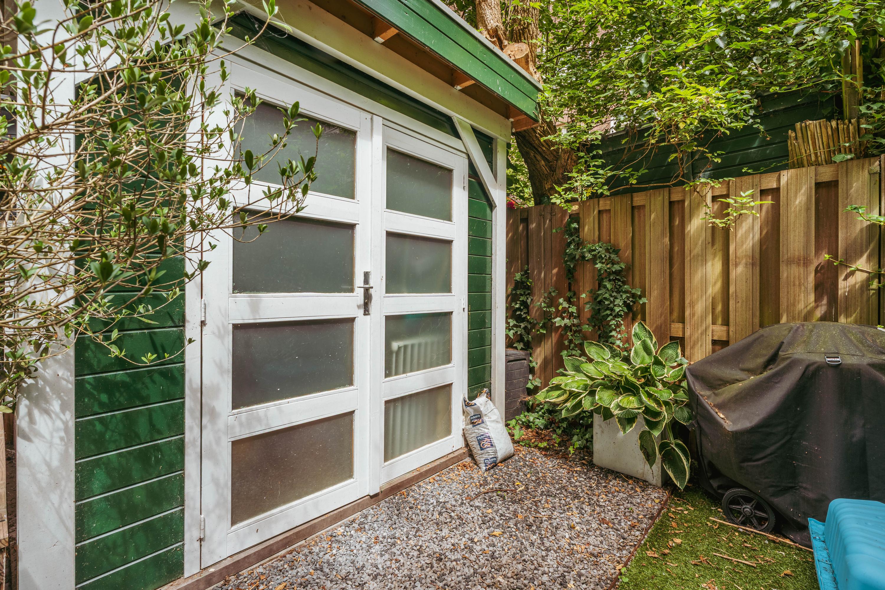 - Lovely east-facing garden (approx. 32 m²) with storage shed