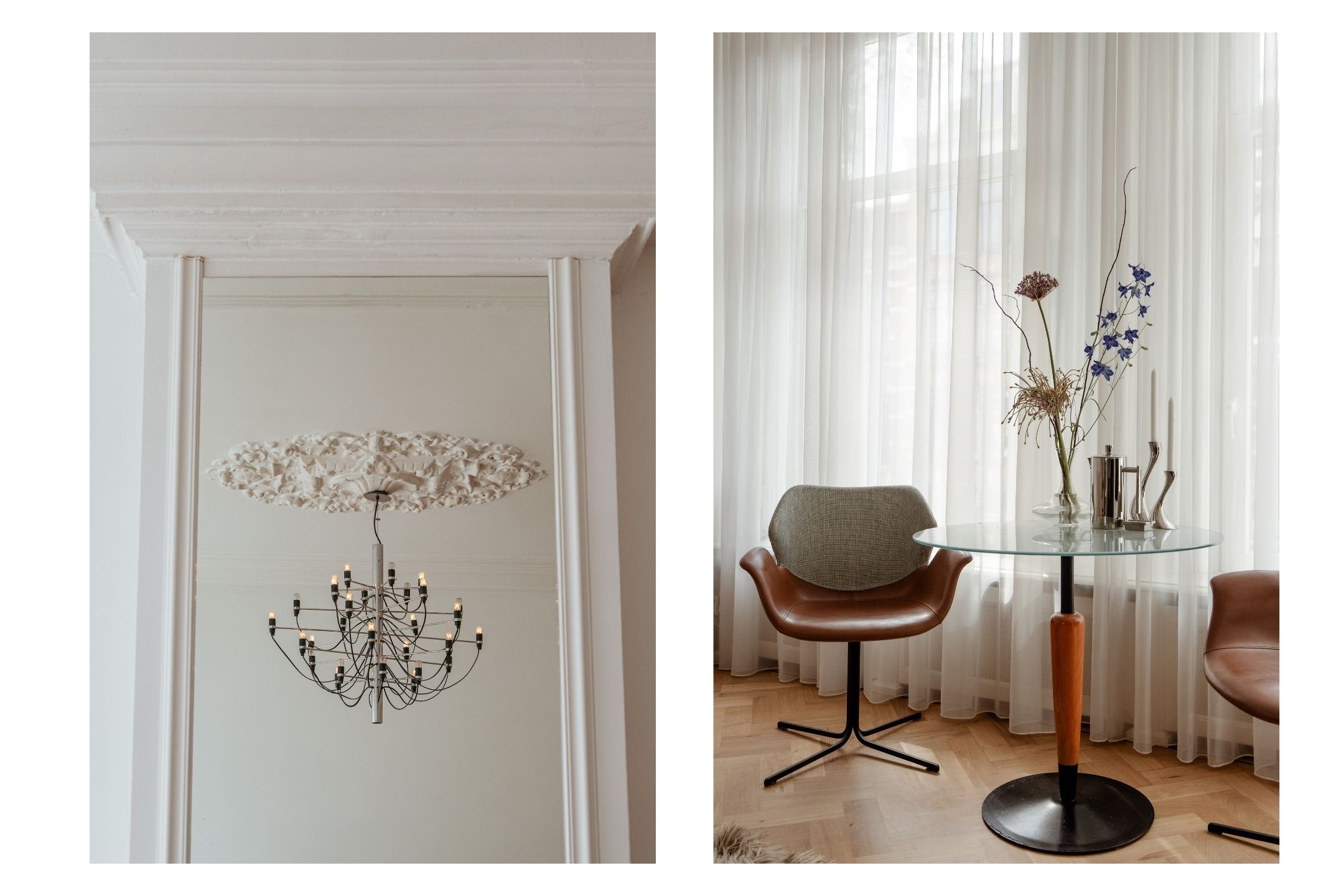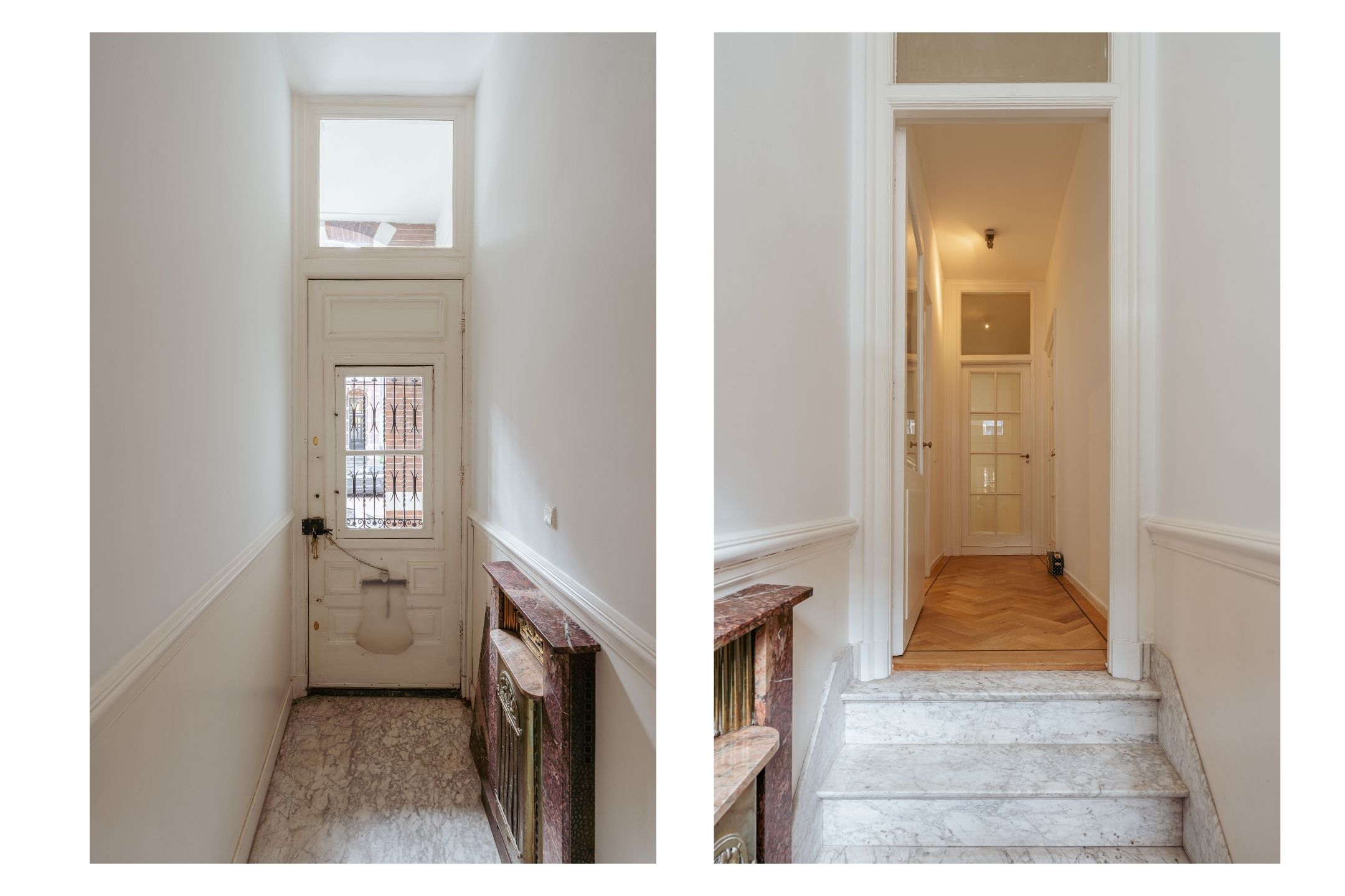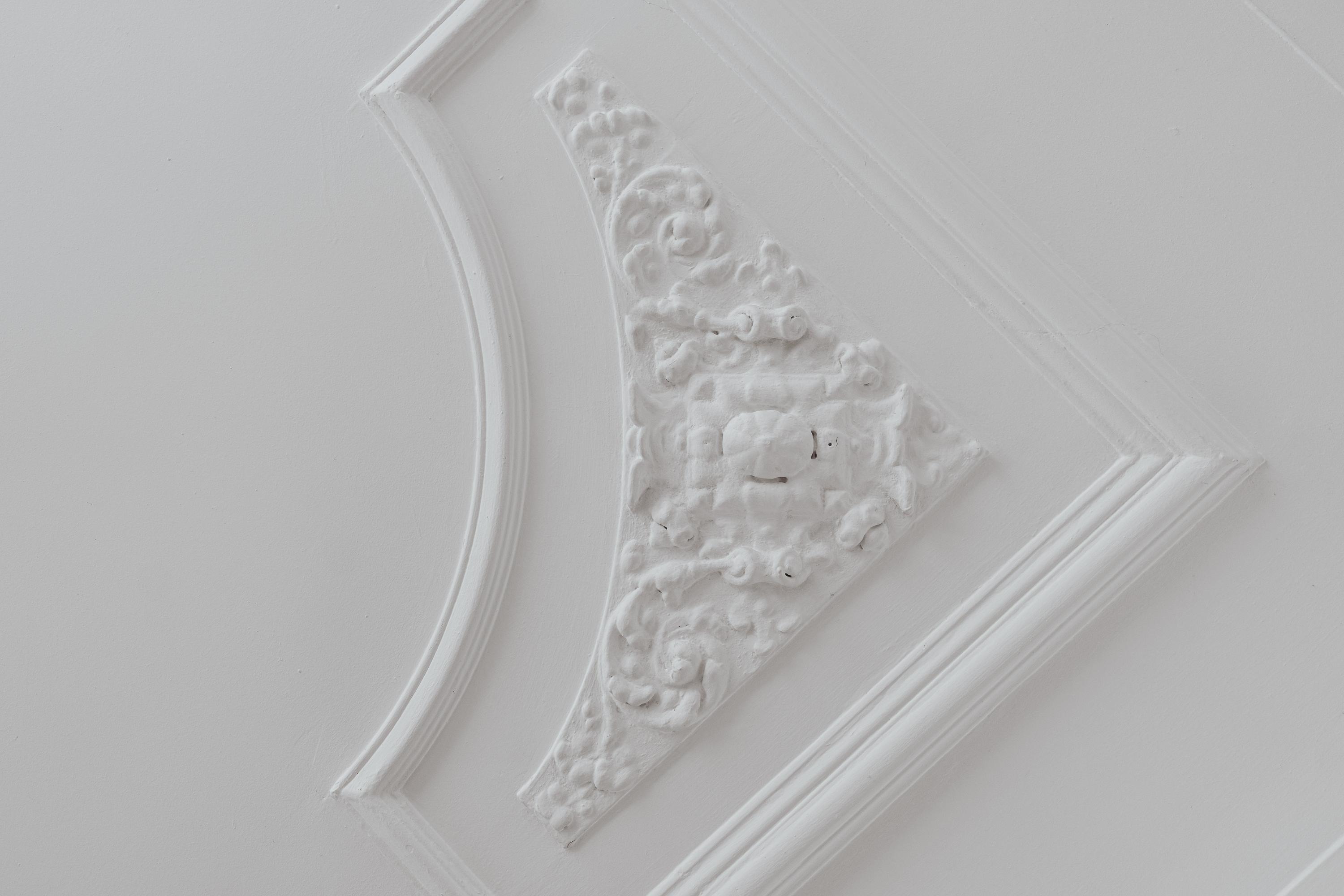 At the front of the property you will find the spacious living room, featuring an attractive (open) fireplace and large windows allowing the space to be filled with natural light. The living room is further characterised by beautiful authentic details, including richly decorated ceiling ornaments and original sliding doors, giving the room an elegant and characterful appearance. Thanks to its generous dimensions, this is an ideal space for a comfortable seating area and generous living space.