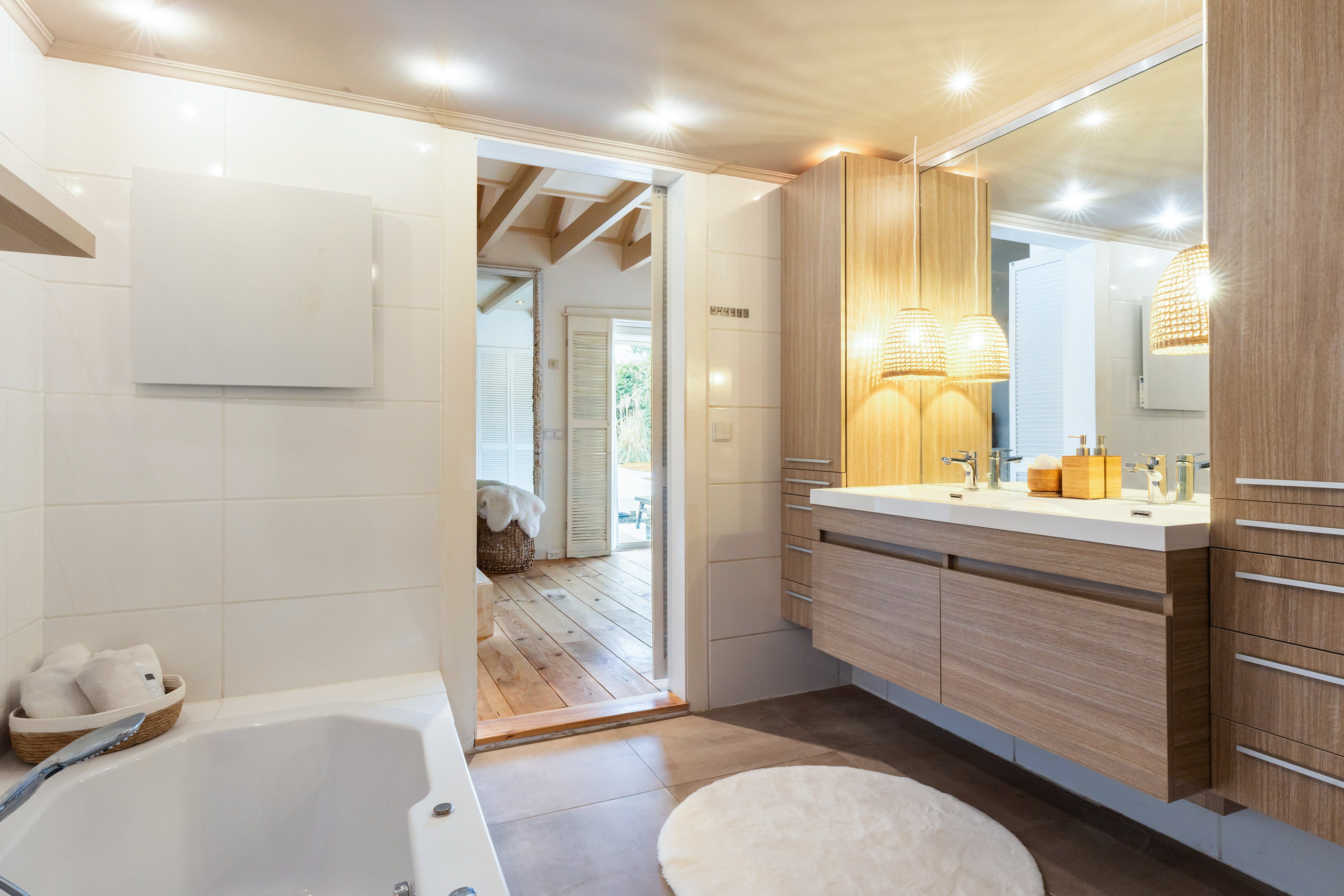 This atmosphere also continues throughout the interior. The bedrooms have been stylishly finished with a hotel-chic look and each bedroom benefits from its own air-conditioning unit, ensuring optimal comfort throughout the year.