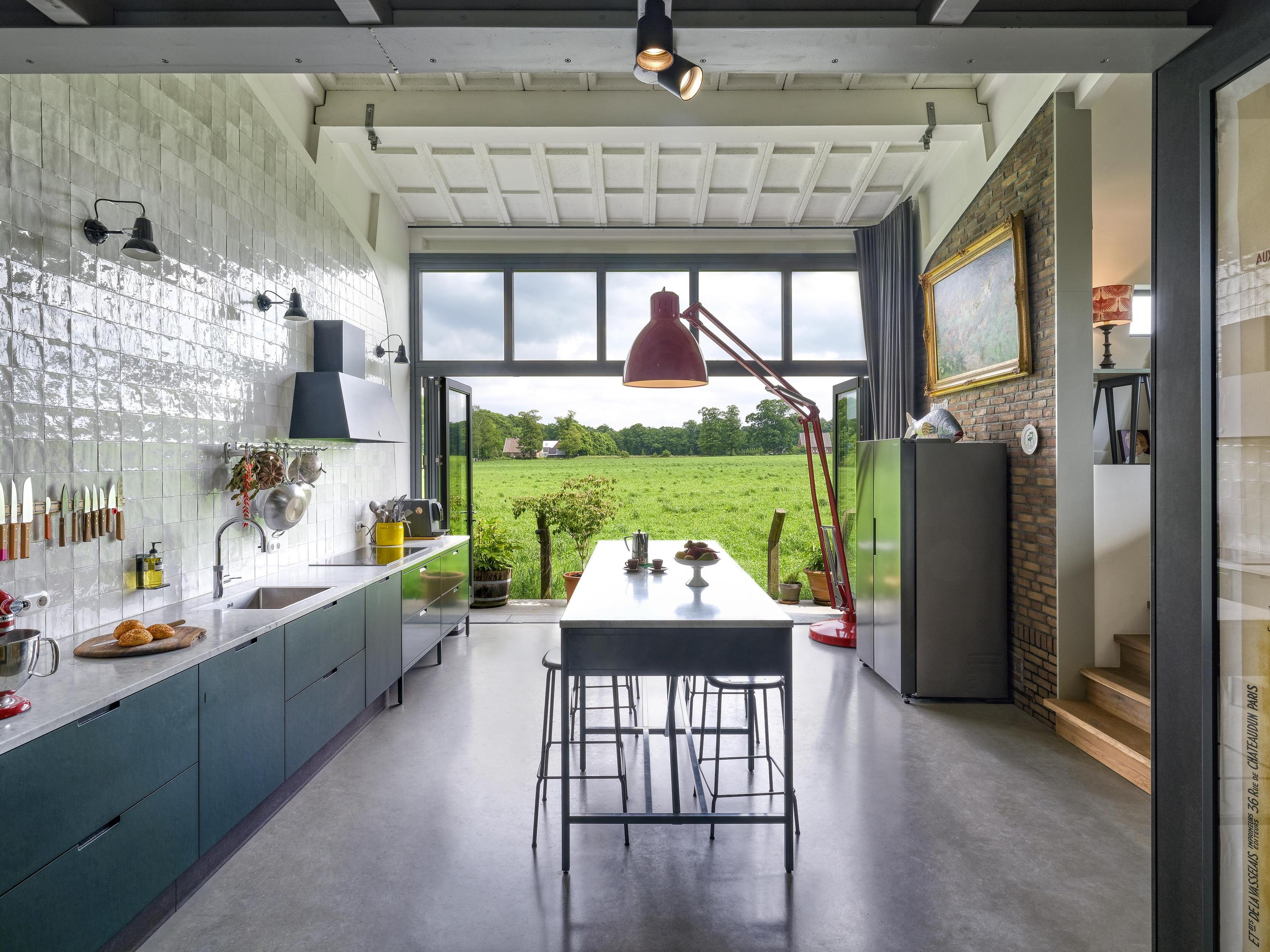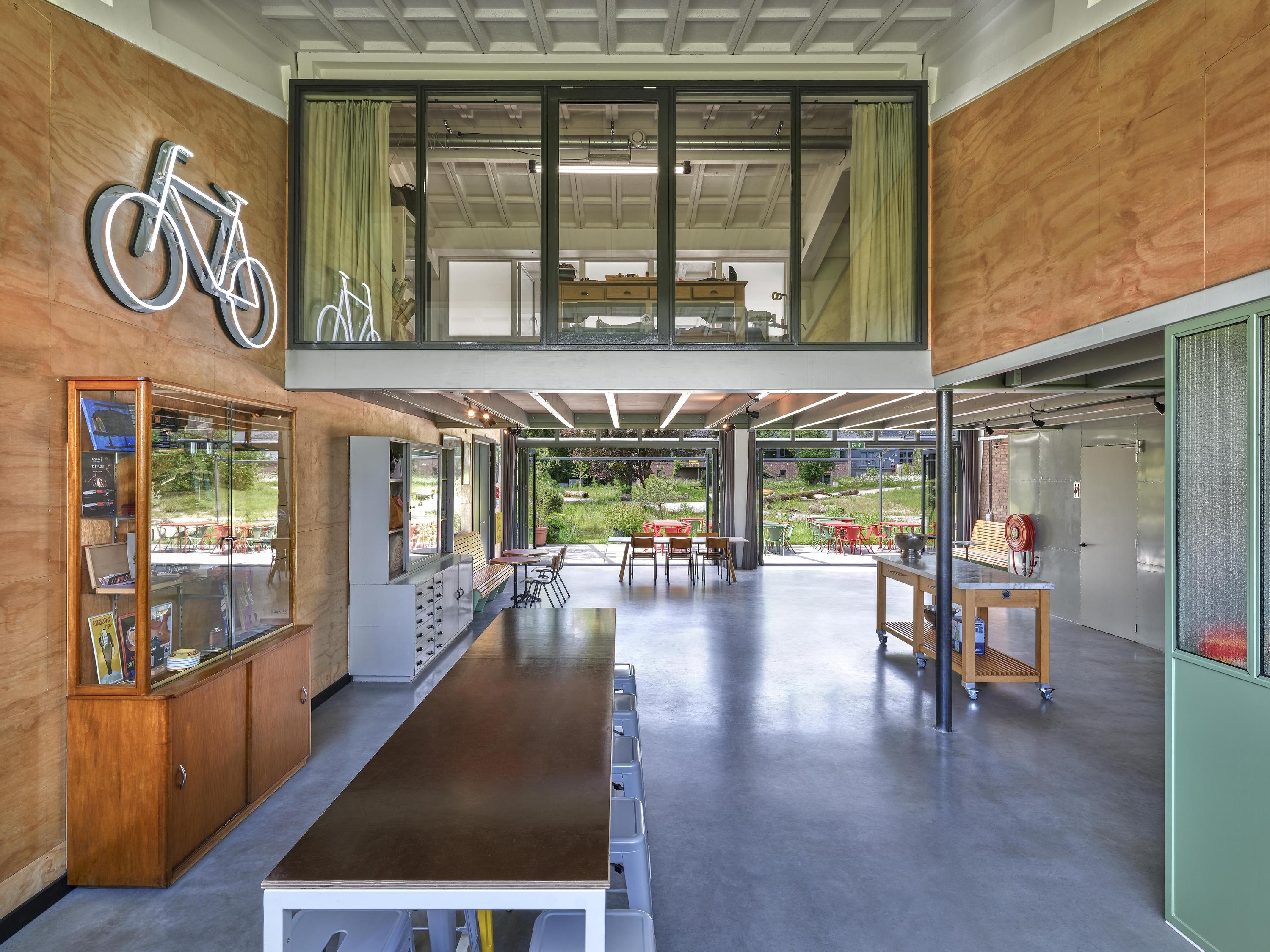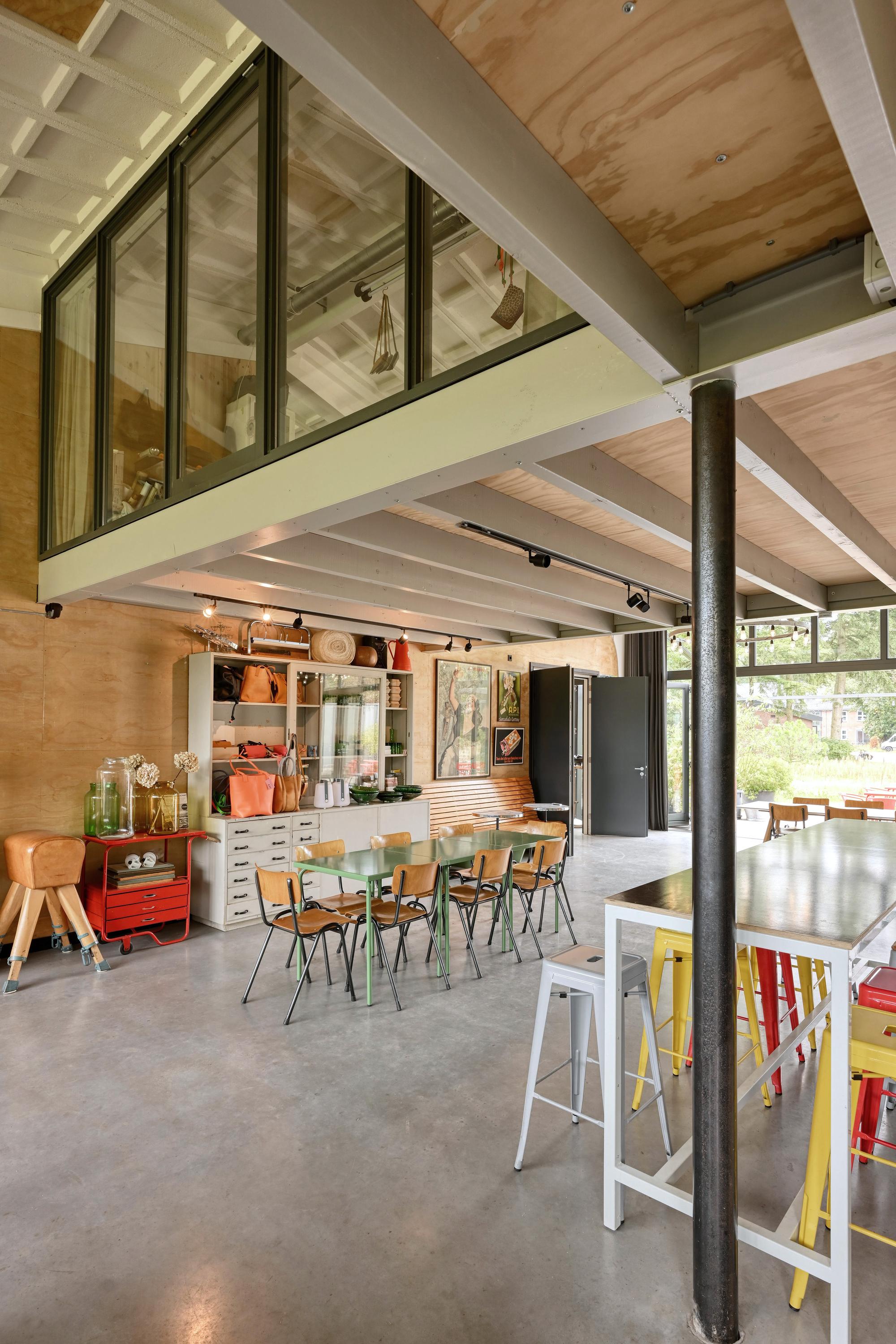 Industrial home with business space Arnhem offers an exceptional opportunity to live and work immersed in nature, only minutes from the vibrant city center. This remarkable property seamlessly fuses a modern living environment with an expansive business space, set against protected woodlands and fields. The original military hangar, now fully renovated in 2021, features a striking contemporary residence with 439 m² of living area on a plot of 774 m², meeting the highest standards of sustainability with energy class A+++.