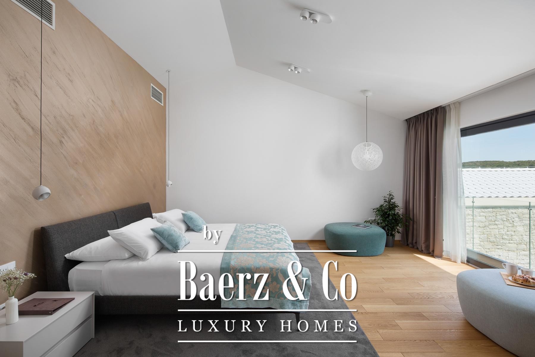 The villa is offered fully furnished, with a landscaped garden and three covered parking spaces, ready for private use or continued premium rental. The adjacent open, buildable land grants potential for a private enclave or expanded luxury hospitality. For discerning investors, this property merges leisure, architectural clarity, and strategic growth in a discreet Croatian setting.