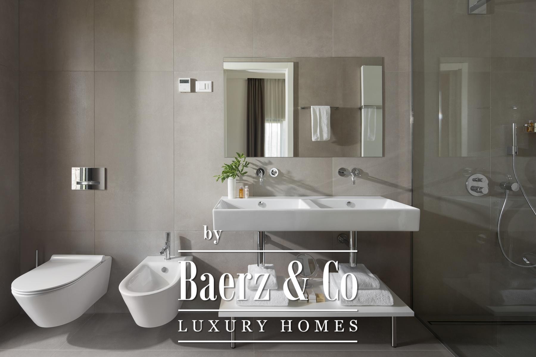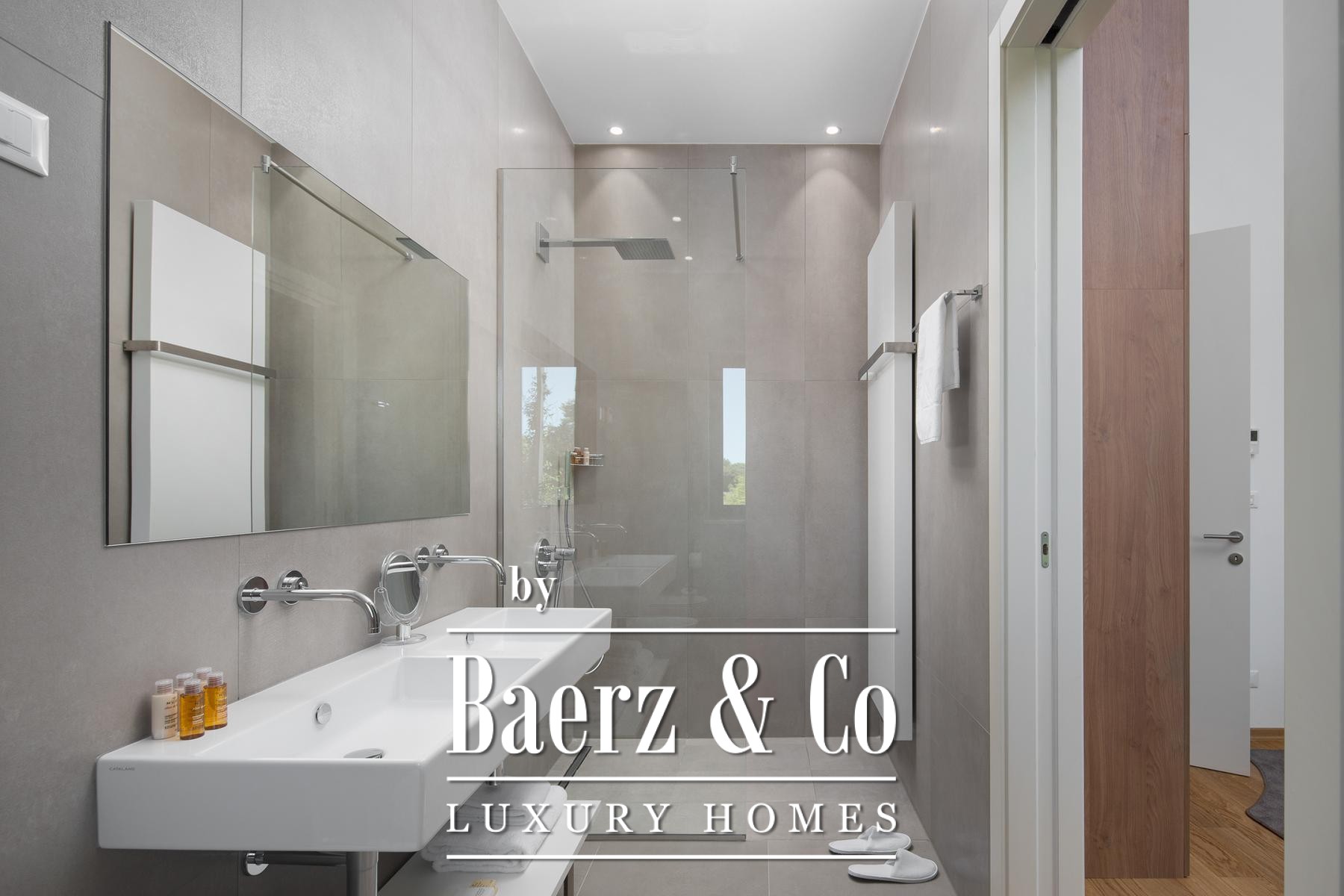 Each of the four bedrooms, ranging from 22 m² to 37 m², is paired with a private bathroom and king-size bed, while three rooms enjoy access to covered terraces. The wellness zone, measuring 61 m², includes an indoor heated pool with hydromassage, Finnish sauna, and panoramic views of Bale. Outdoors, residents benefit from a second pool, summer kitchen, barbecue area, and well-planned leisure spaces for private retreat or entertaining.