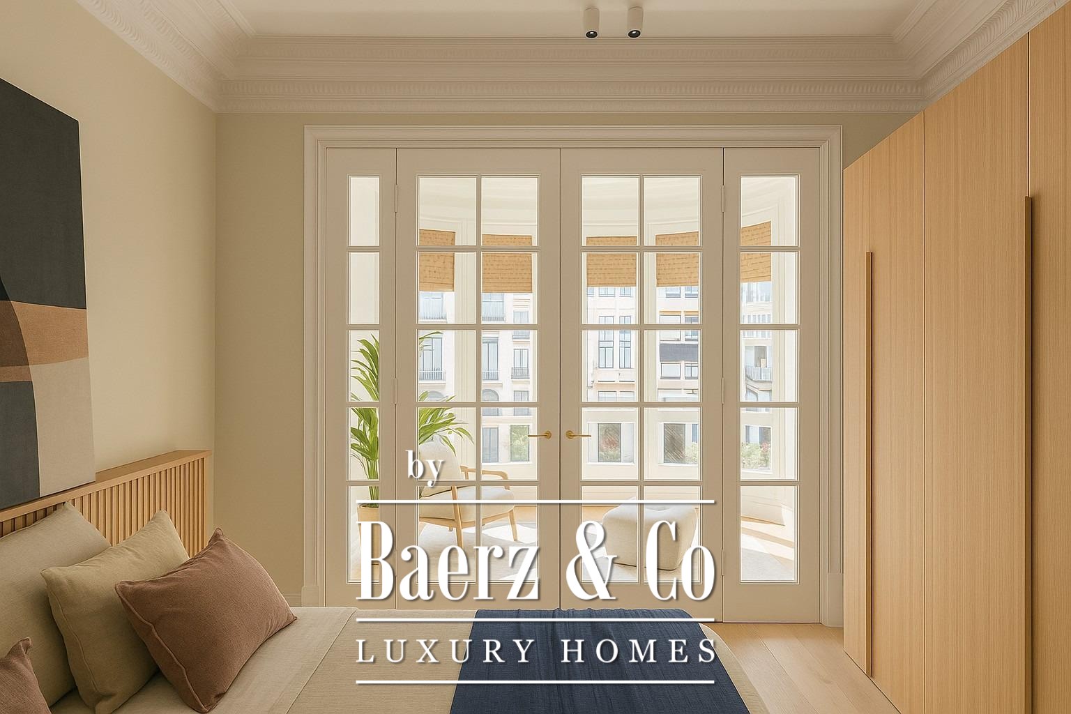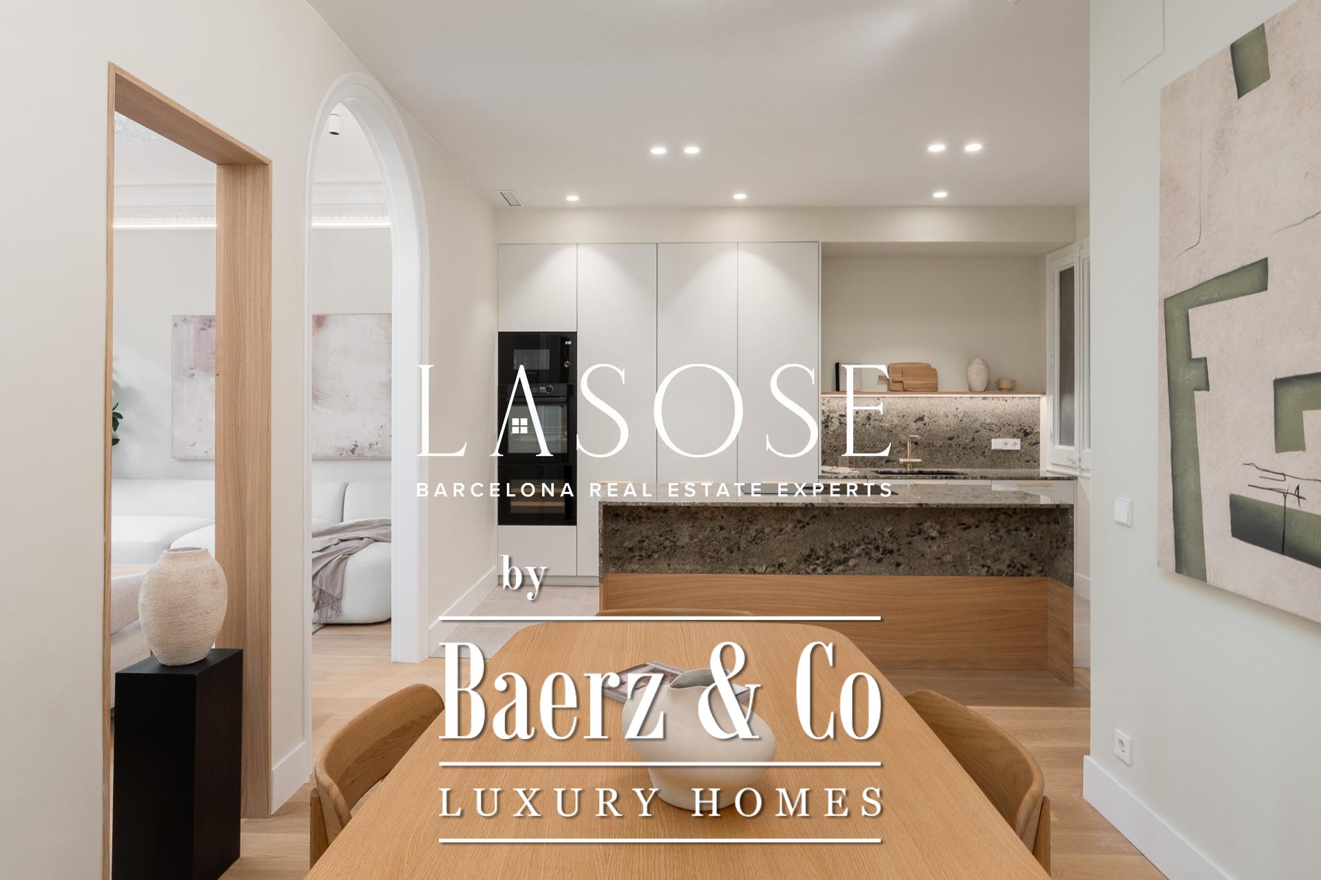 LASOSE is privileged to present this magnificent high-end residence, located in the heart of Barcelona's coveted Eixample district.. . Located in an elegant listed royal estate dating from 1900, this property stands out for its stately architecture, its historical value and its unmistakable character. It is a unique apartment, where the charm of Barcelona's modernism merges with the most demanding comfort and contemporary design.. . Located on a bright 2nd floor with double orientation, the property enjoys abundant natural light throughout the day. Its careful distribution maximizes every corner, offering spacious, functional and stylish spaces.. . The property has three elegant double suites, all with full bathroom, and one of them equipped with an exclusive glazed gallery, perfect as a chill out corner or as a sophisticated workspace.. . The spacious living-dining room is harmoniously integrated with a designer kitchen with central island, equipped with top-of-the-line materials and appliances: polished marble countertop by Levantina, porcelain flooring, and high-end appliances by De Dietrich, Bora and Liebherr (including refrigerator, dishwasher and wine cooler).. . In addition, the dining room - bathed in natural light - can easily be transformed into a fourth bedroom according to the buyer's needs.. . This exclusive home offers luxury finishes such as natural wood floors, original hydraulic tiles and high ceilings decorated with moldings and rosettes, which