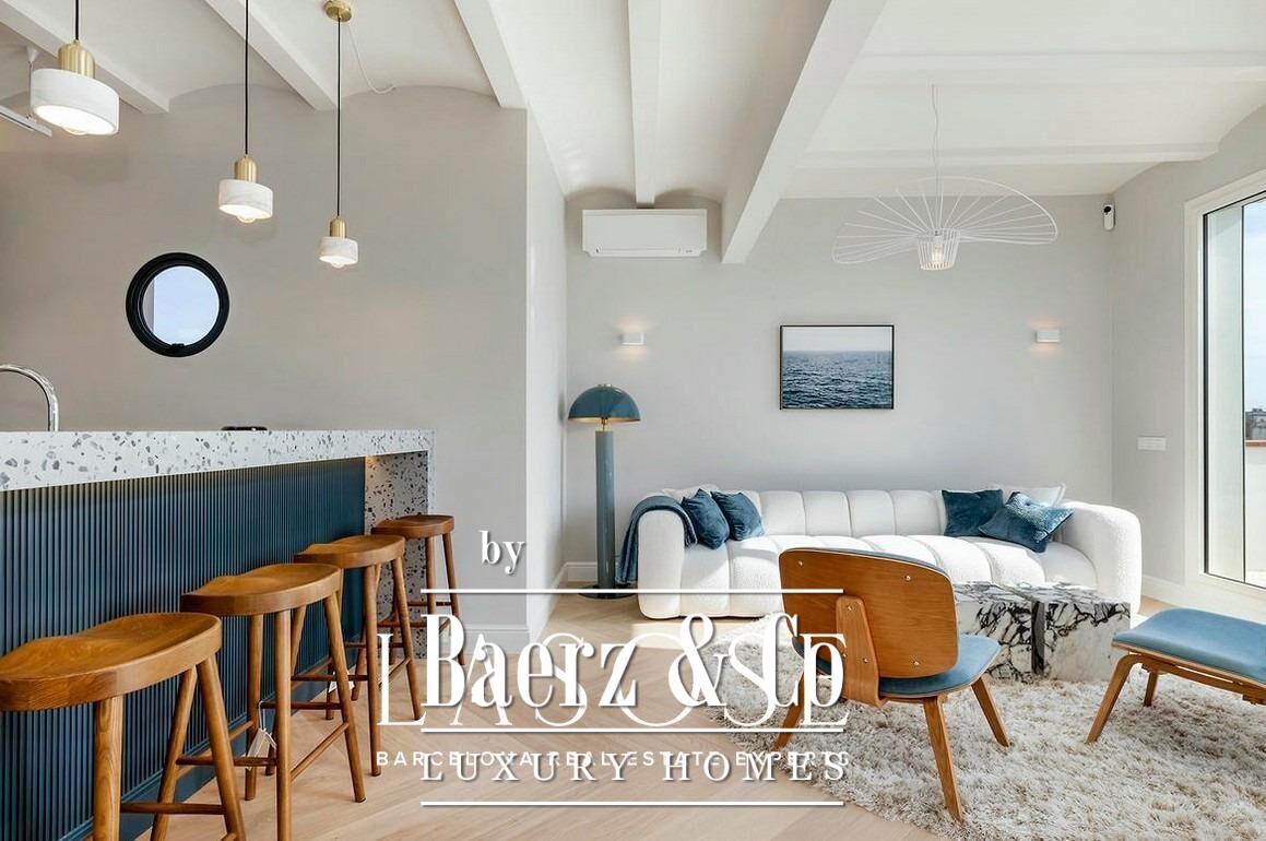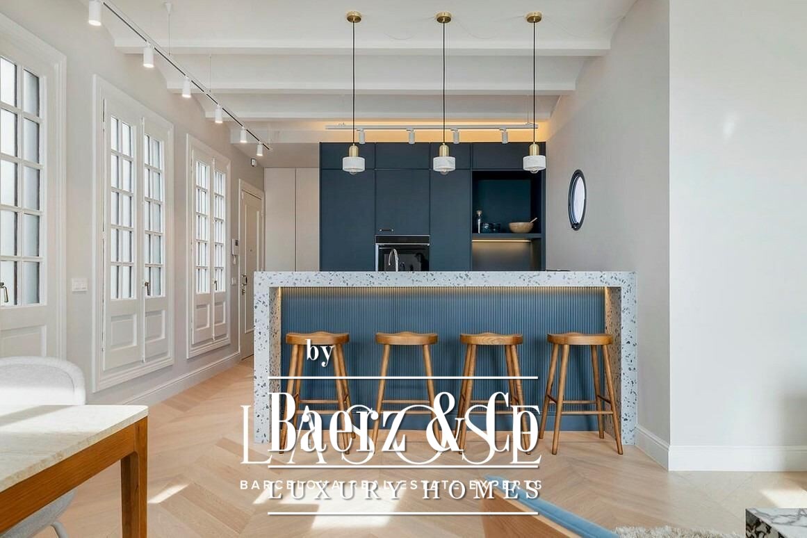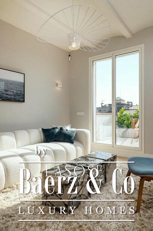 LASOSE presents next to the iconic former Ritz Hotel, this stunning 133 m² duplex penthouse is set within a beautifully preserved modernist building, featuring a majestic entrance hall and two original elevators that evoke timeless charm.. . Thoughtfully redesigned by Nobohome, the top floor (6th and final) serves as the day area, where a bright and spacious living-dining room flows effortlessly into a fully equipped open-plan kitchen. This space opens onto a 22 m² south-facing terrace — perfect for basking in the sun and enjoying panoramic views of the city.. . A stylish internal staircase connects to the lower floor (5th),