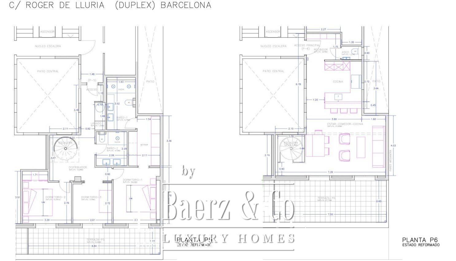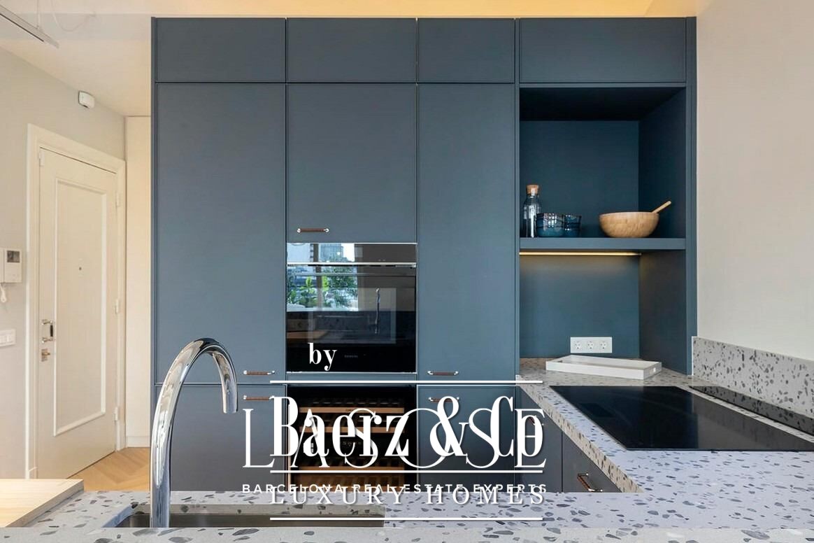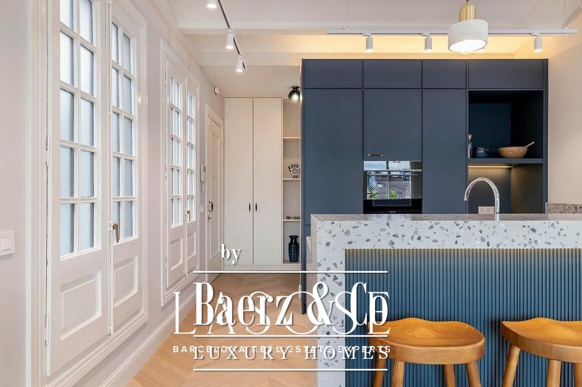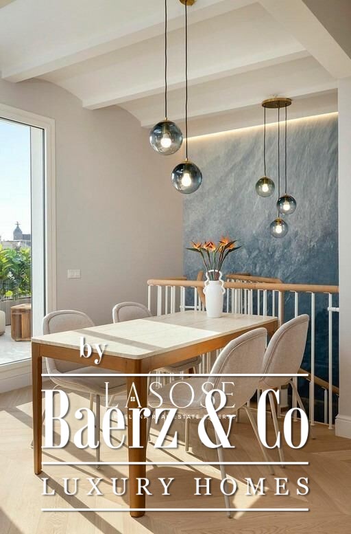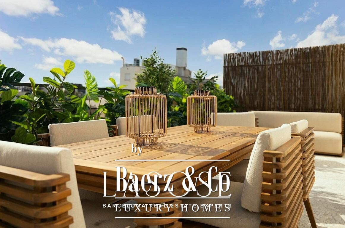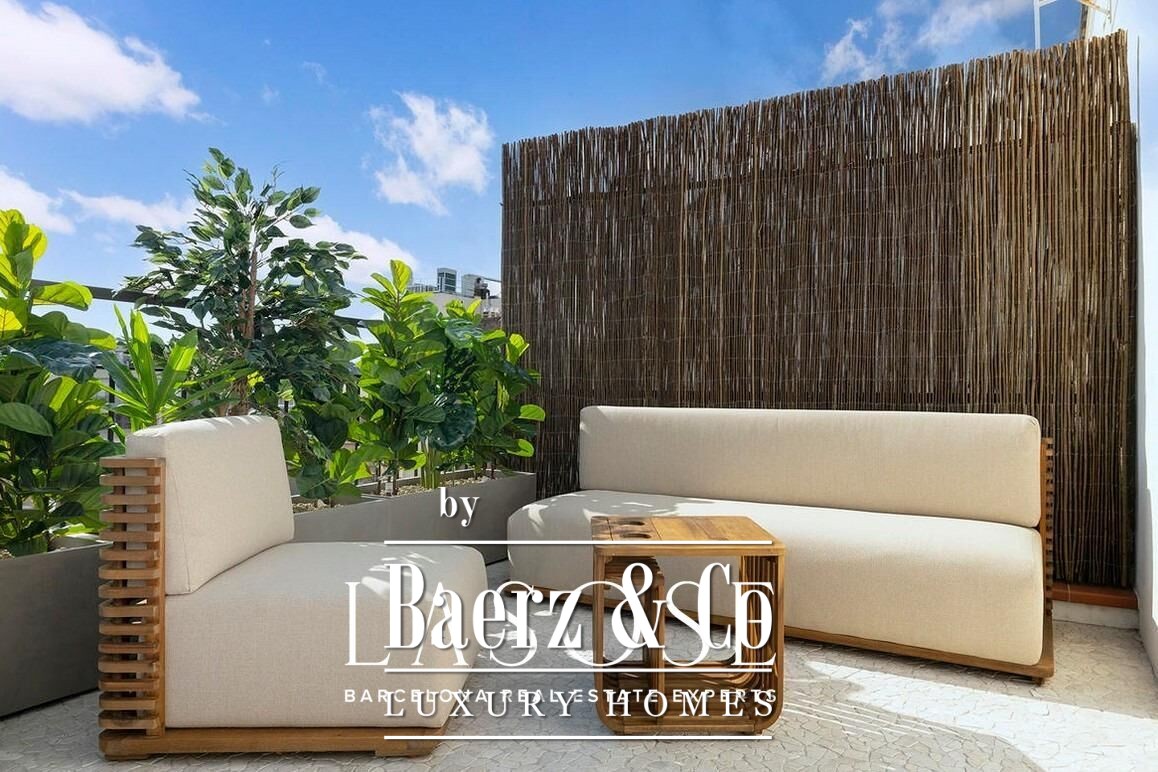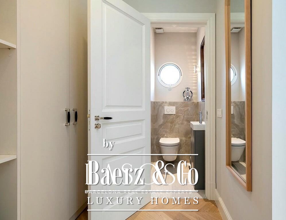 dedicated to the night area. It features two bedrooms that share a sleek, contemporary bathroom, while the luxurious master suite boasts a walk-in closet and a private en-suite bathroom. All three bedrooms have direct access to an 18 m² balcony, enhancing natural light and a sense of openness.. . In the hallway, built-in wardrobes discreetly house the washer, dryer, and heat pump. For added convenience and flexibility, both floors are equipped with independent entrance doors.. . This exceptional penthouse seamlessly blends modern comfort with classic elegance — all in one of Barcelona’s most sought-after locations.