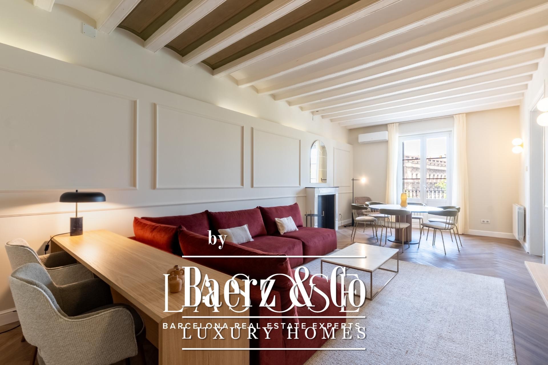Located on the first floor of a listed historic building, this bright 119 m² apartment represents a unique opportunity to live in a privileged enclave in the center of Barcelona, where history and modern comfort meet.. . The building, located on Calle Isabel II, is part of the 19th-century urban development of Portal de Mar and Pla de Palau. This building is not only notable for its architectural value, but also for its cultural significance: it was Picasso's first home in Barcelona.. . *Layout and main features*. . 3 double bedrooms and 2 full bathrooms. . Spacious living-dining room with 3 meter-high coffered ceilings, which enhance the feeling of spaciousness and light. . 5.60 m² balcony overlooking one of the most emblematic areas of the city. . Separate kitchen, fully equipped with high-end appliances: refrigerator,
