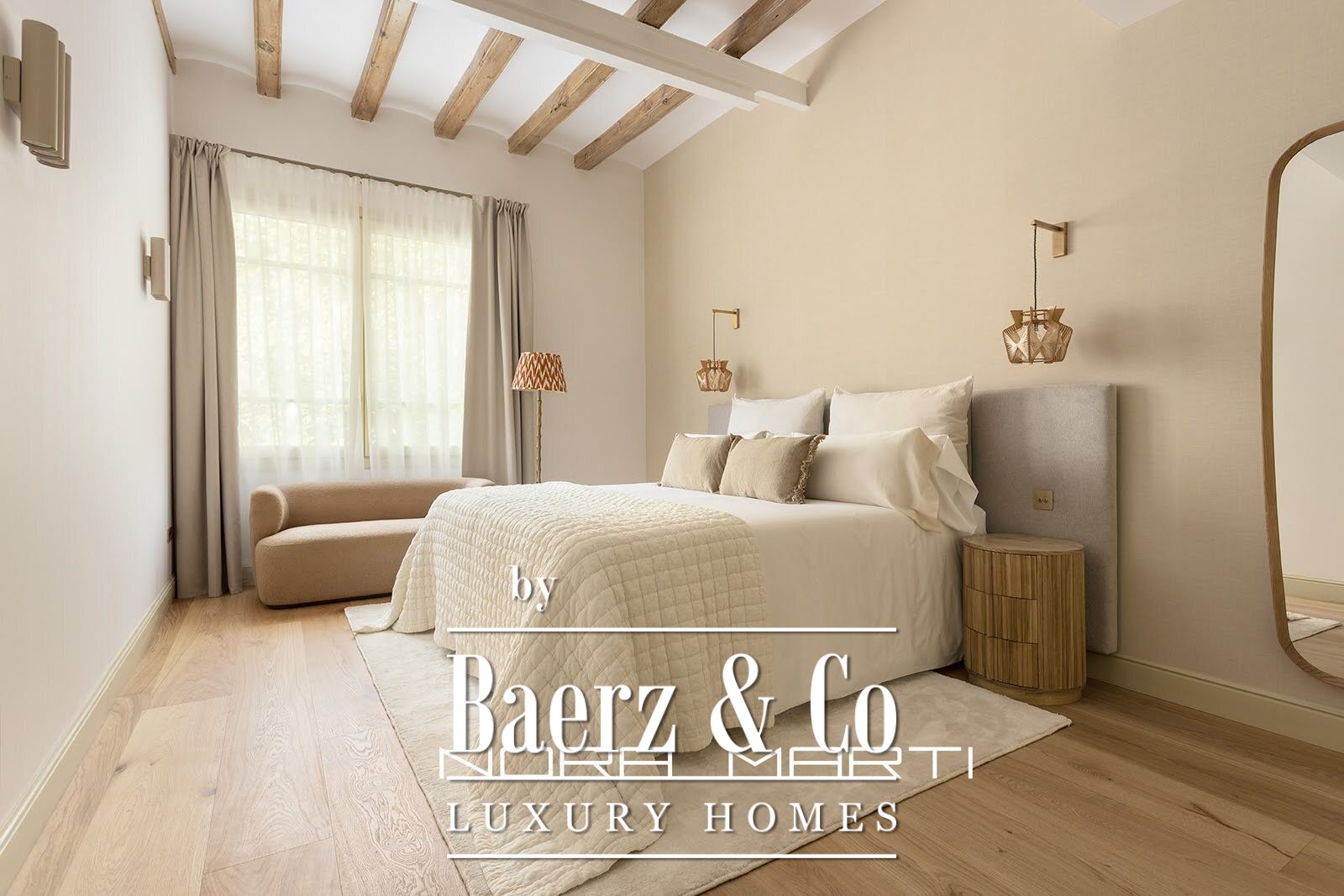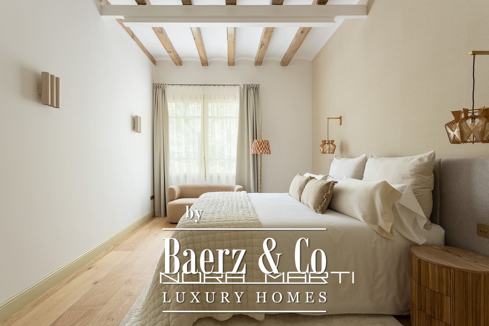 The luxurious renovation focuses on quality and detail while preserving the building's original features and charm. A Catalan vaulted ceiling is visible throughout the apartment, enhancing the feeling of spaciousness and light. The ceiling transforms the living room into a truly exceptional space, featuring handcrafted local tiles and floor-to-ceiling windows that open onto a tranquil terrace; this room is unique and the heart of the living area.