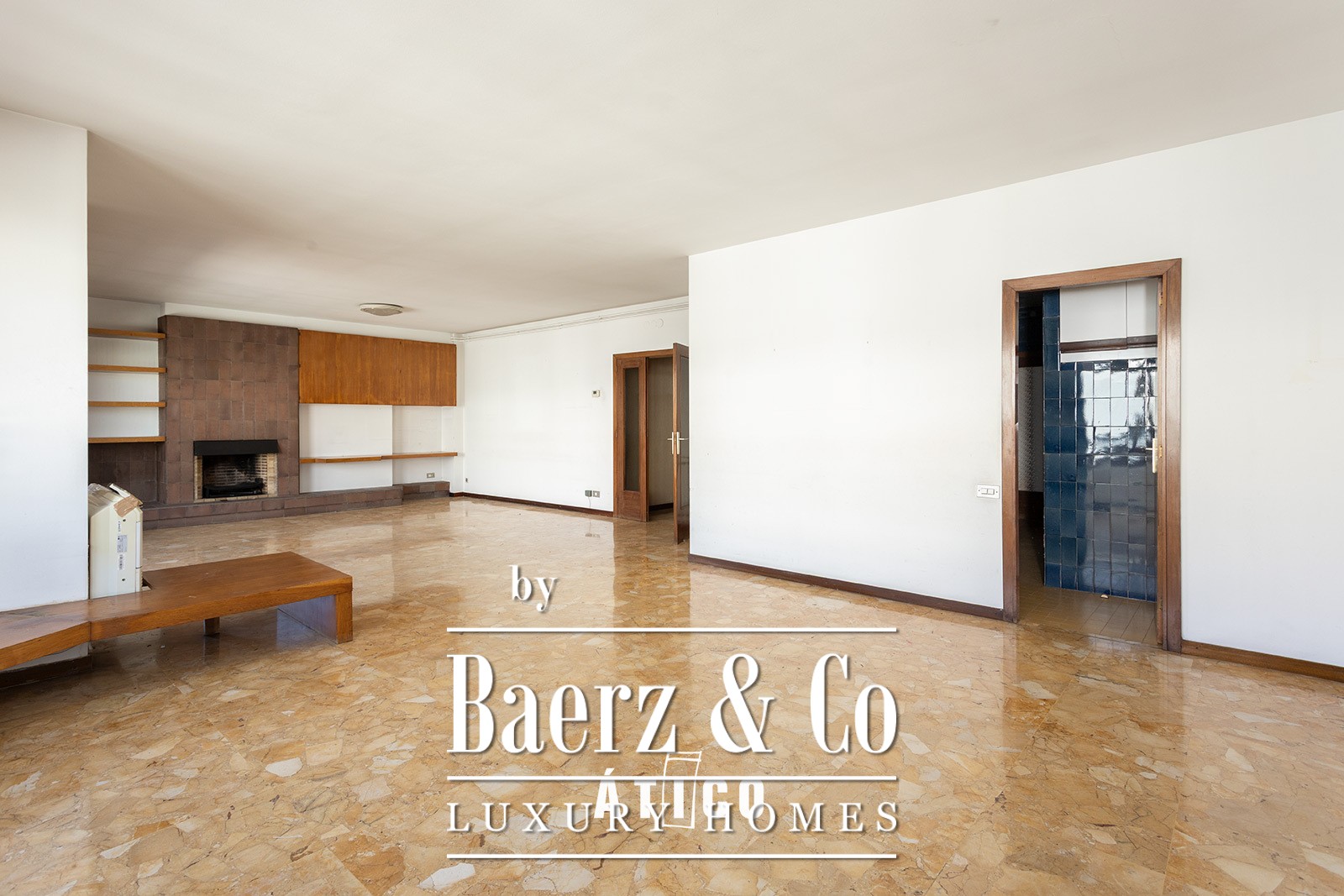 Expansive glass and a thoughtful orientation infuse each of the six double bedrooms and four bathrooms with natural light. An open-plan living and dining room, finished in marble, looks out over urban landscapes, connecting seamlessly to a morning-lit terrace. The kitchen, generously proportioned, allows for flexible design and adaptive use.