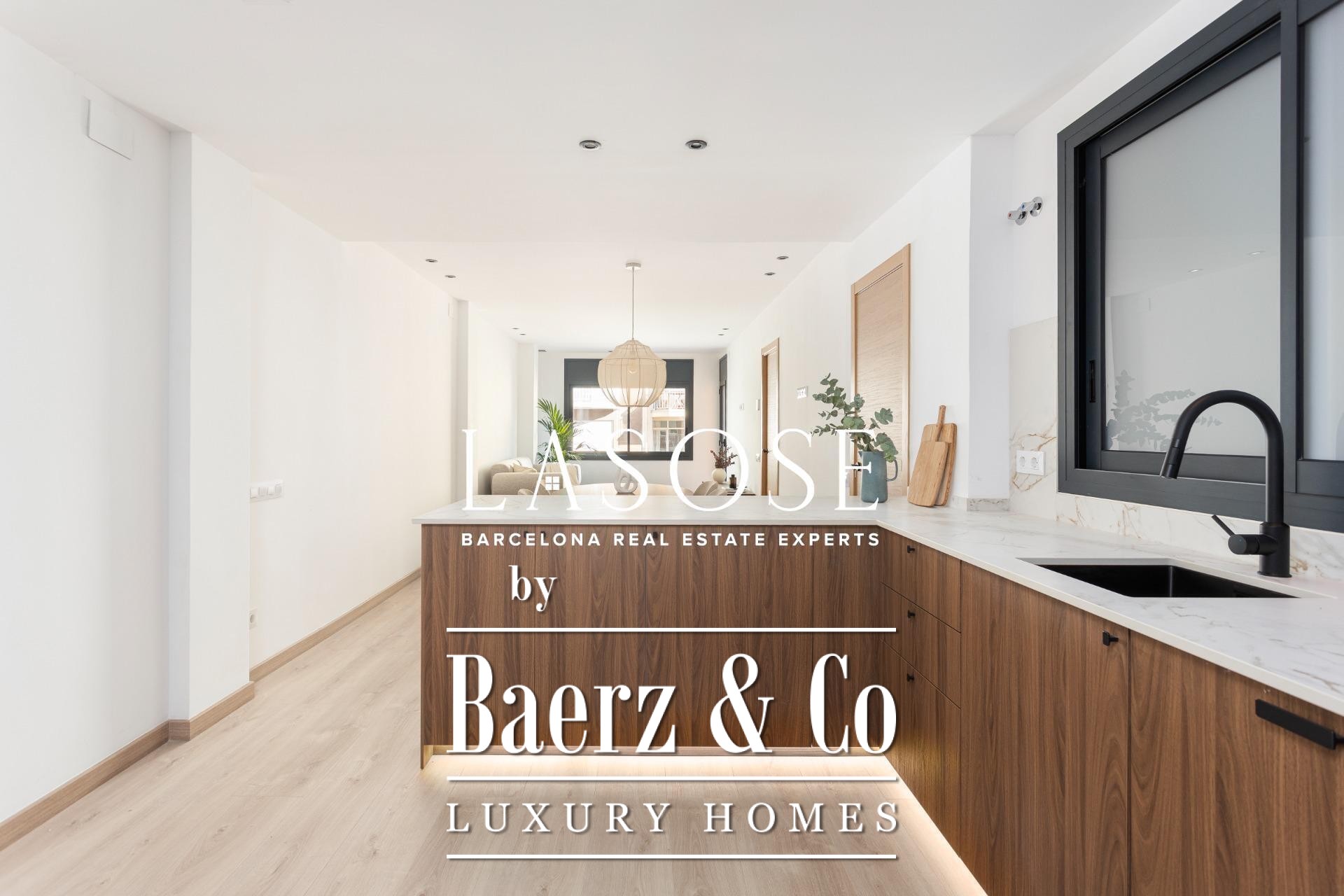 Three bedrooms include a main suite with terrace access, fitted wardrobes, and a private bathroom, complemented by a double and single bedroom. Both bathrooms feature concealed taps, LED illumination, and porcelain detail. Amenities include ducted Mitsubishi air conditioning, advanced insulation, laundry room, and a parking space in the building for a small car or motorbike, offering discreet comfort in the core of Barcelona. This luxury apartment for sale in Barcelona presents the equilibrium of modern design and metropolitan lifestyle.