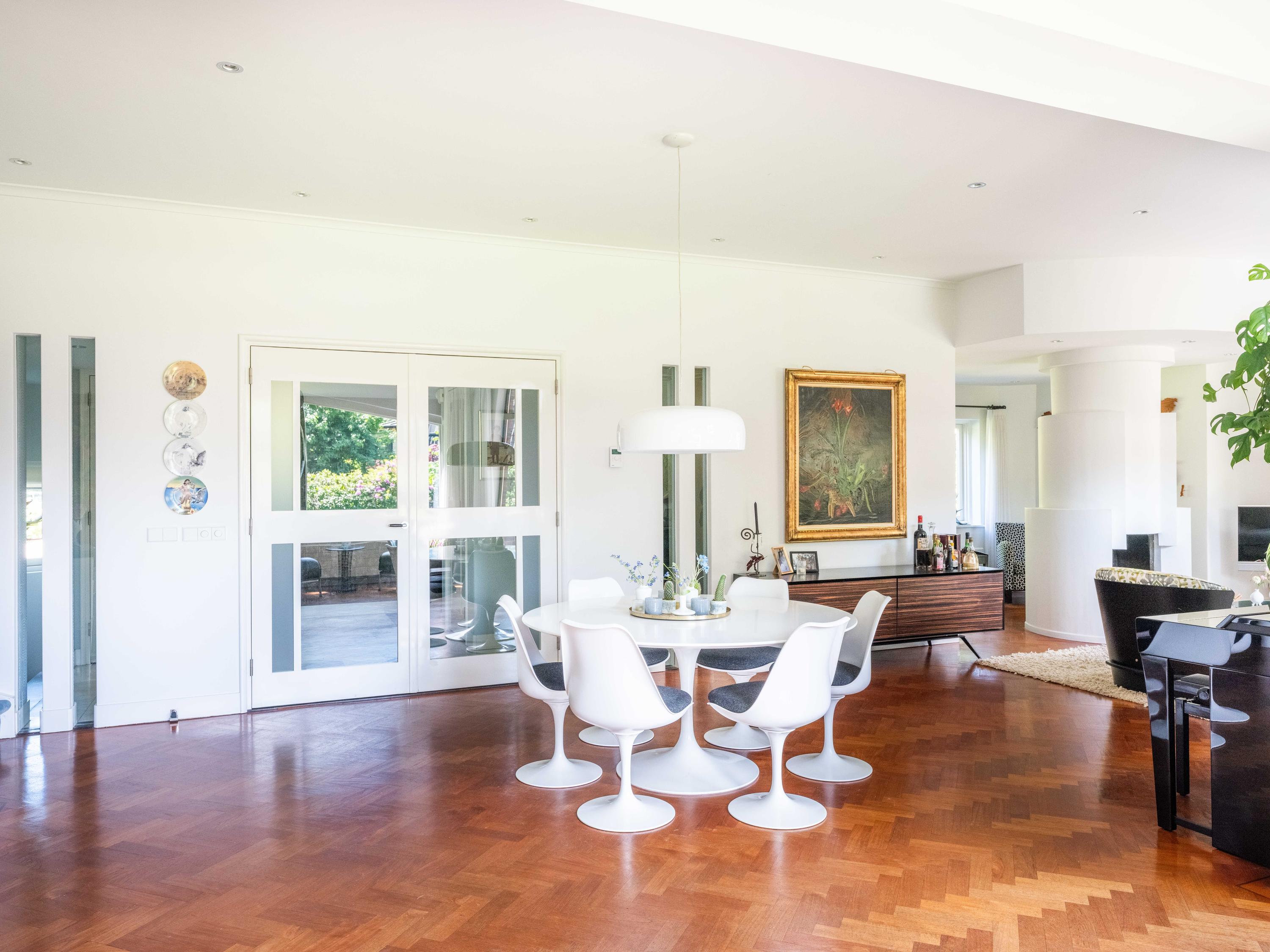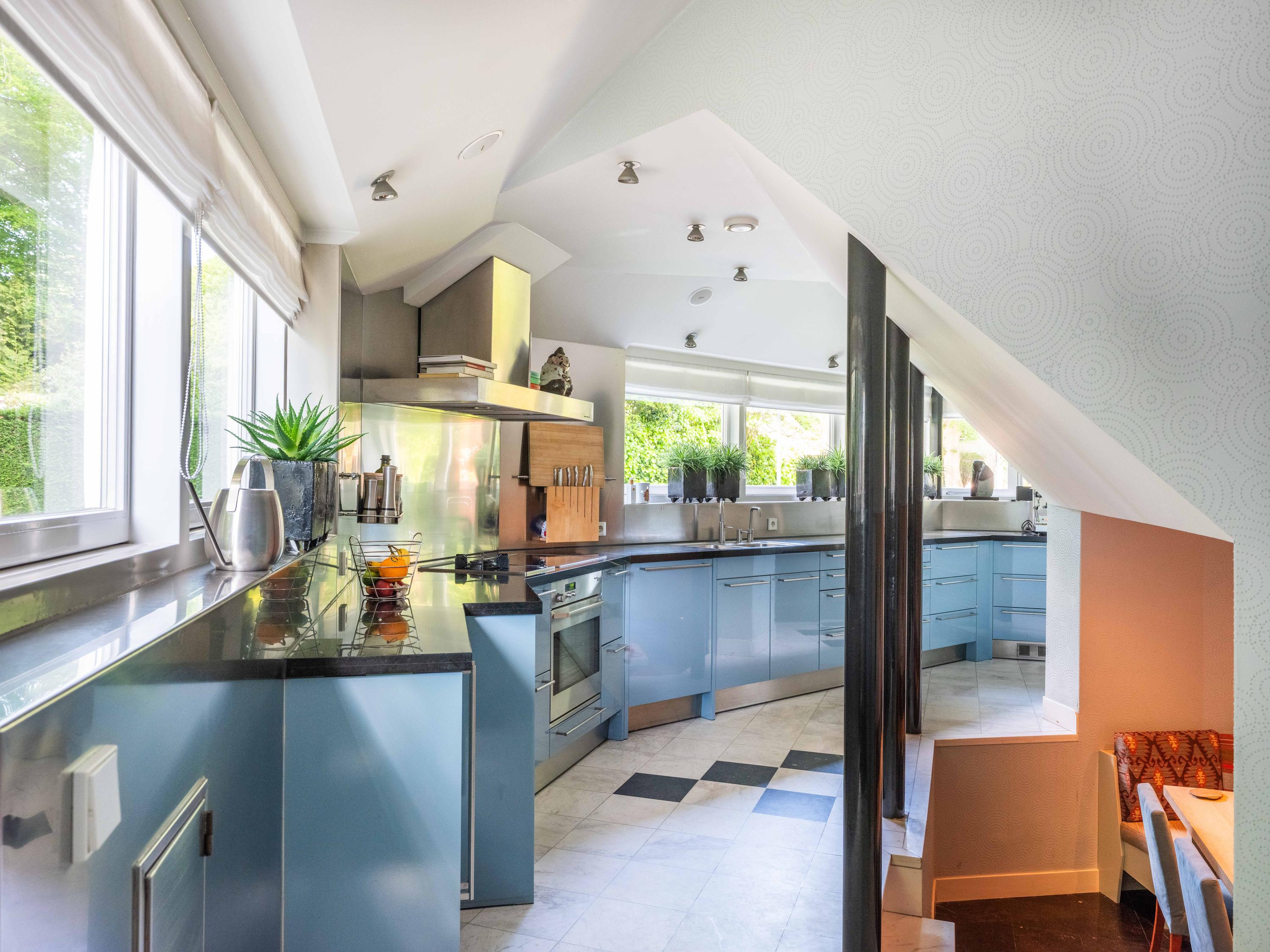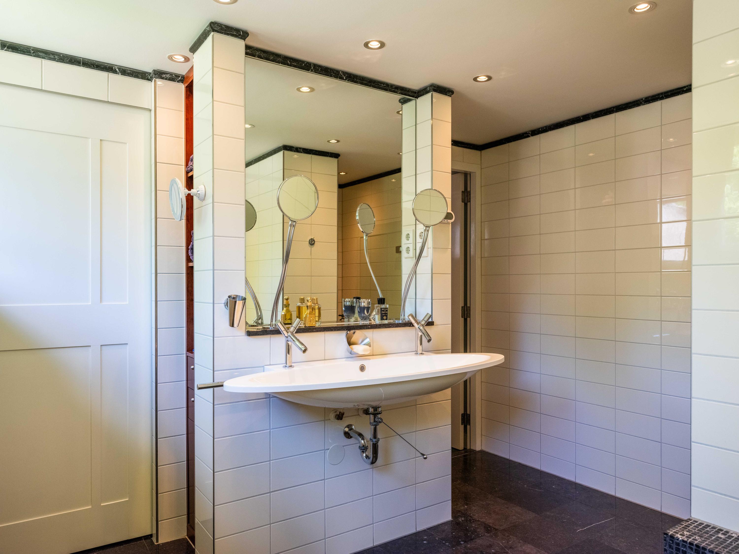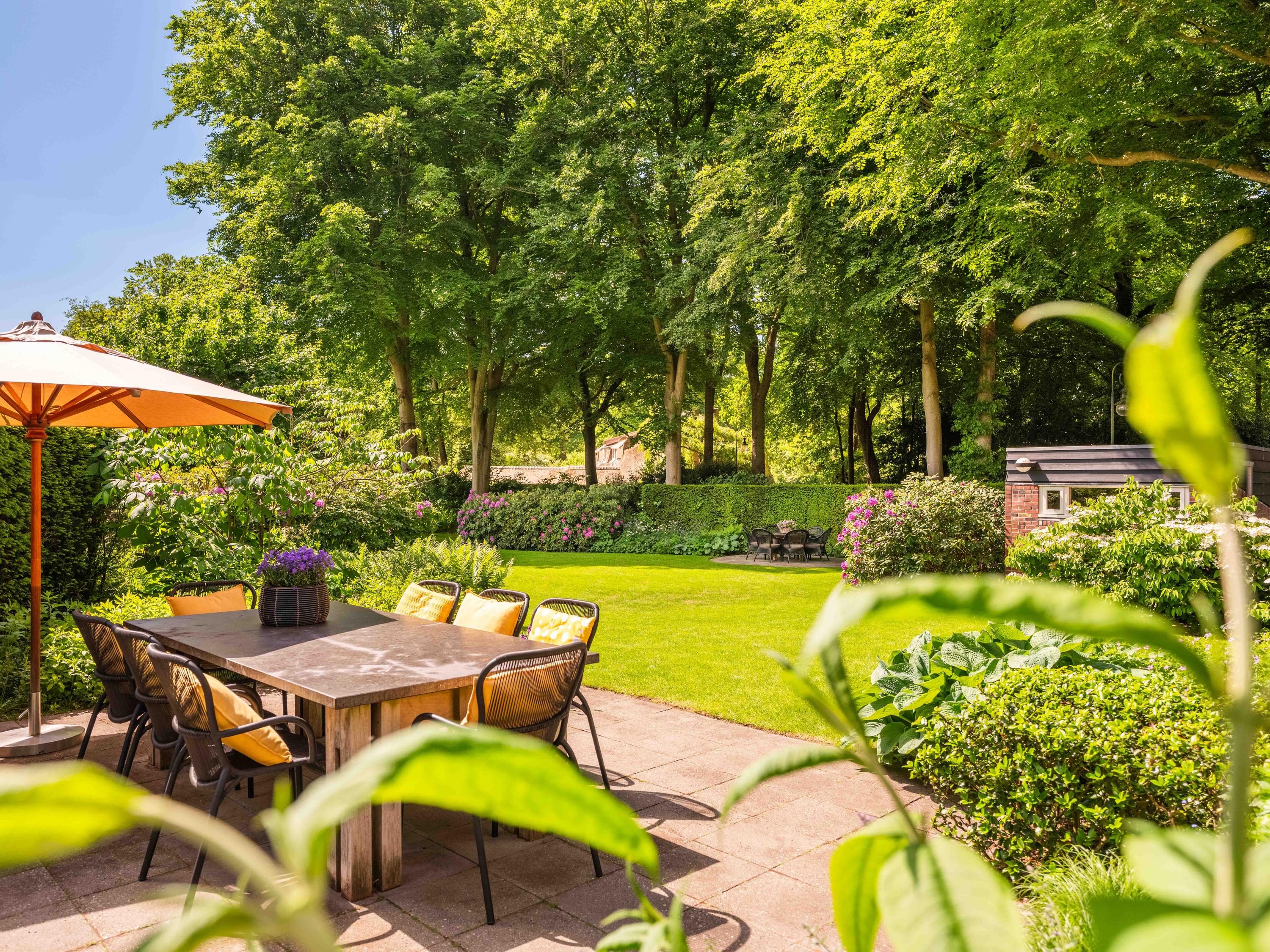 The 2,720 m² plot is enveloped in flowering borders and monumental trees, with a detached garden cottage and entrance house—reminiscent of a moored sloop—both restored in period style. This villa for sale in Bergen invites a life of quiet dignity, architectural provenance, and seclusion, in harmony with the heritage of Park Meerwijk.