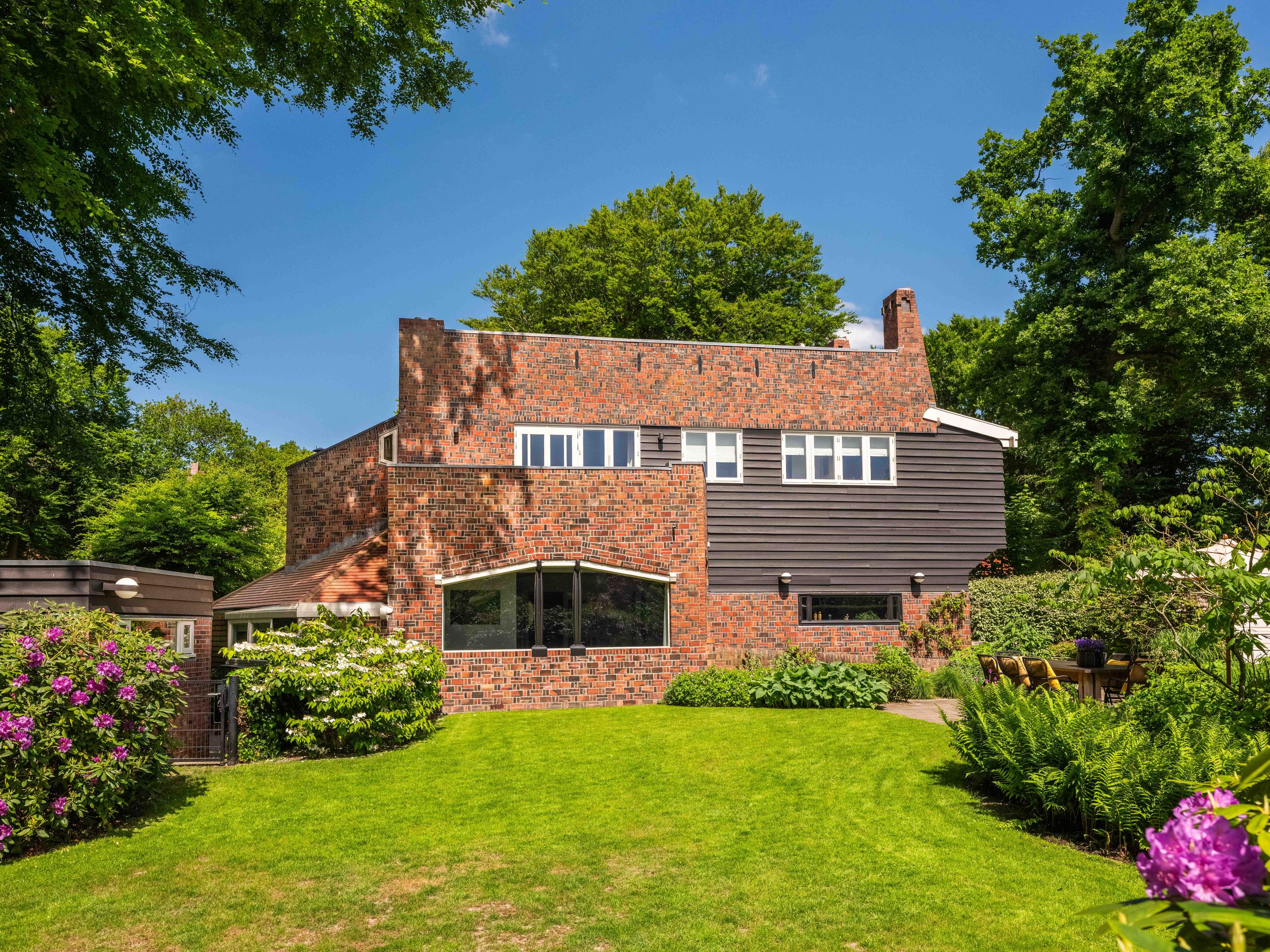 Villa Bergen Amsterdam School Architecture occupies a commanding position at the entrance to Park Meerwijk, one of the most evocative and architecturally significant locations in Bergen. This 204 m² villa, known as 'De Ark', was designed by J.F. Staal in 1917 and stands as a testament to the expressive geometry and craft of the Amsterdam School, its façades marked by intricate brickwork, red bricks and black clapboard detailing.