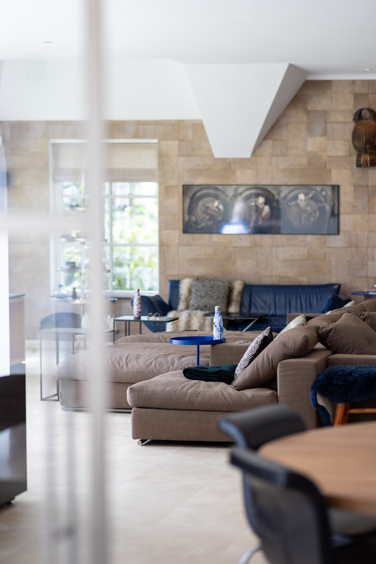 Wellness is at the heart of this villa. A dedicated suite includes a heated indoor pool with jet stream, sauna, rain shower, and relaxation area, opening via sliding doors onto the terrace and gardens. Fitness and office spaces are positioned for flexible, secluded work or recreation.