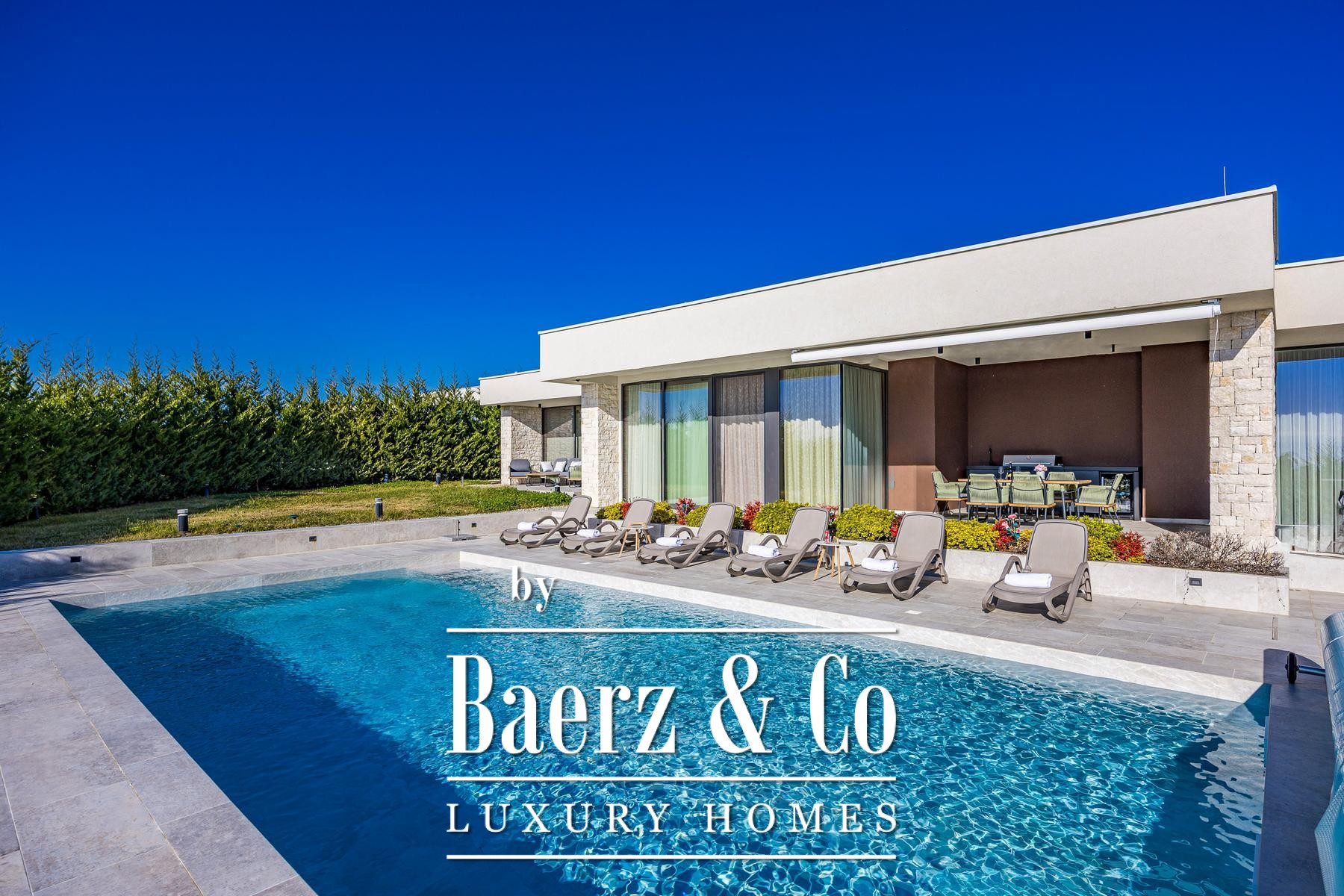 Villa Brtonigla welcomes you to the heart of Istria, where contemporary design meets understated luxury. This villa Brtonigla, set across 341 m² of refined living space, is crafted for those who seek both elegance and calm. The property’s terraces offer panoramic sea views, while expansive glass walls connect the light-filled interiors to a meticulously landscaped garden of 760 m².